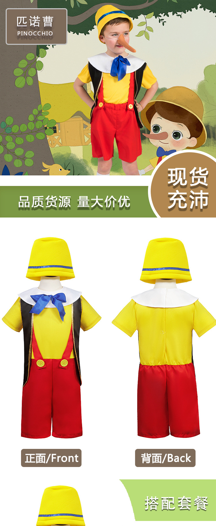 Halloween nariz larga Pinocho niños cos ropa títere aventura etapa rendimiento ropa de tiro