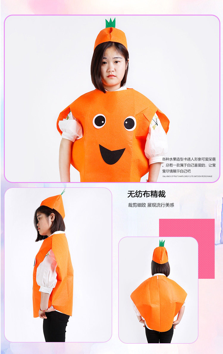 Día del niño adulto ropa para niños modelado de frutas y verduras protección del medio ambiente desfile de moda ropa de rendimiento de etapa padre-hijo