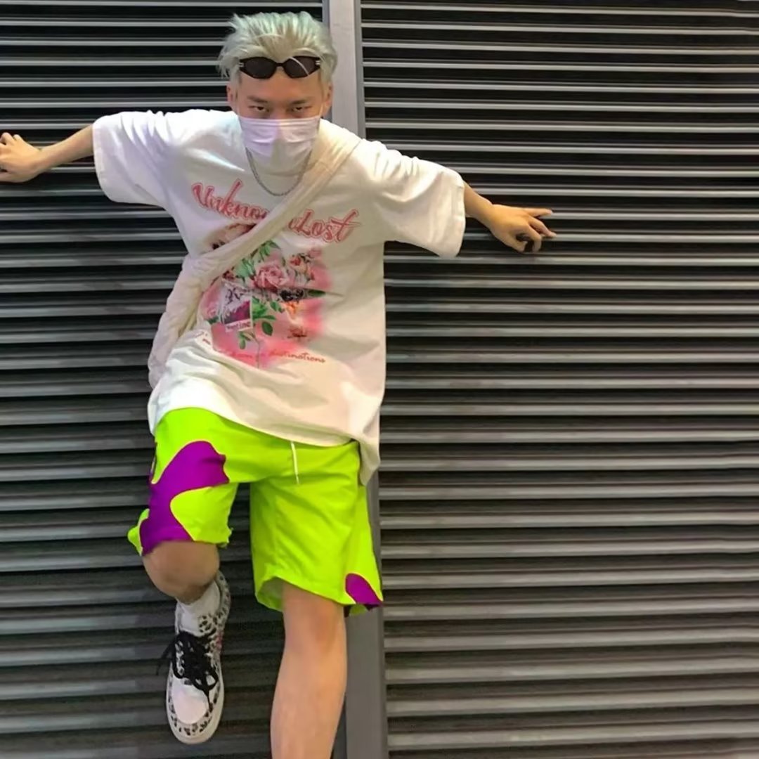 Estilo americano de ambiente Big Star suelta pantalones cortos casuales hombres ins moda alta calle cordón elástico pantalones cortos rectos
