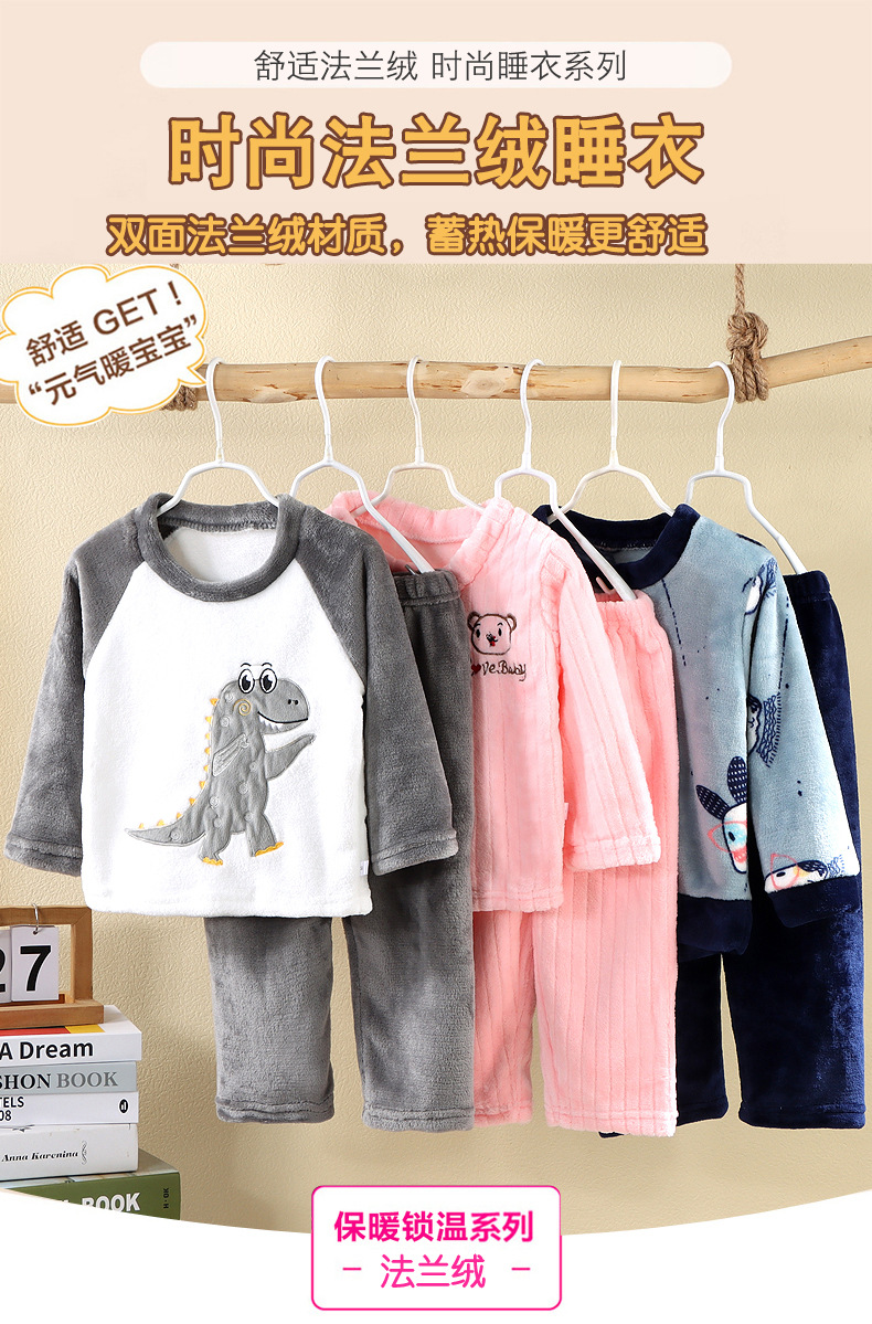 Traje de pijama de franela para niños Otoño e Invierno forrado de vellón engrosado niños y niñas homewear niños cálido coral polar