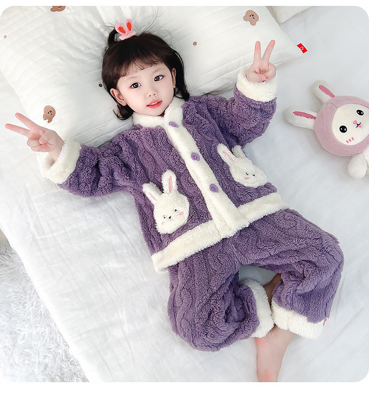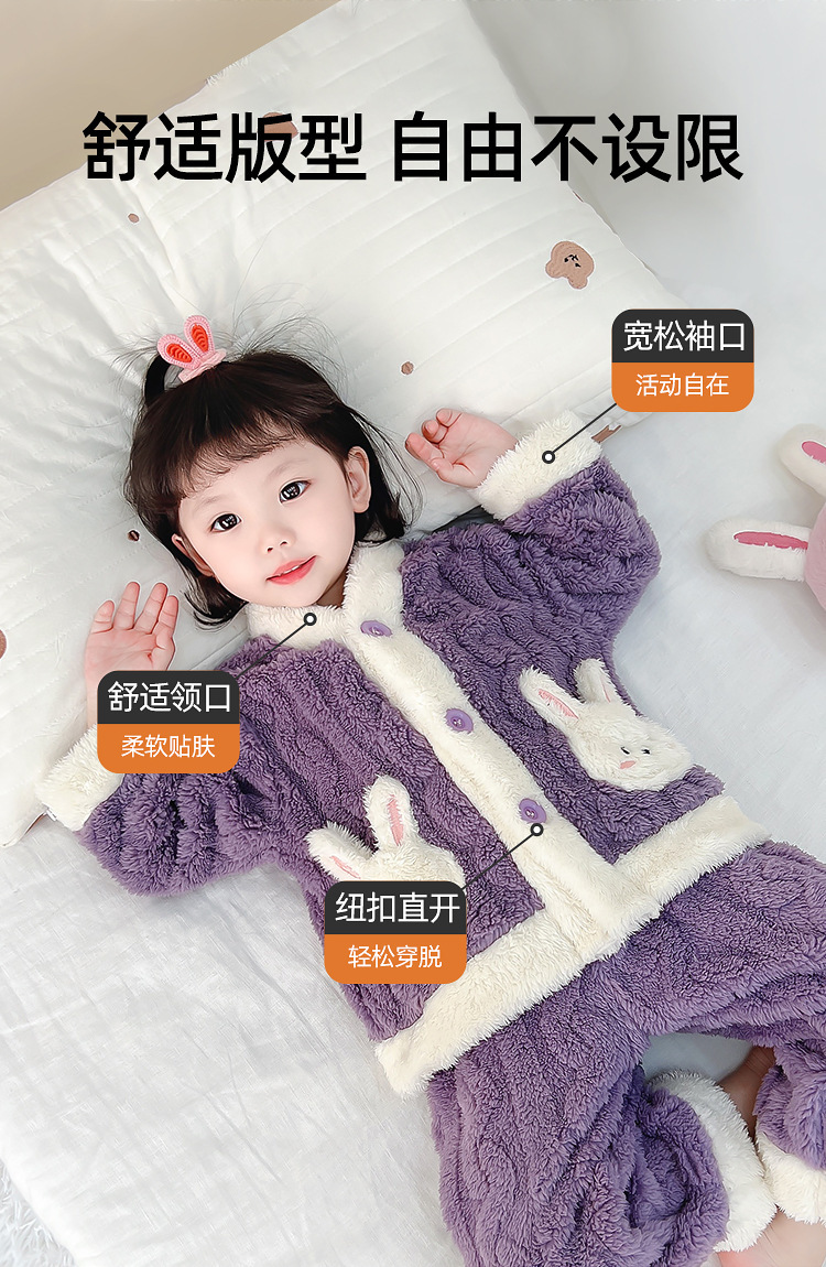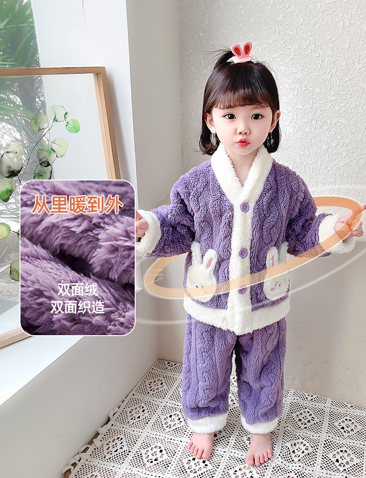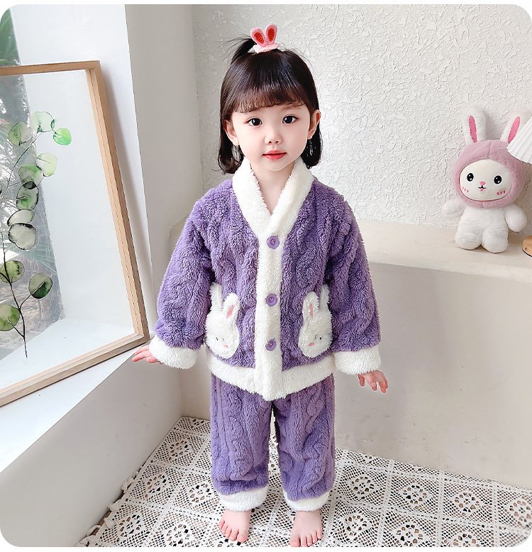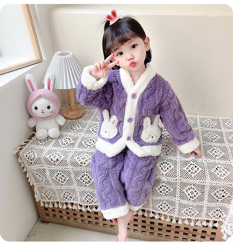 Estilo occidental de las niñas pijamas de franela engrosada traje de otoño e invierno Bebé de las niñas de lana de coral ropa para niños ropa de estilo coreano