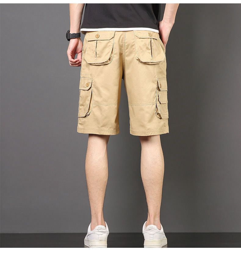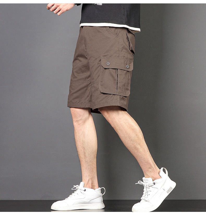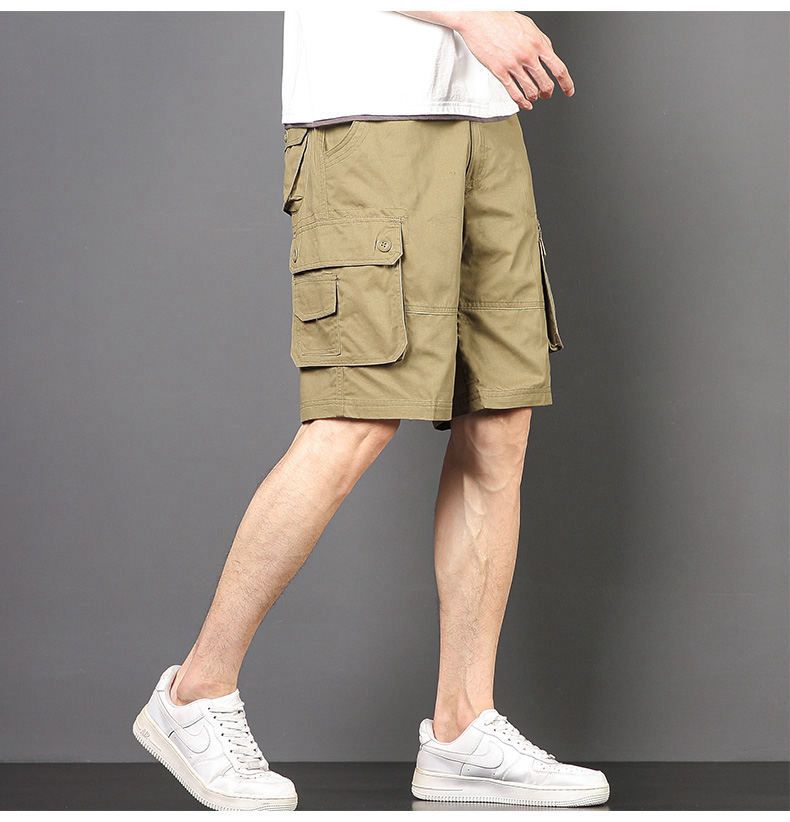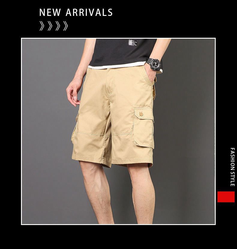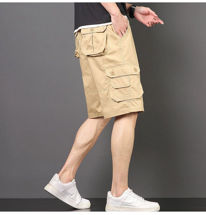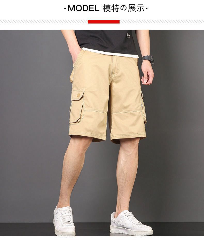Plus tamaño pantalones medios pantalones cortos casuales de verano multi-bolsillo de los hombres sueltos rectos pantalones cortos de algodón lavado