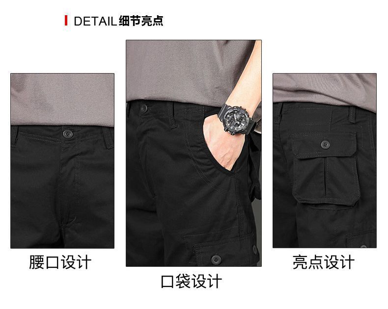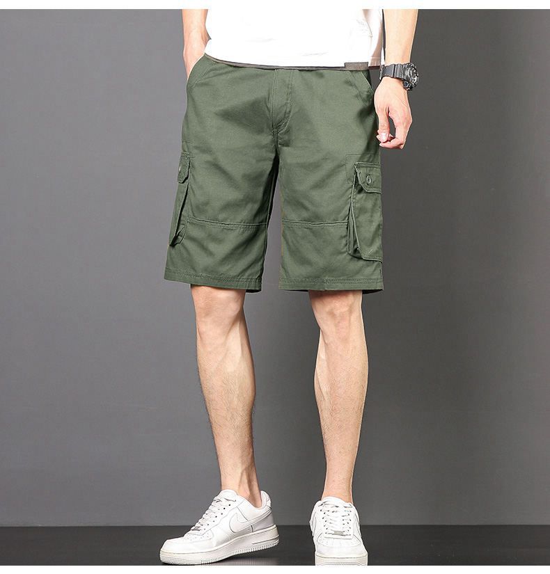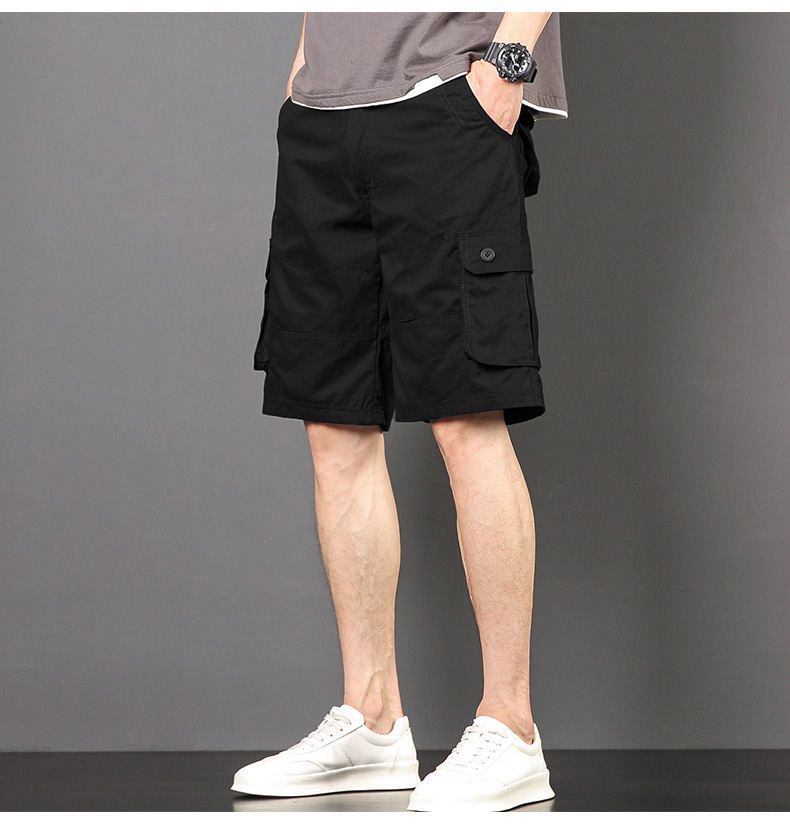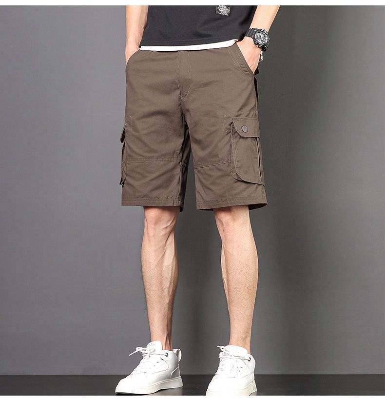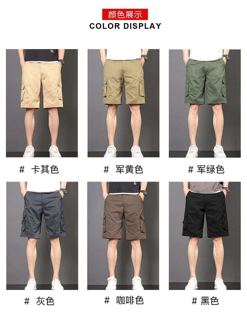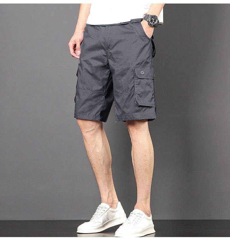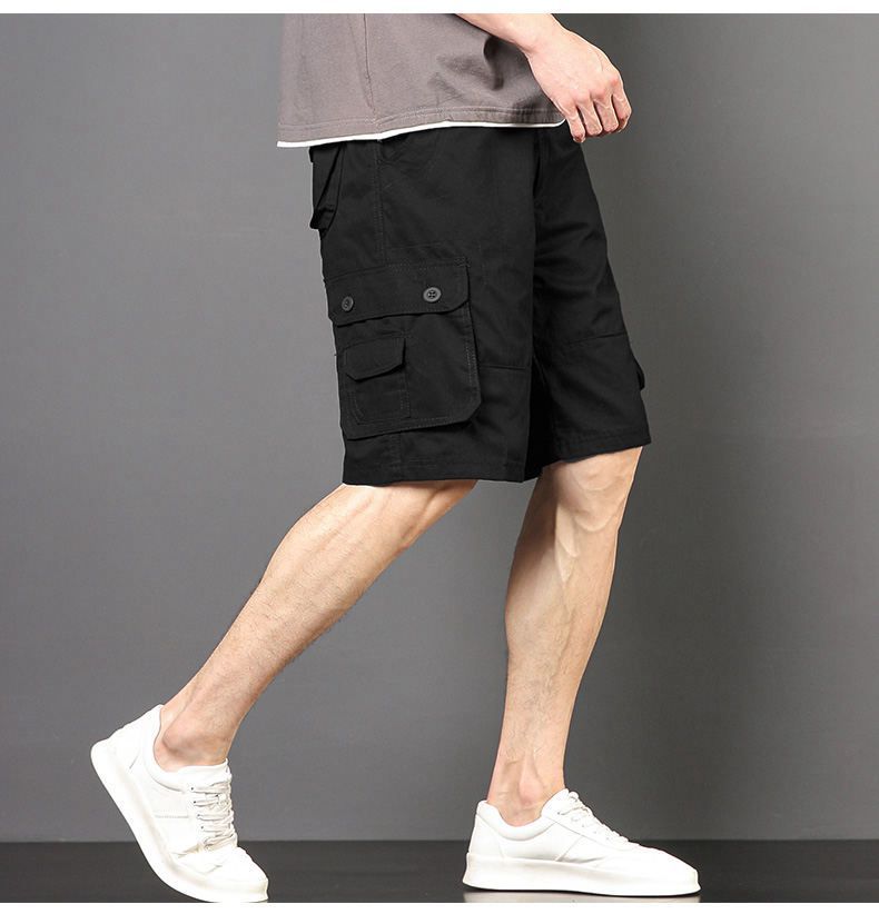 Plus tamaño pantalones medios pantalones cortos casuales de verano multi-bolsillo de los hombres sueltos rectos pantalones cortos de algodón lavado