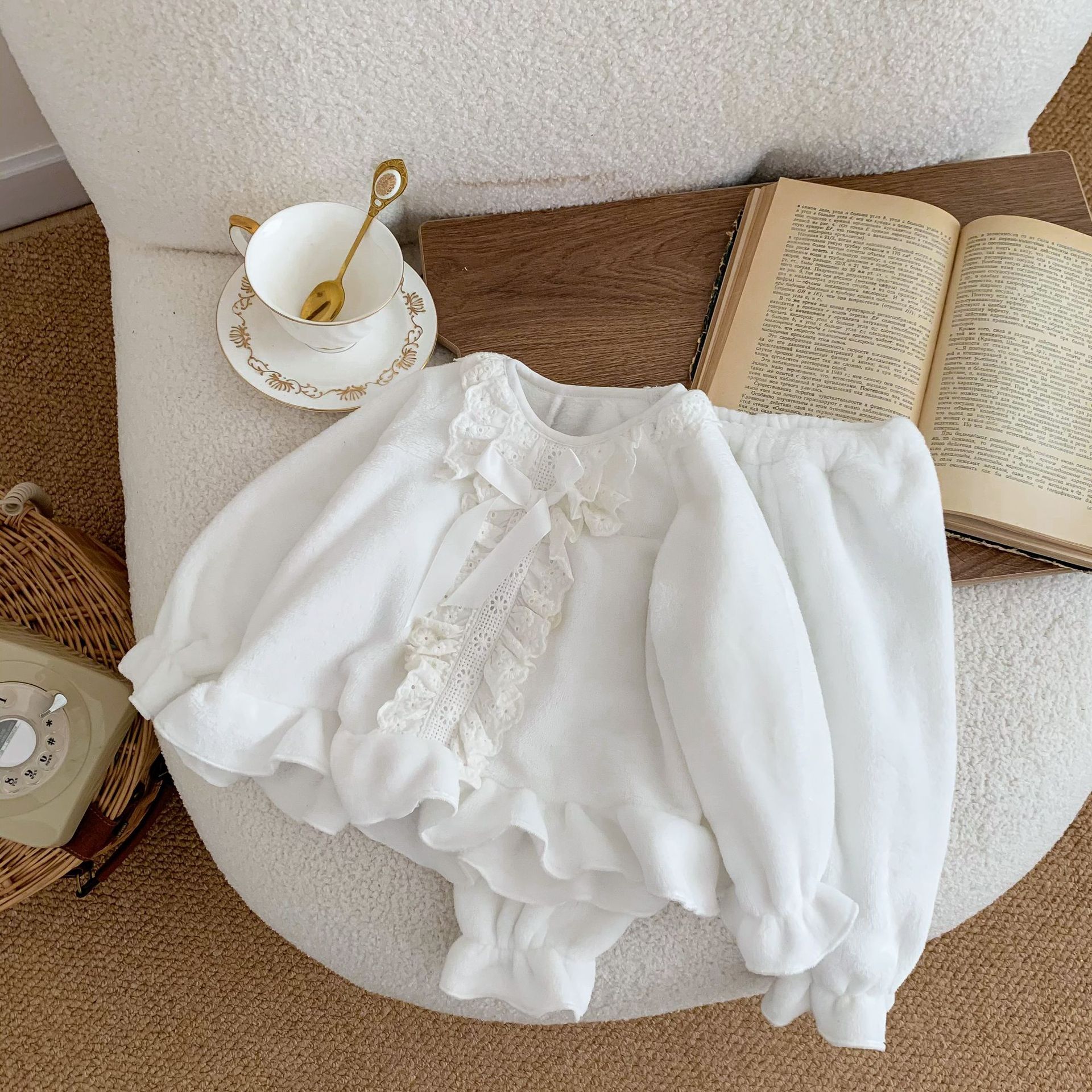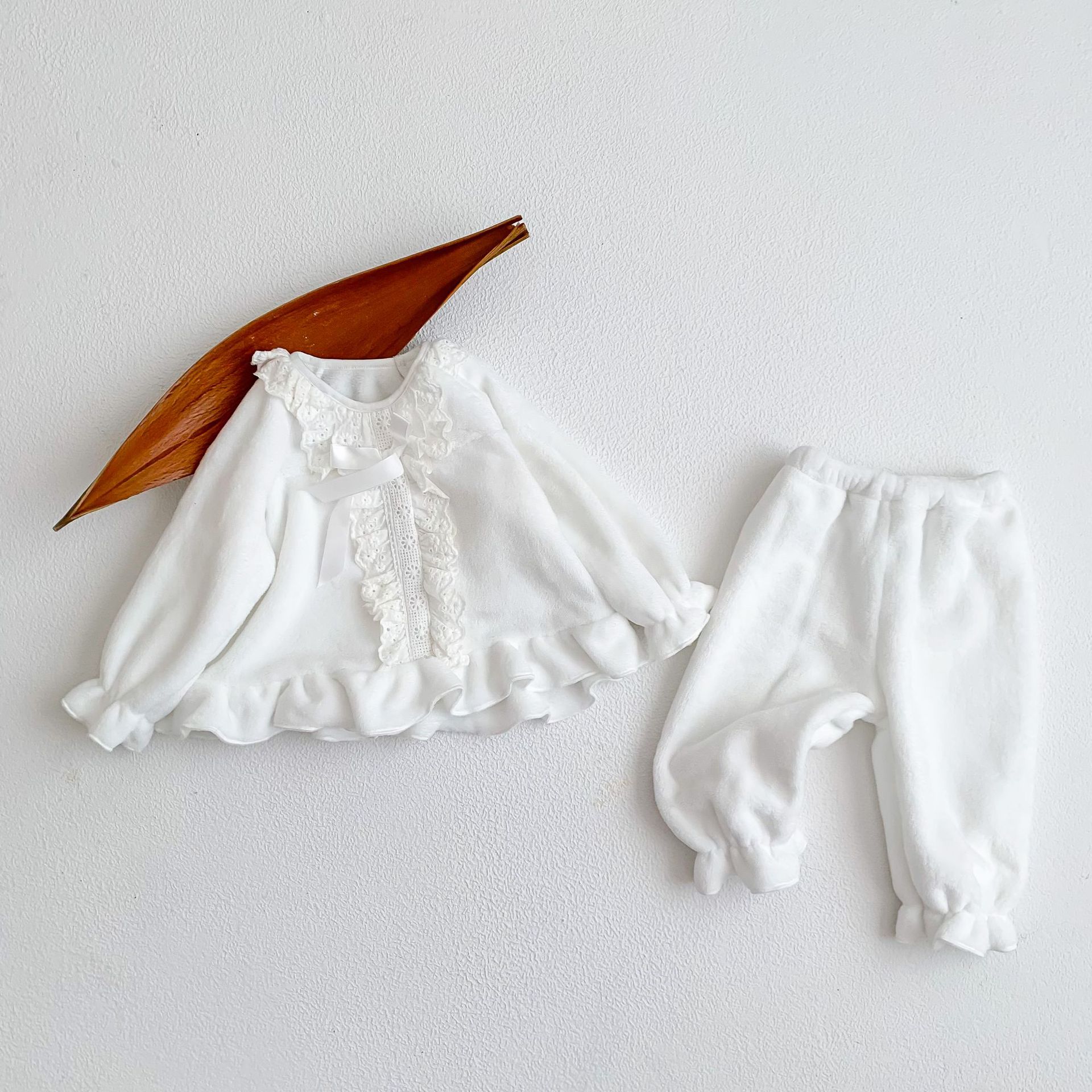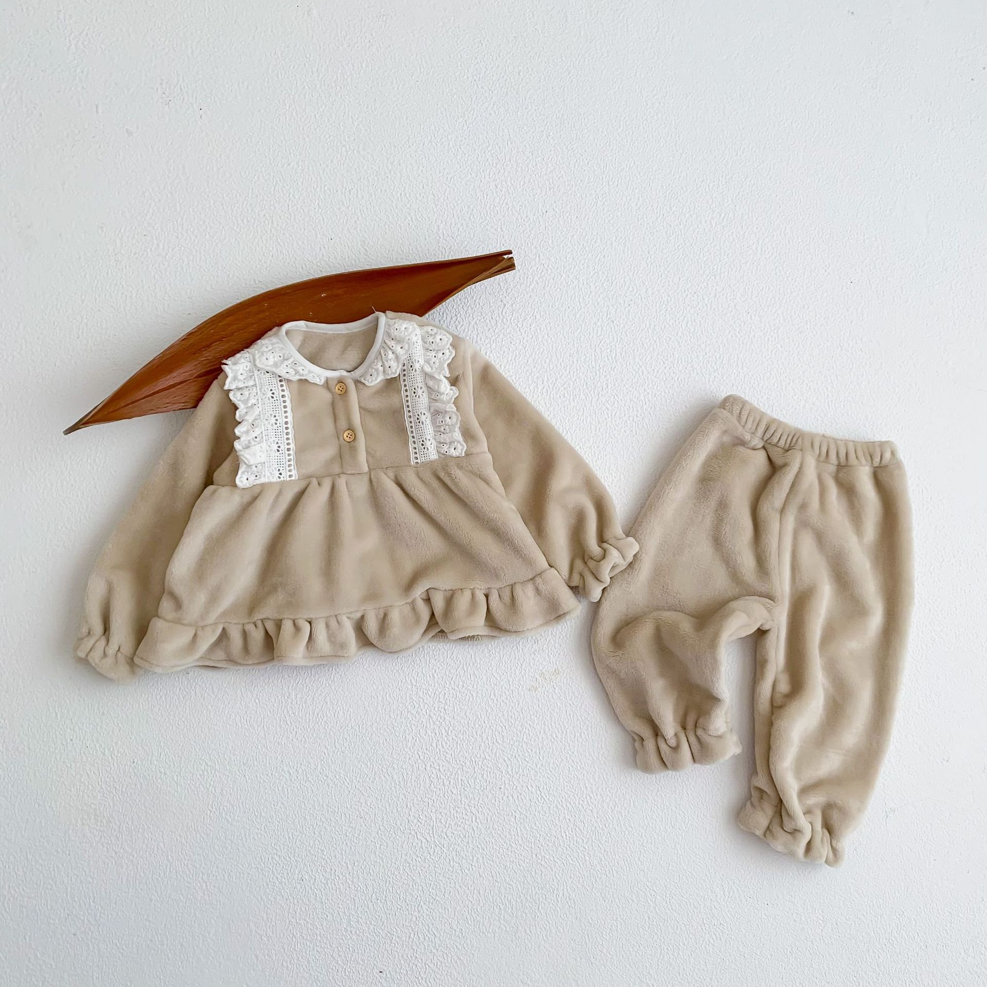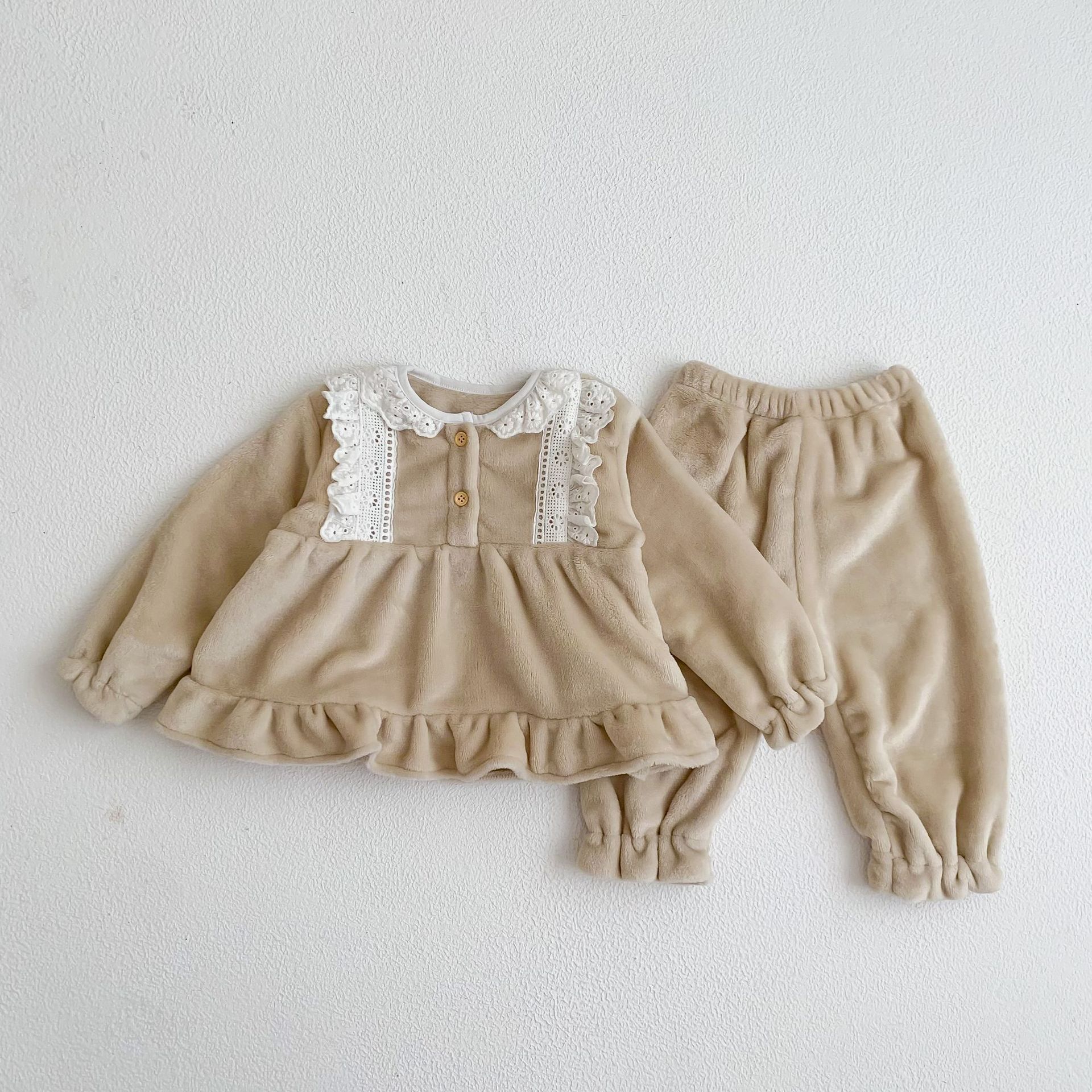 Corea del Sur ins Otoño e Invierno lindo encaje franela bebé niña pijamas infantil princesa desgaste del hogar de dos piezas de espesor
