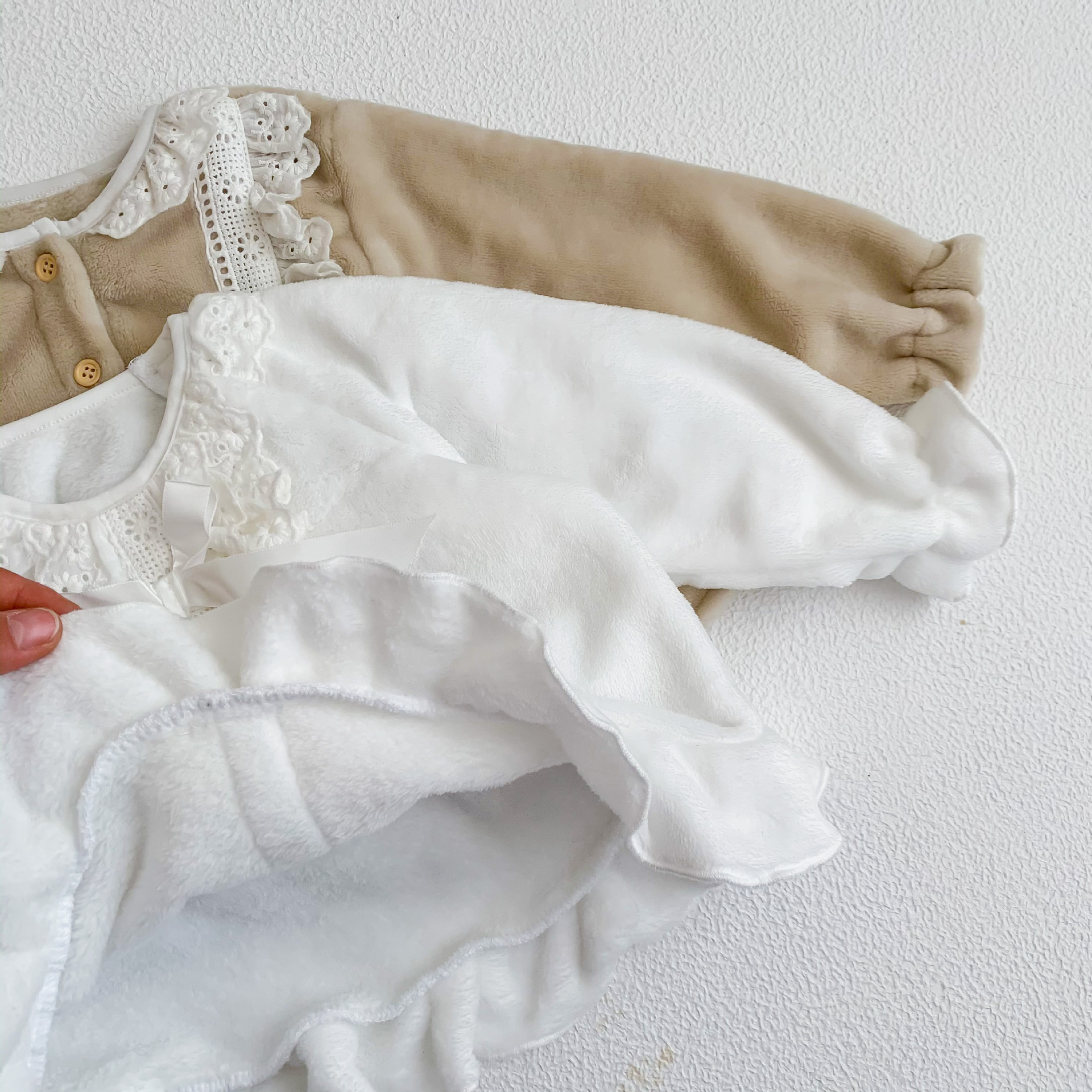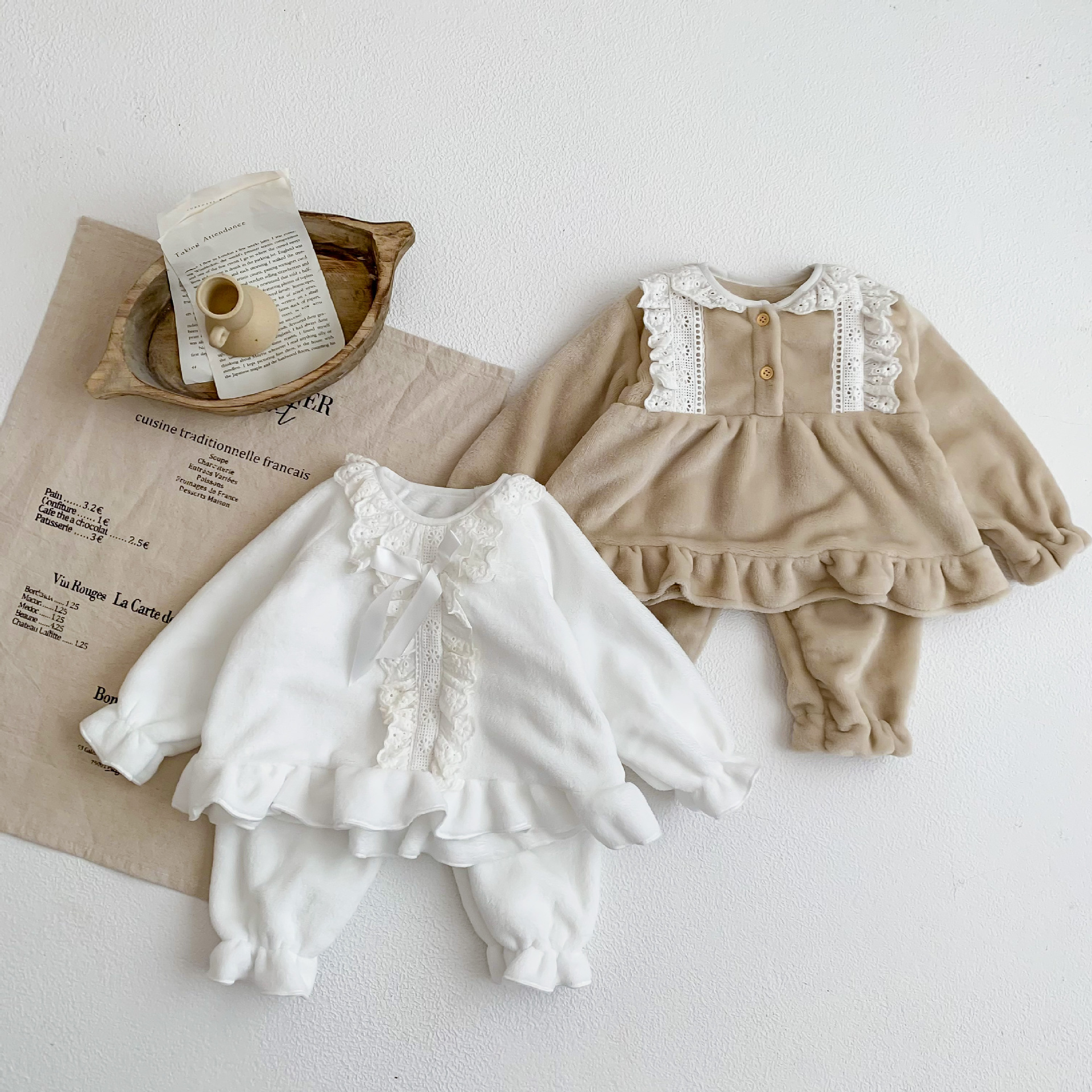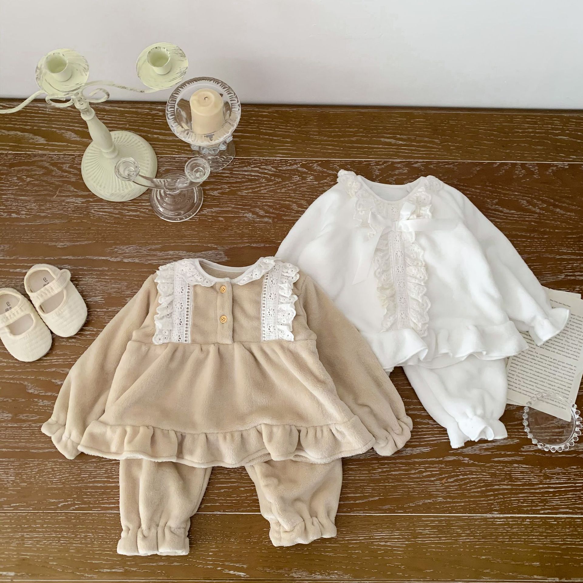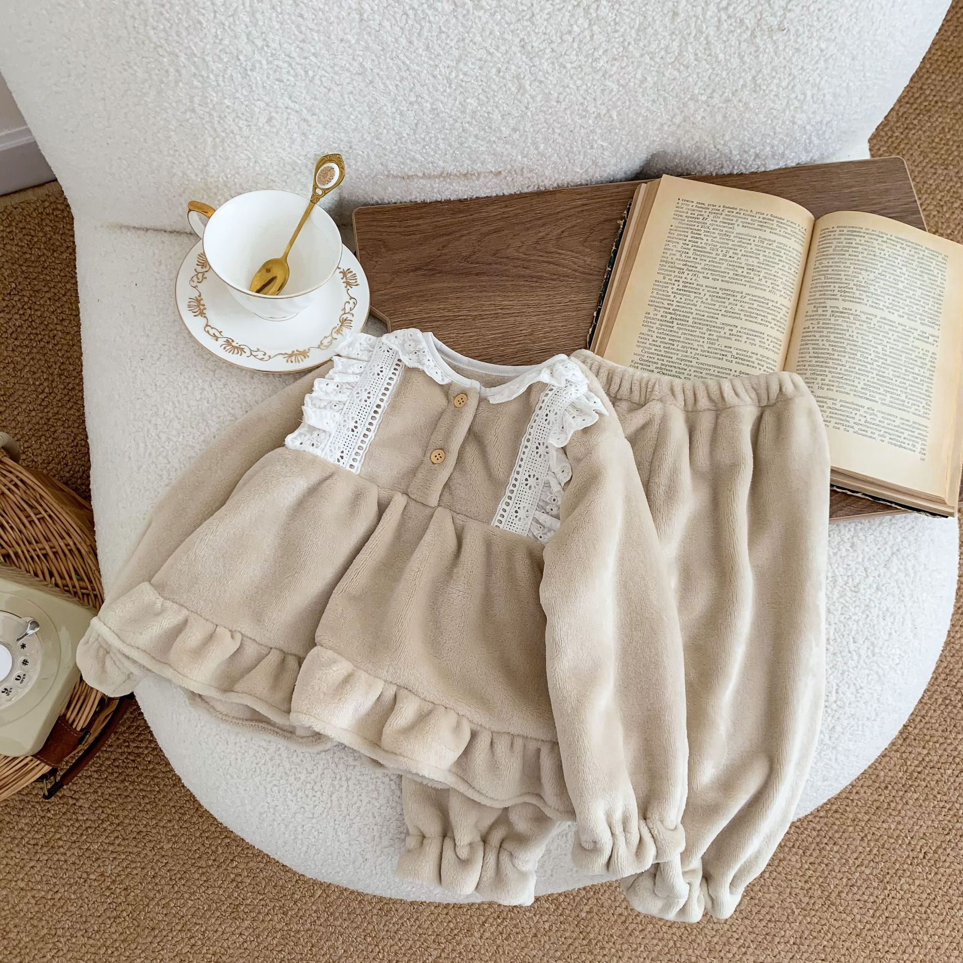 Corea del Sur ins Otoño e Invierno lindo encaje franela bebé niña pijamas infantil princesa desgaste del hogar de dos piezas de espesor