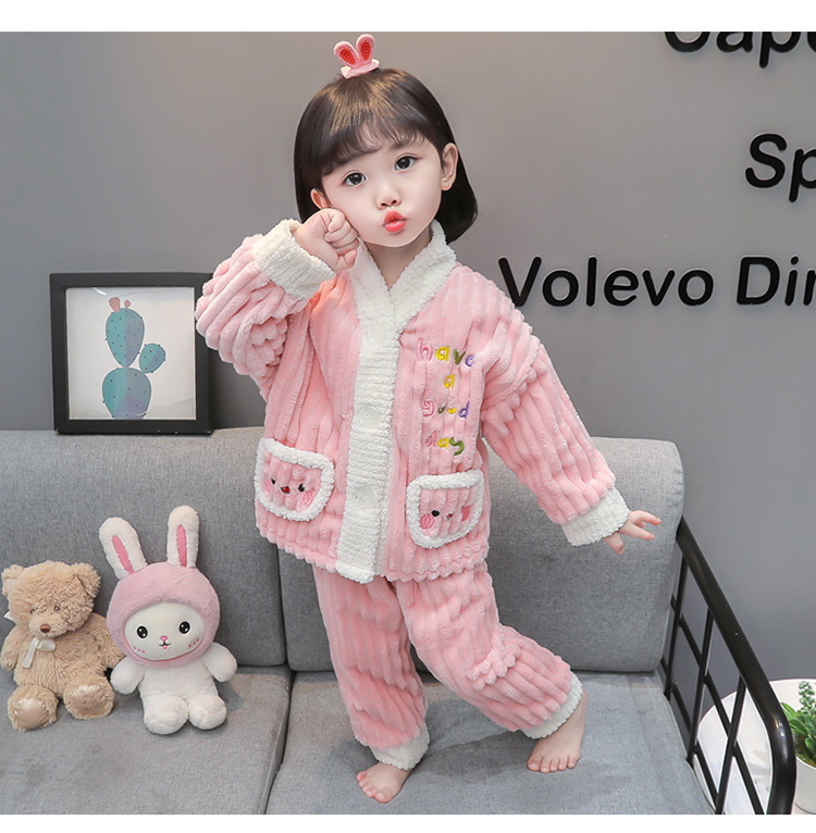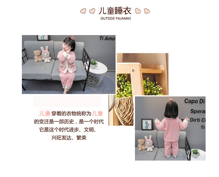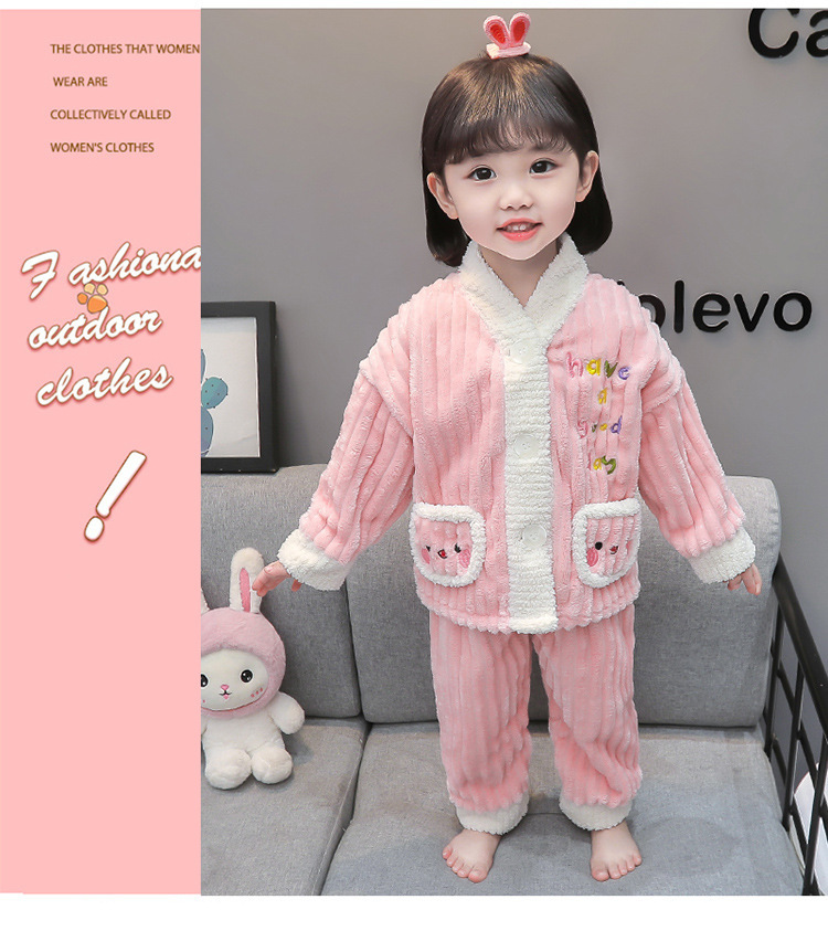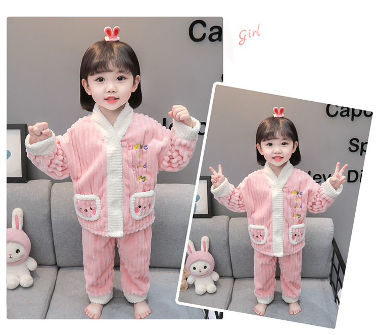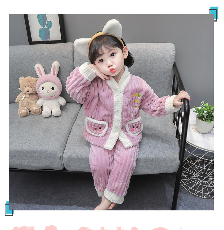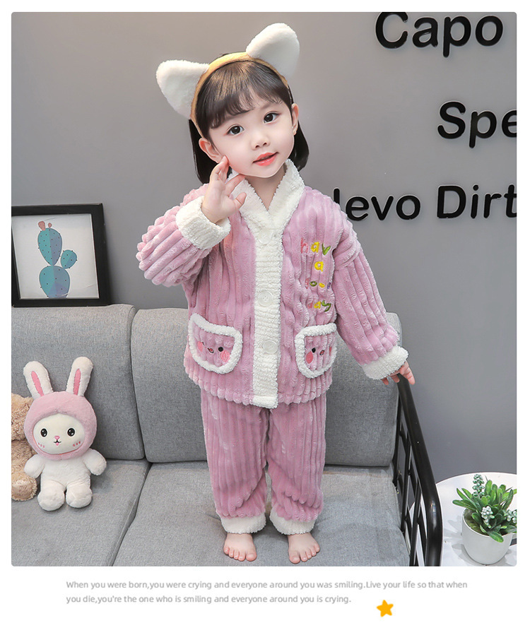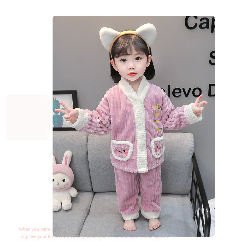 Niños pijamas de franela otoño e invierno las niñas lana coral engrosada bebé caliente dibujos animados niños homewear traje