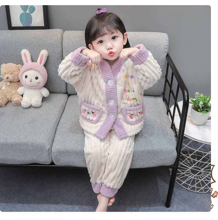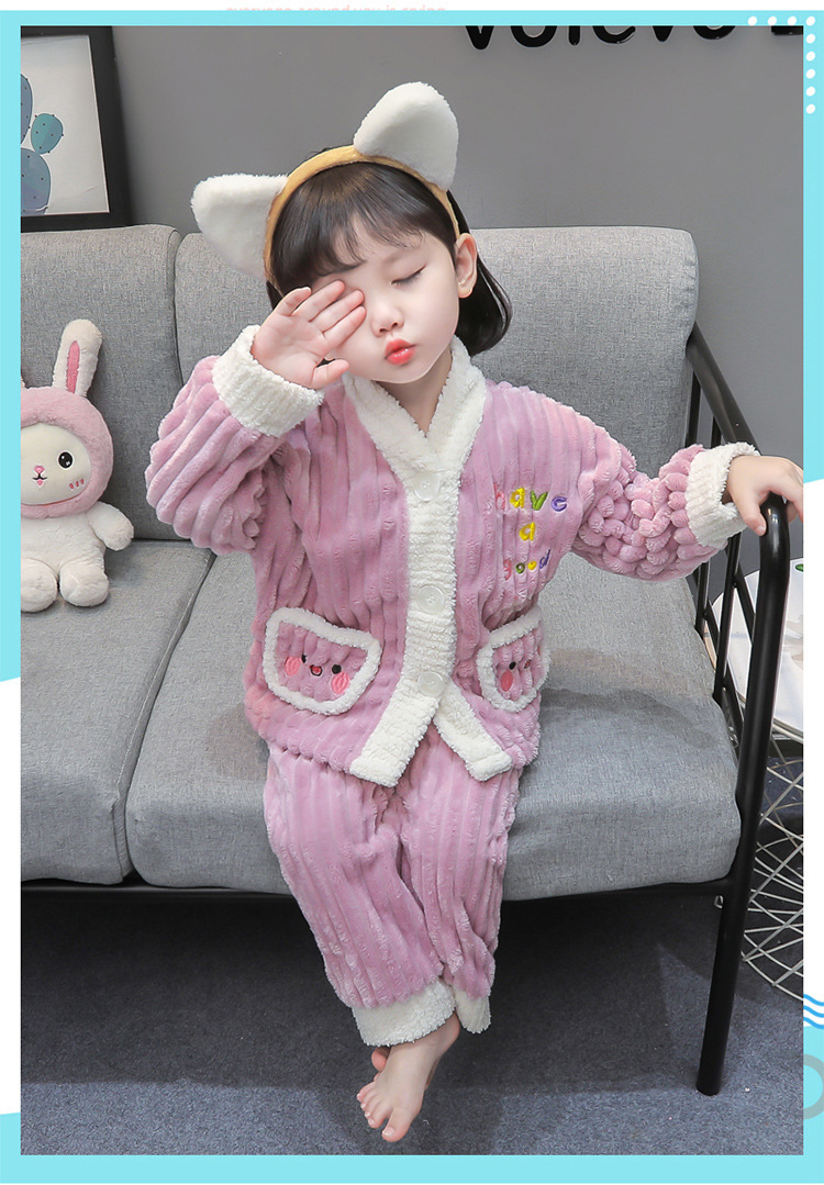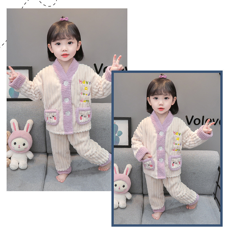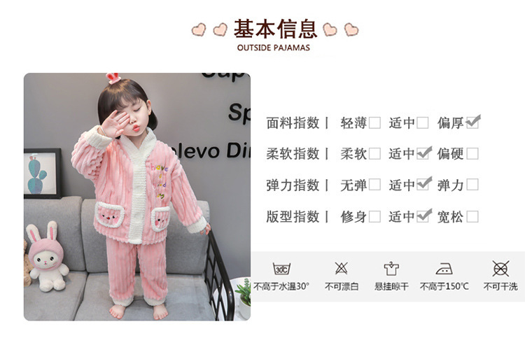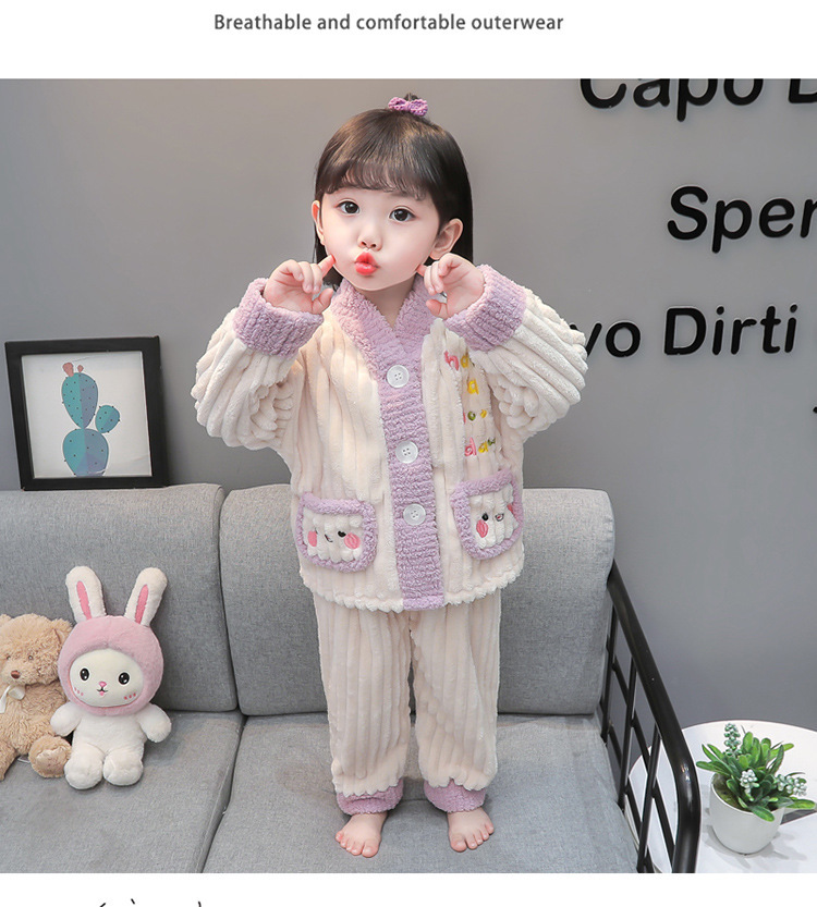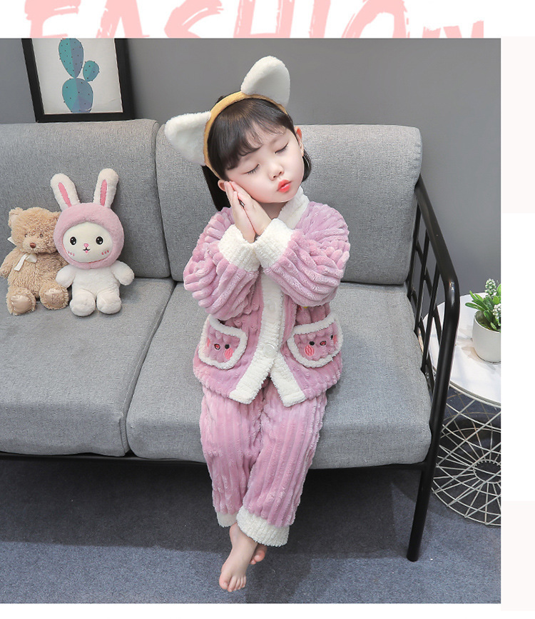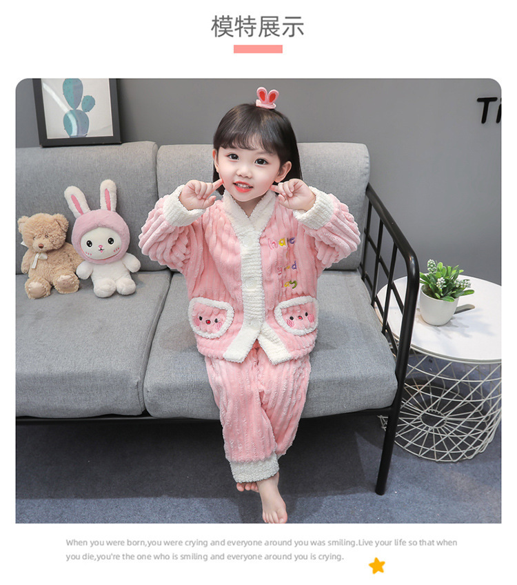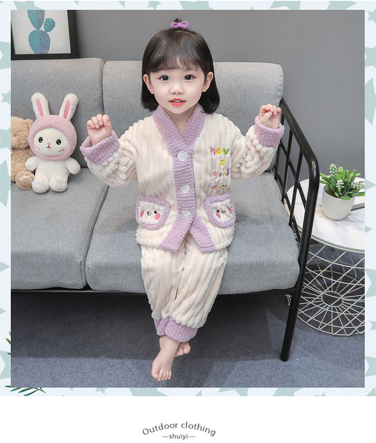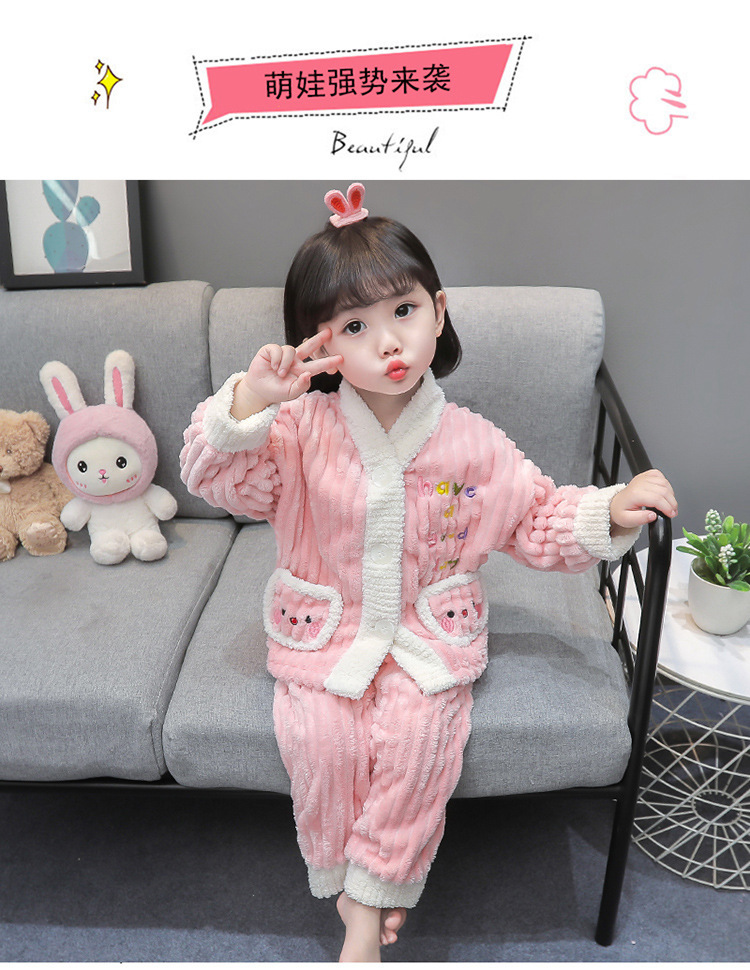 Ropa para el hogar de las niñas otoño e invierno nuevo coral polar forrado de lana engrosada lindo bebé niñas pijamas de franela traje