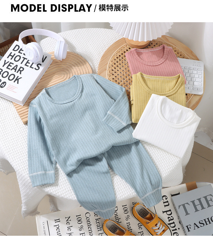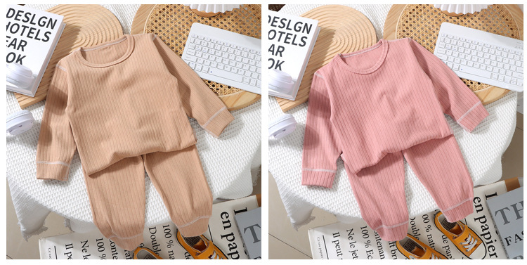 Camisa de fondo sin hueso para niños primavera y otoño ropa de otoño para niños medianos y grandes pantalones largos bebé ropa de hogar simple niños y niñas pijamas de cuello redondo