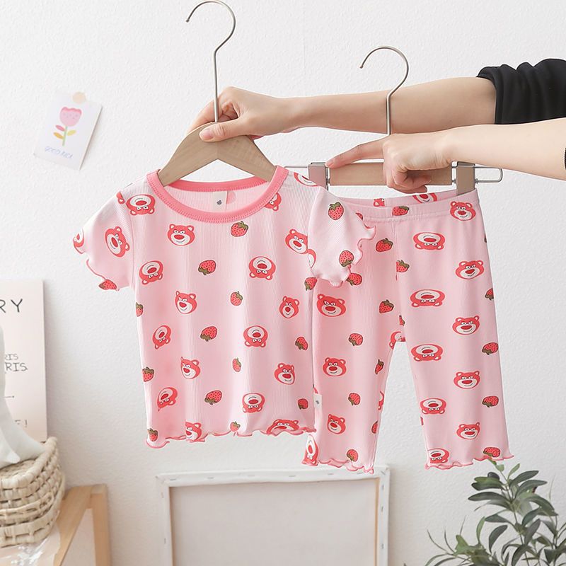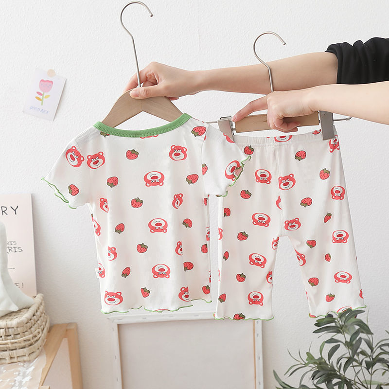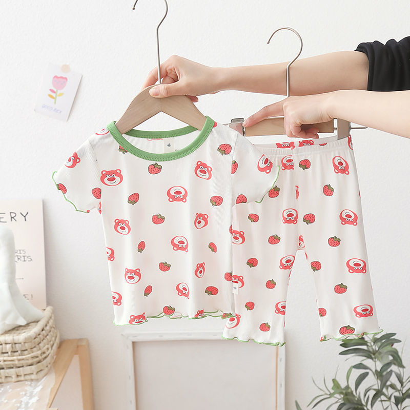 Las niñas de seda de hielo desgaste traje de estilo occidental verano nuevo estilo coreano bebé niñas hielo seda fresco pijamas desgaste del hogar conjunto