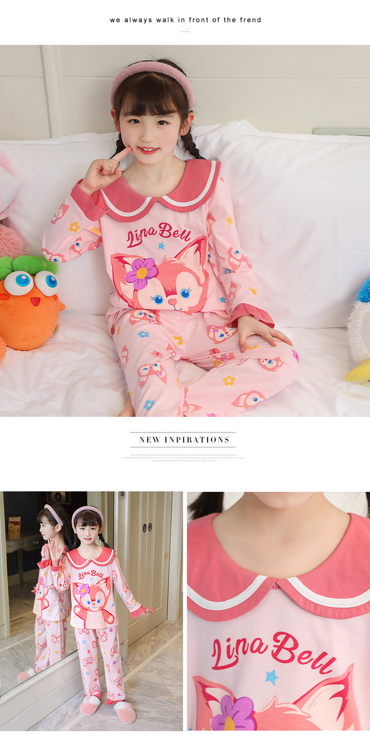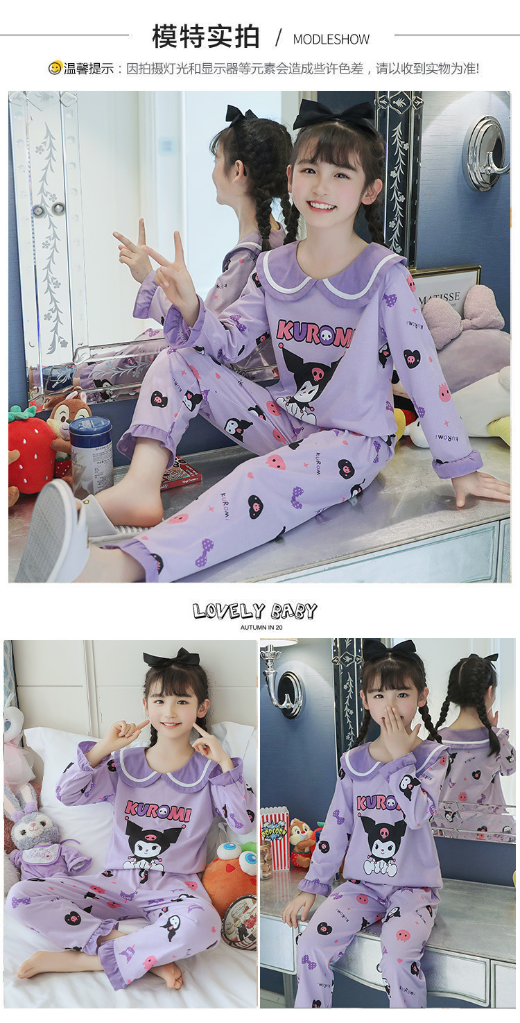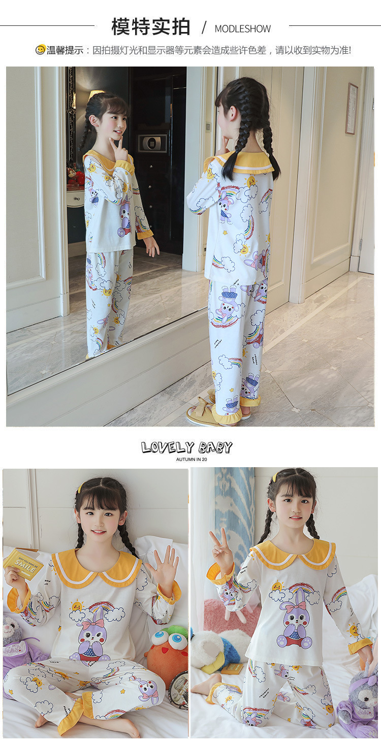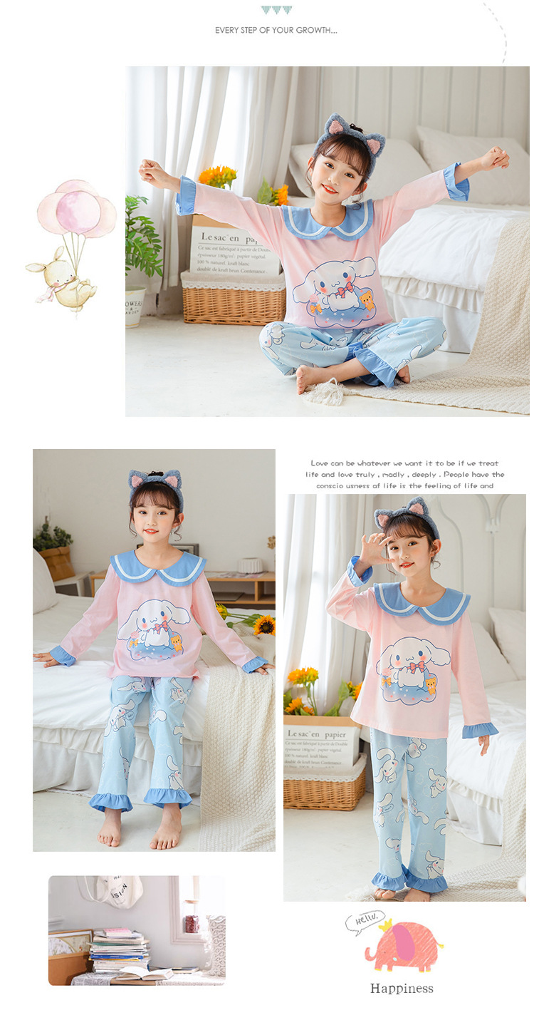 15 años de edad nueva primavera y otoño de los niños pijamas de manga larga de las mujeres lindo princesa muñeca collar de las mujeres mayores de algodón peinado desgaste del hogar de los niños