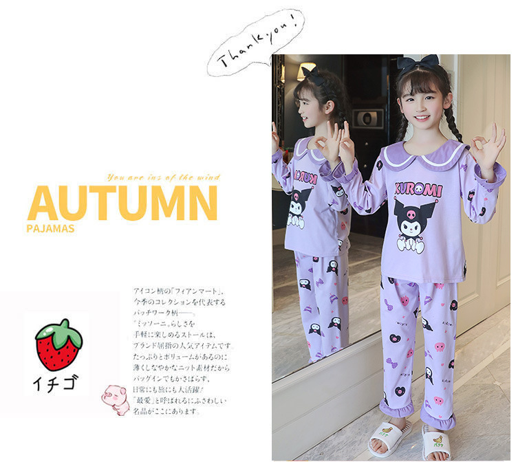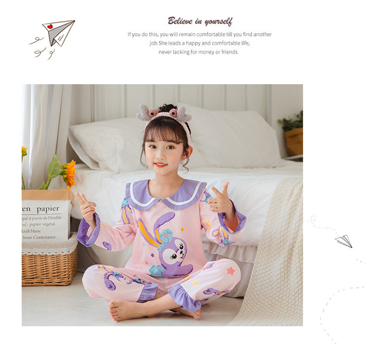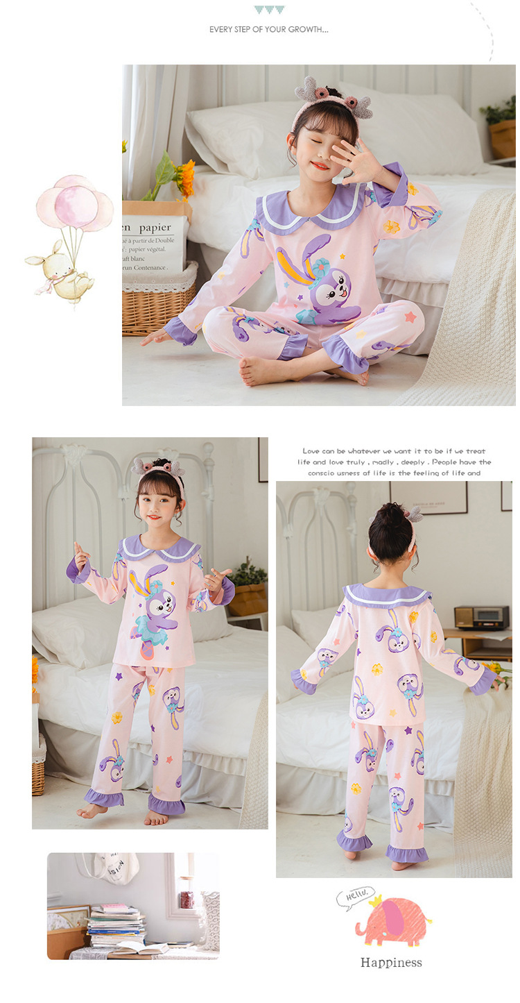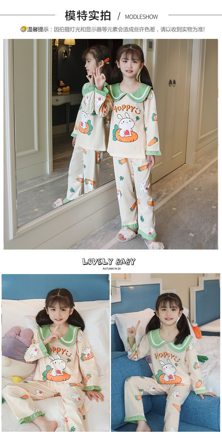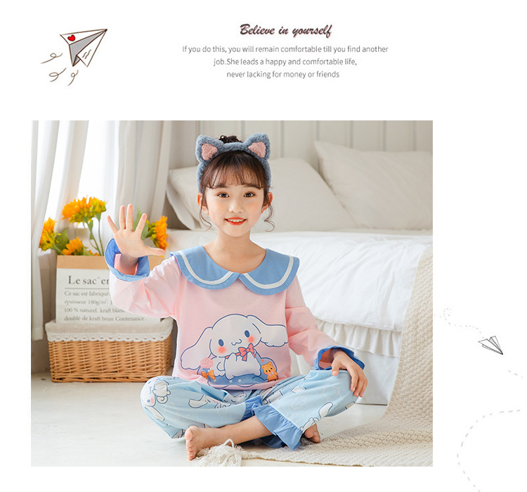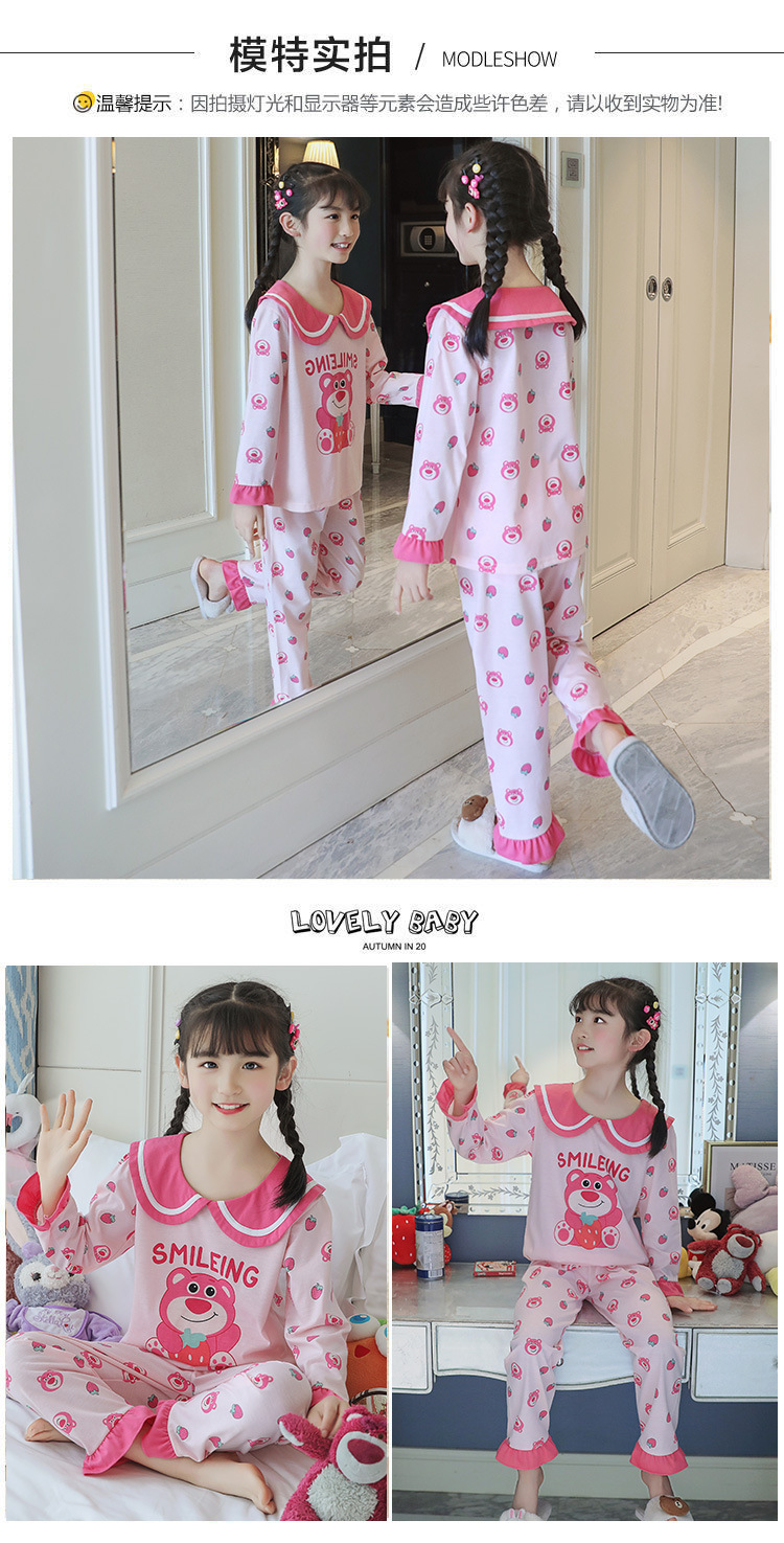 15 años de edad nueva primavera y otoño de los niños pijamas de manga larga de las mujeres lindo princesa muñeca collar de las mujeres mayores de algodón peinado desgaste del hogar de los niños