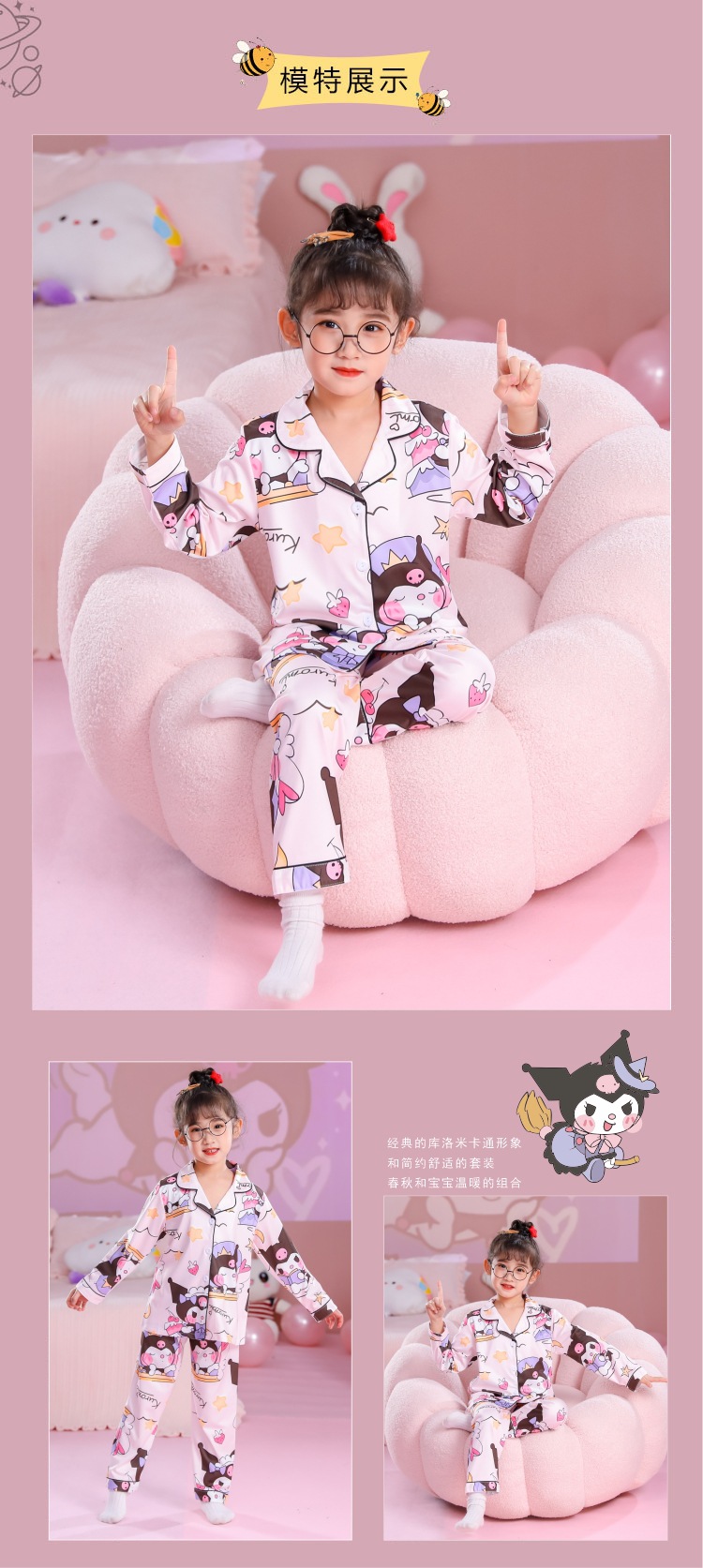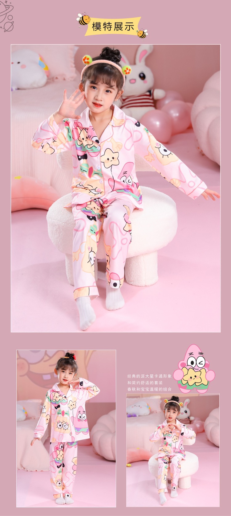Nuevo comercio exterior de las niñas de otoño e invierno de manga larga pijamas lindo hogar desgaste suave casual Four Seasons aire acondicionado casa Pijamas