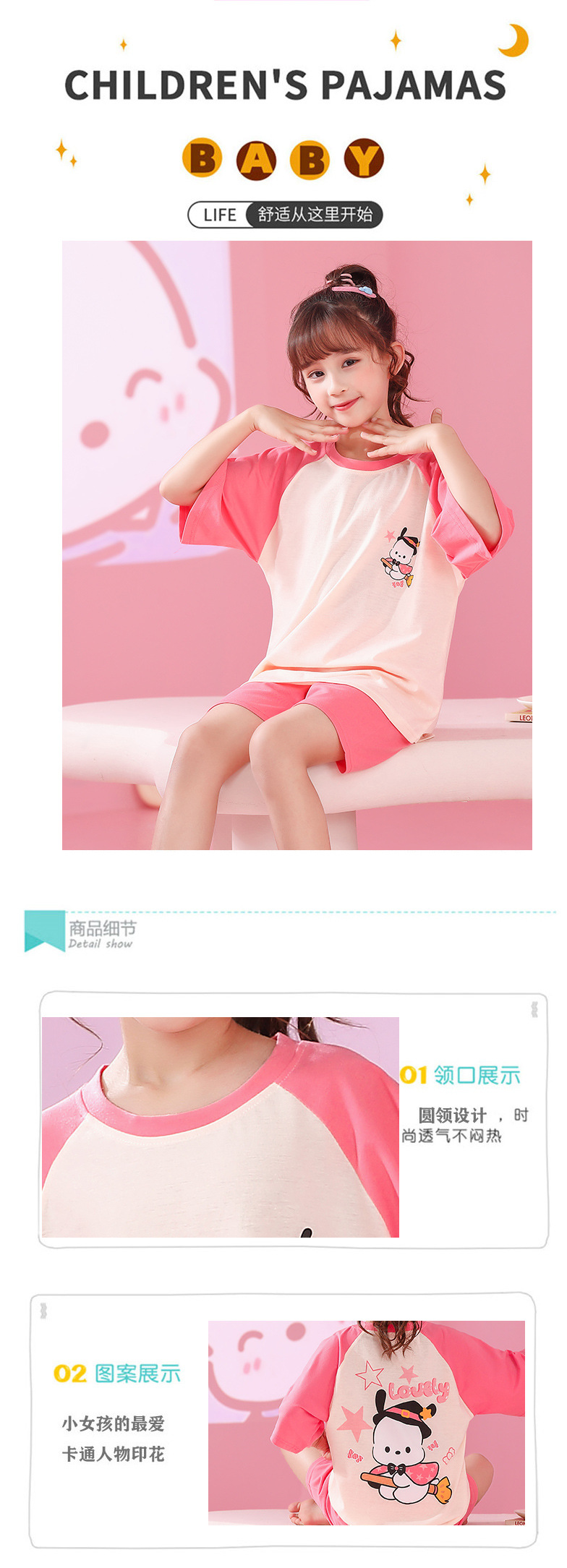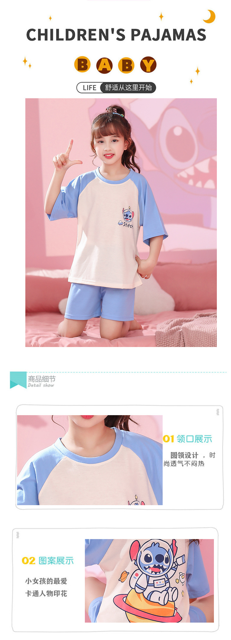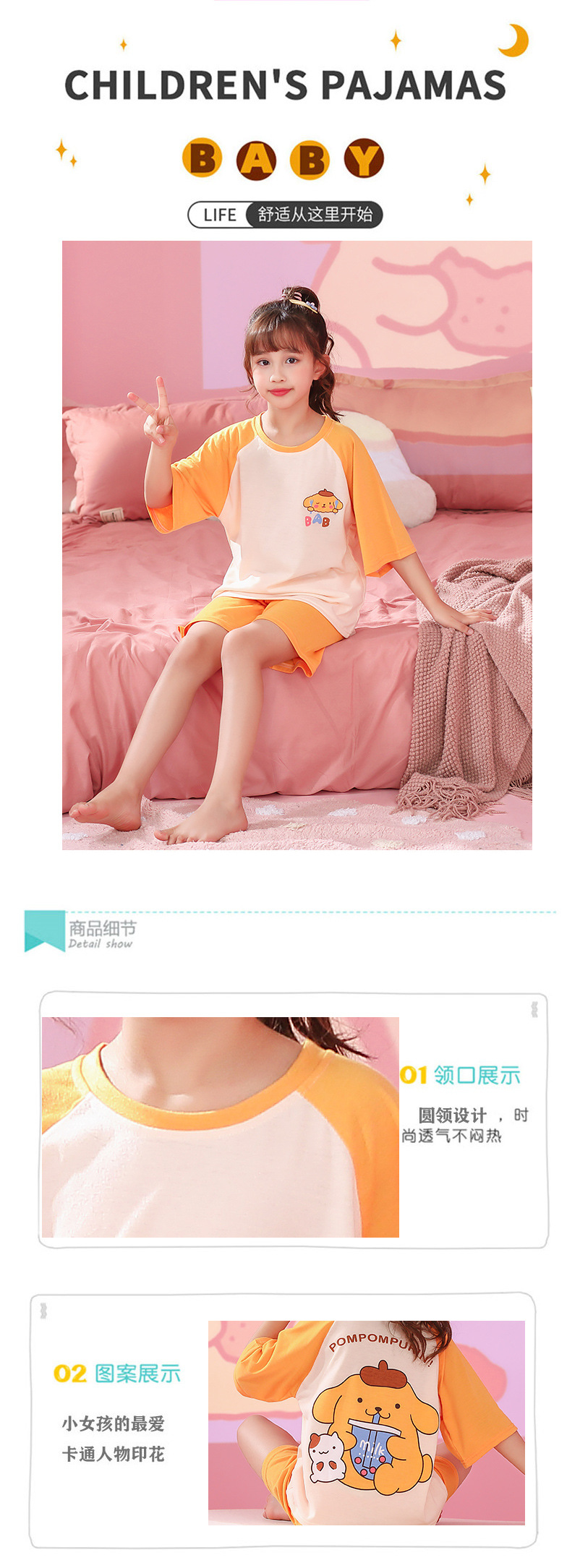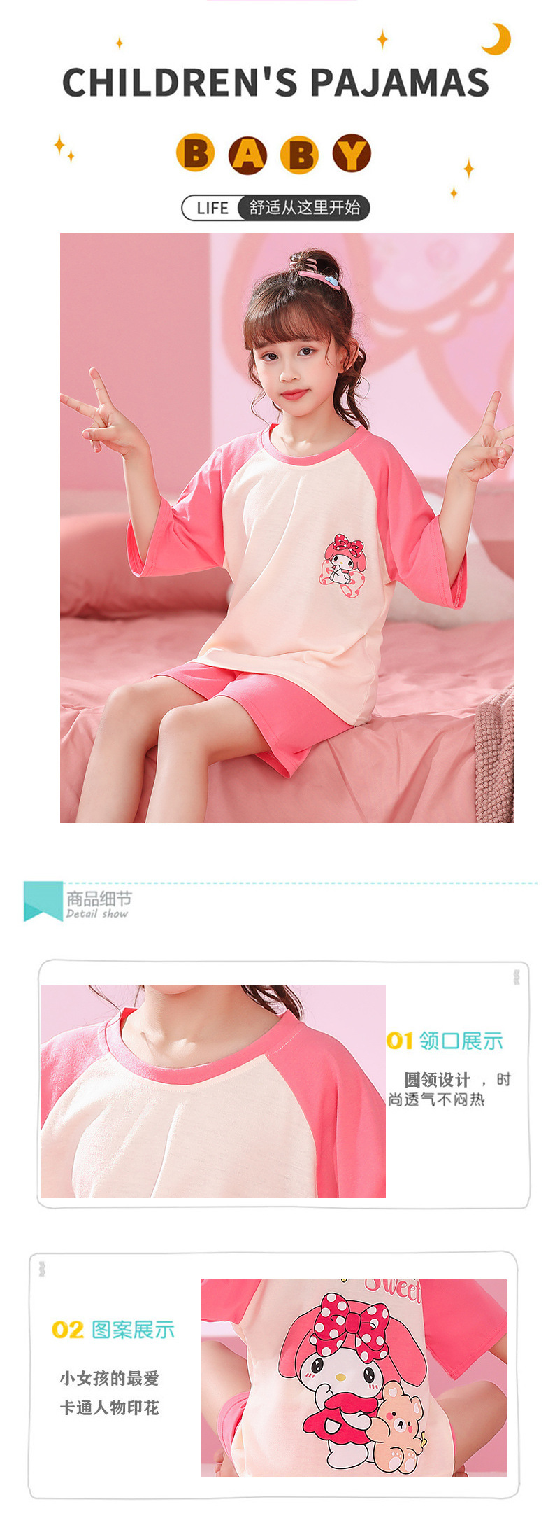 Verano niñas pijamas algodón peinado fino traje de manga corta niños niñas estilo occidental grande lindo homewear