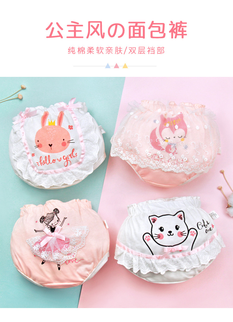 Ropa interior de niña calzoncillos de encaje de niña de algodón puro de verano 1 año de edad 2 niños pequeños 3 pantalones de pan P sin clip para bebés