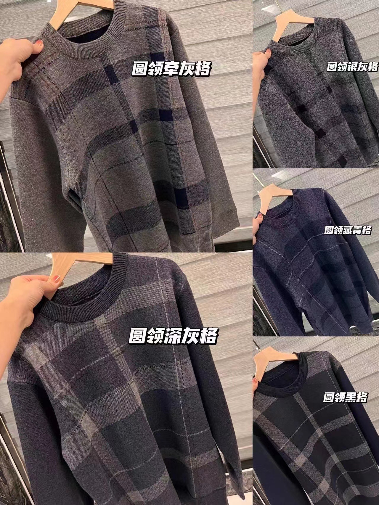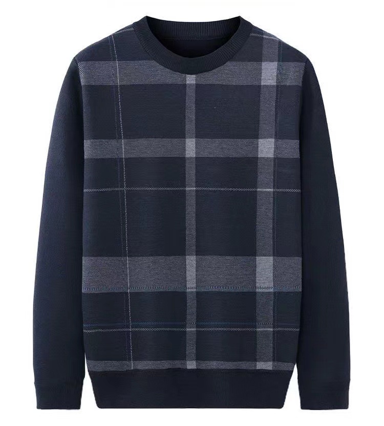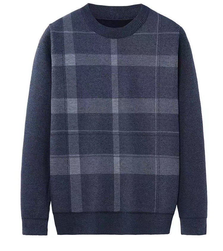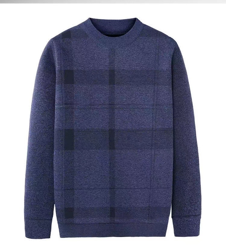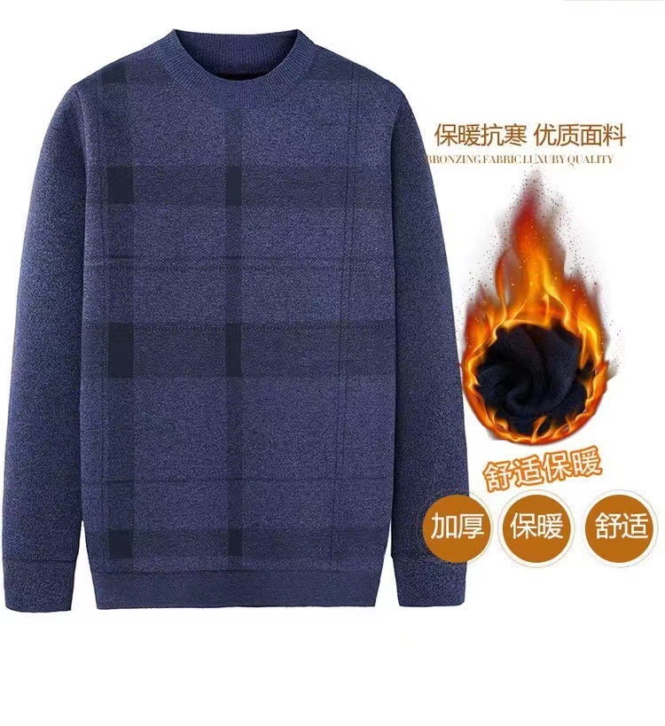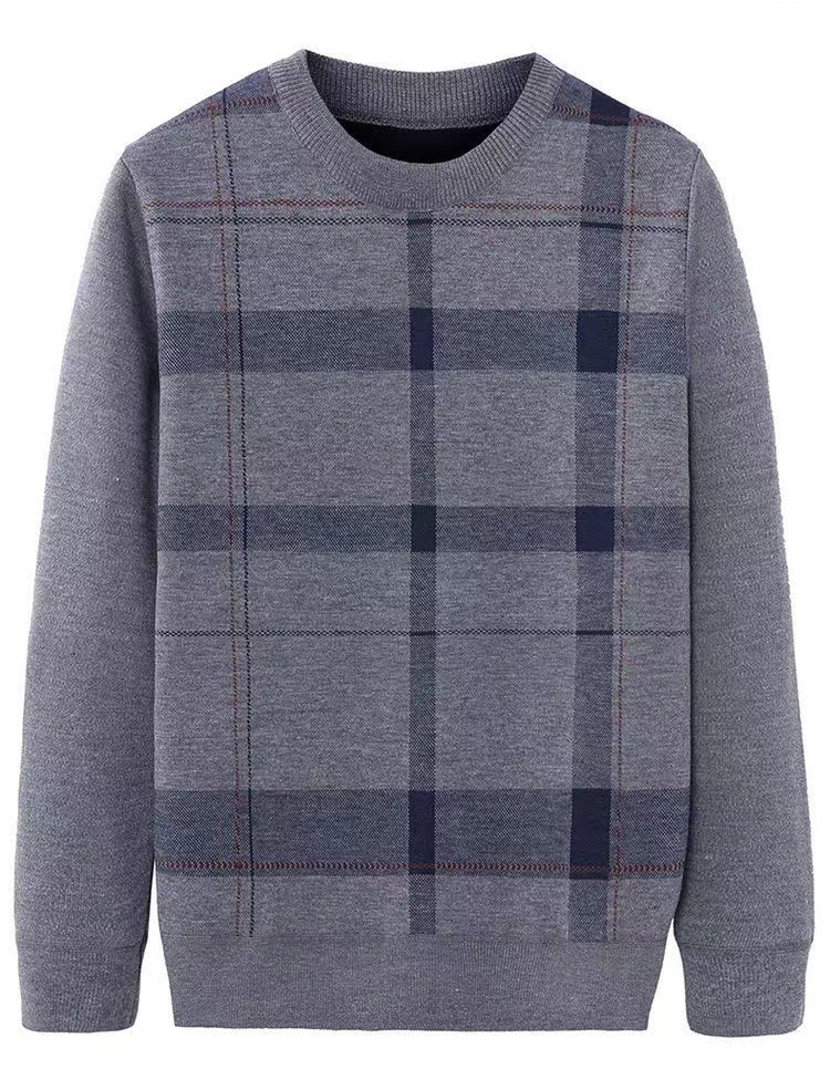 Entrega de una sola pieza Otoño e Invierno forrado de lana engrosada cuello redondo suéter de solapa Camiseta suéter de invierno de los hombres camisa de fondo a cuadros