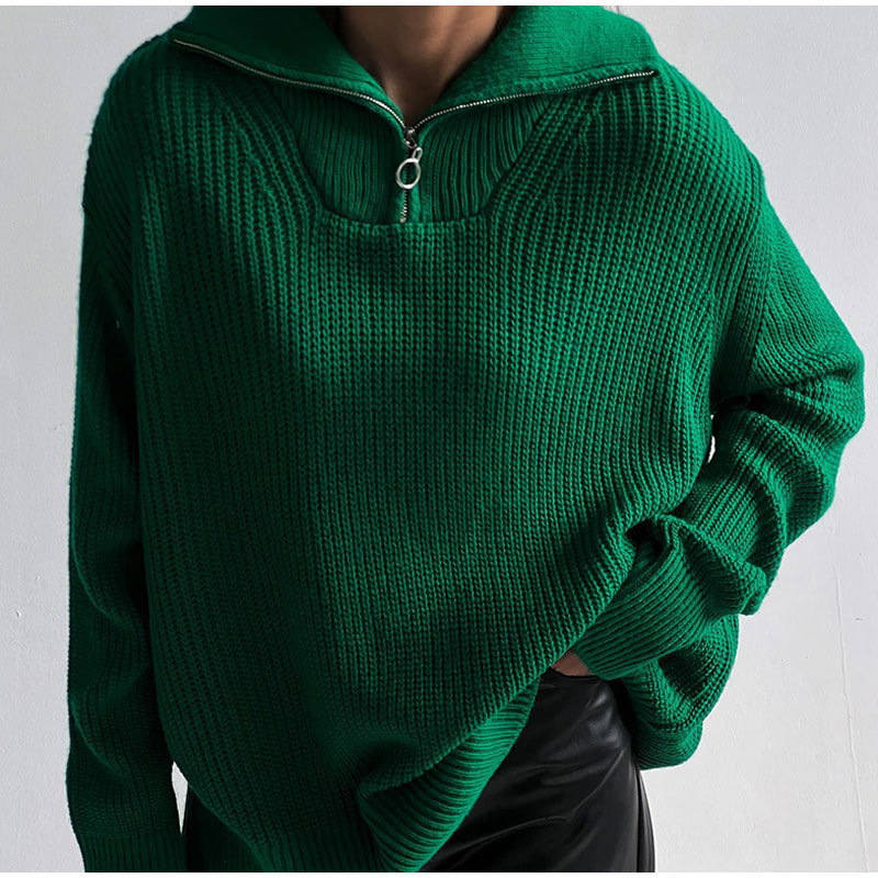 032 cremallera suéter Jersey de punto suelta ropa de mujer casual Otoño e Invierno mujeres europeas y americanas suéter de punto mujeres