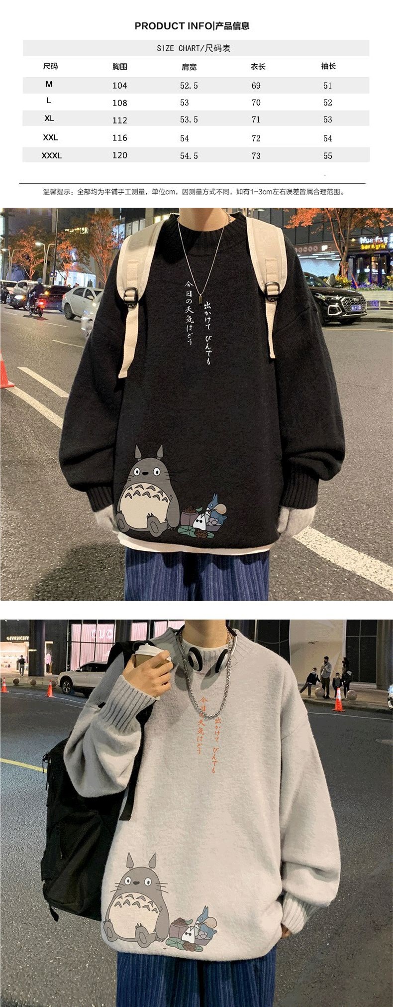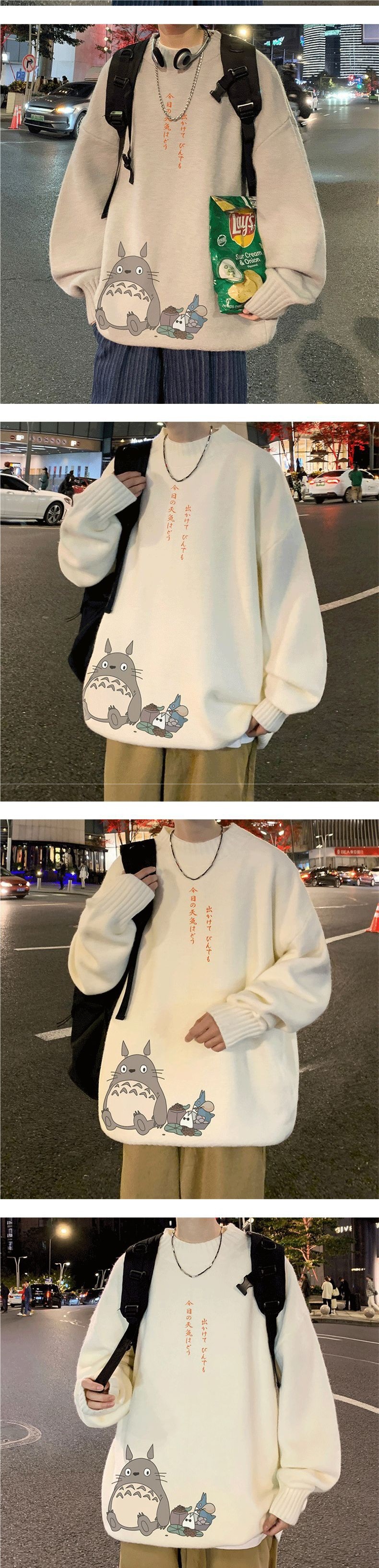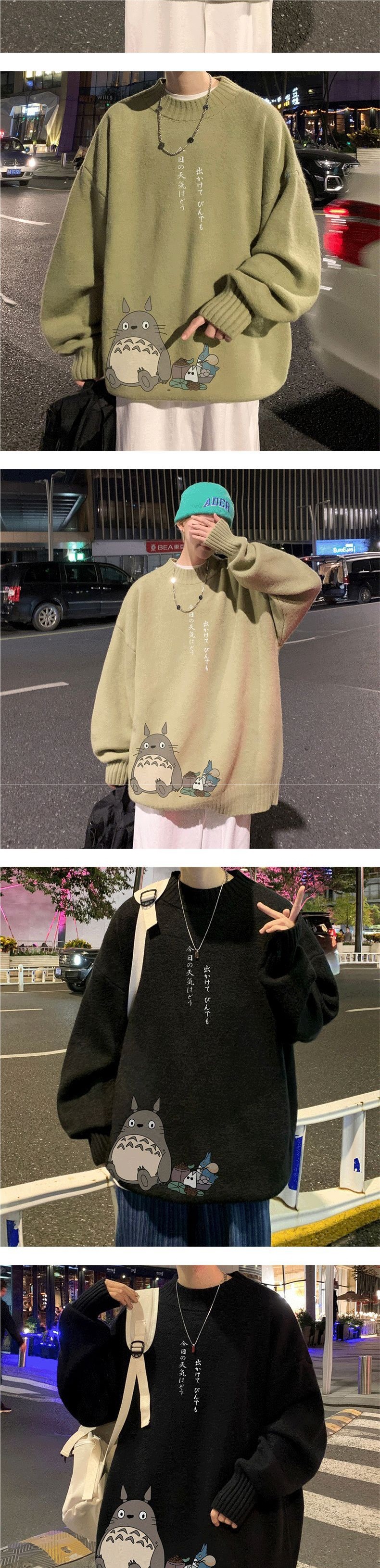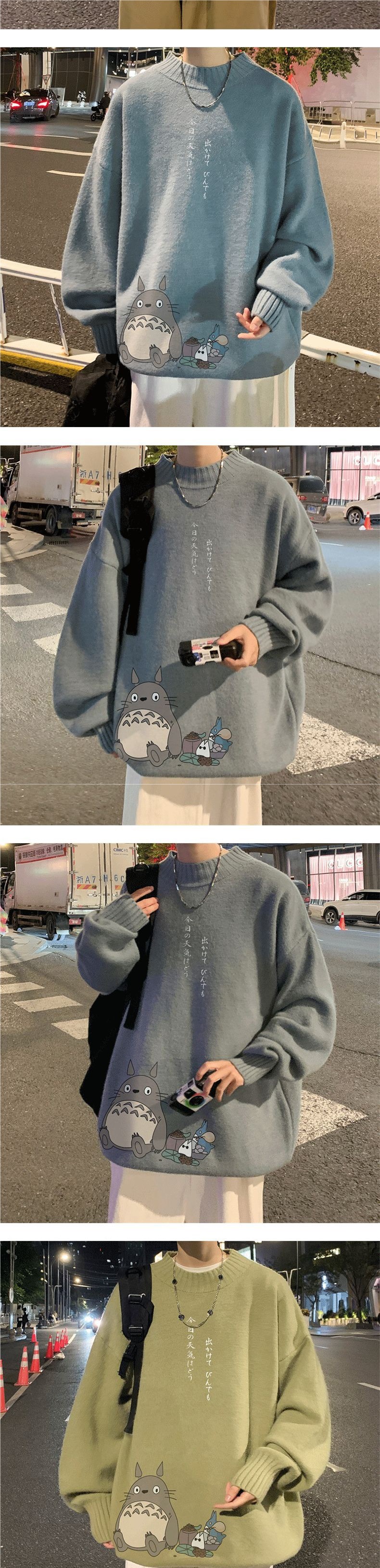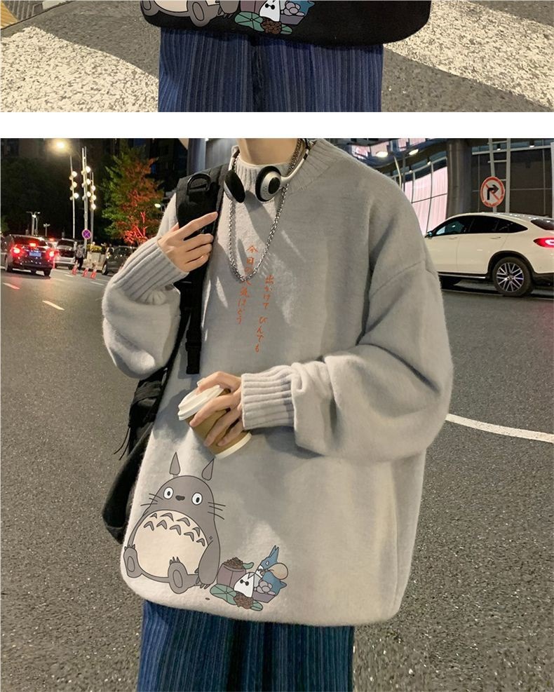 Otoño e invierno cuello redondo versátil dibujos animados impreso suéter hombres sueltos estilo universitario suéter gordo más tamaño suéter de moda