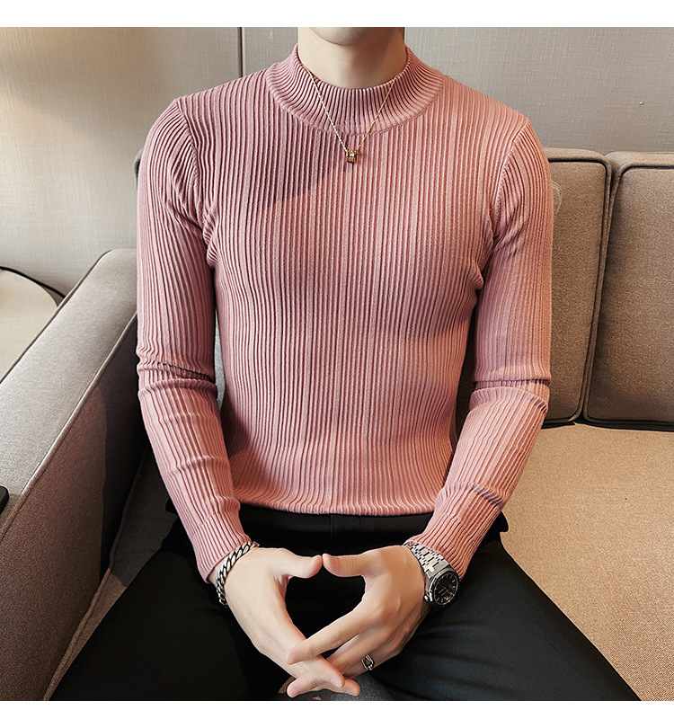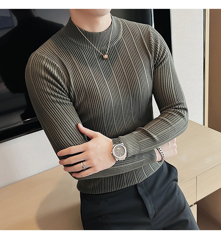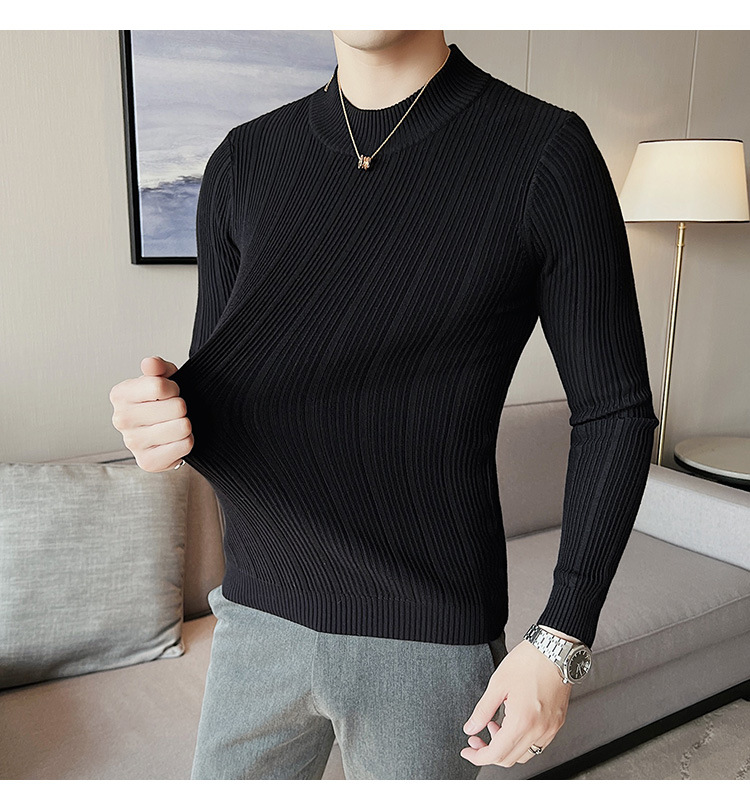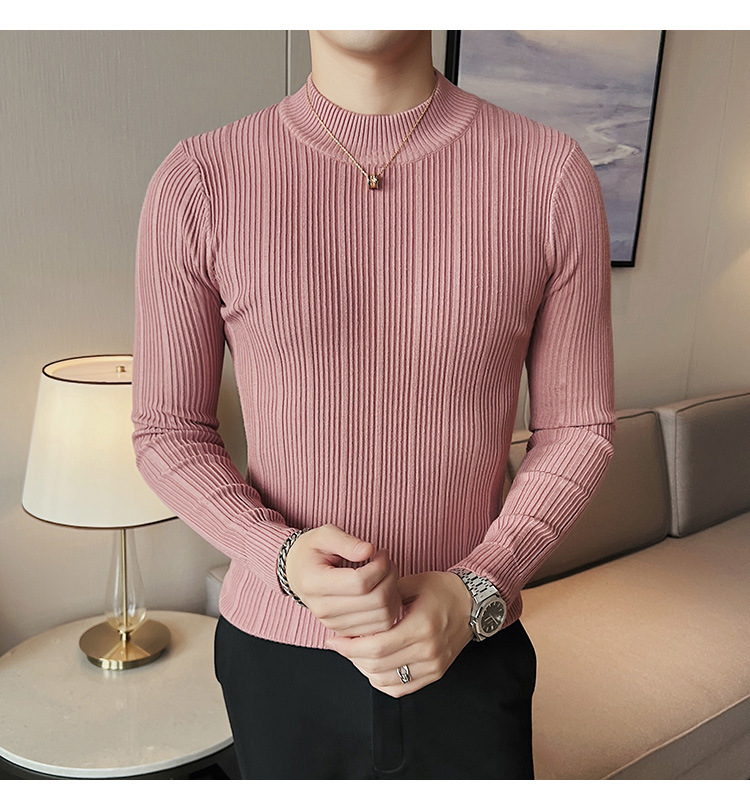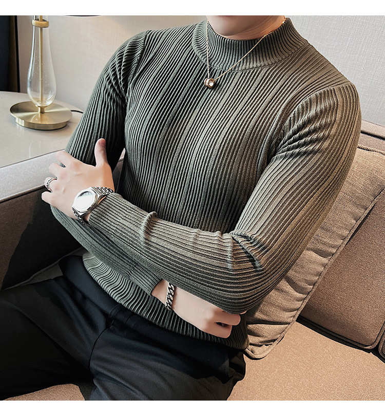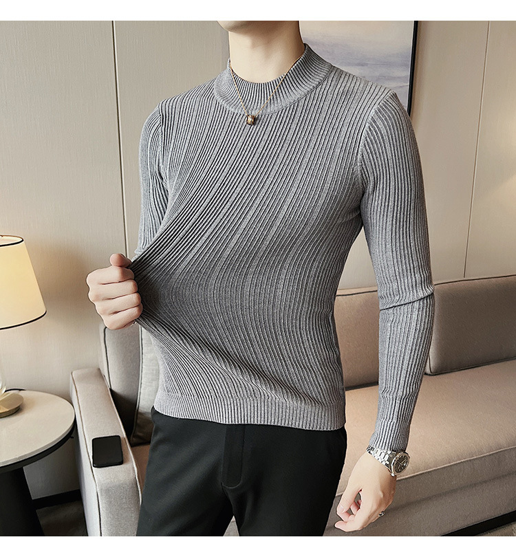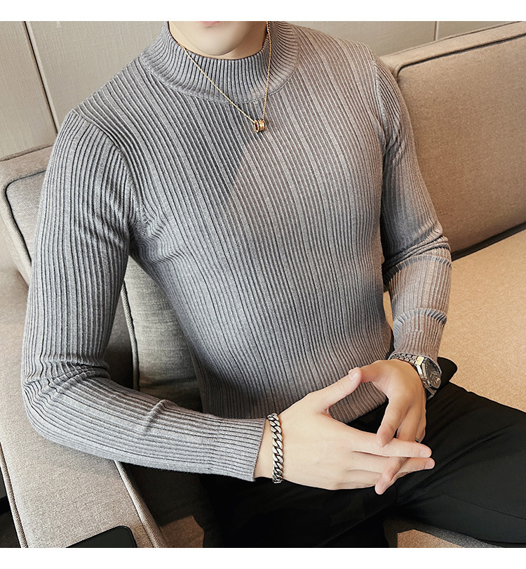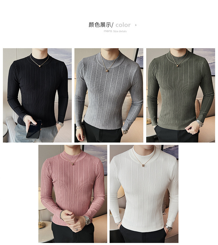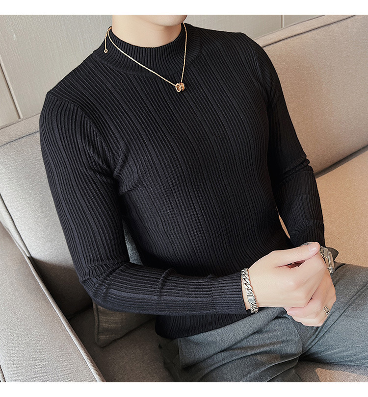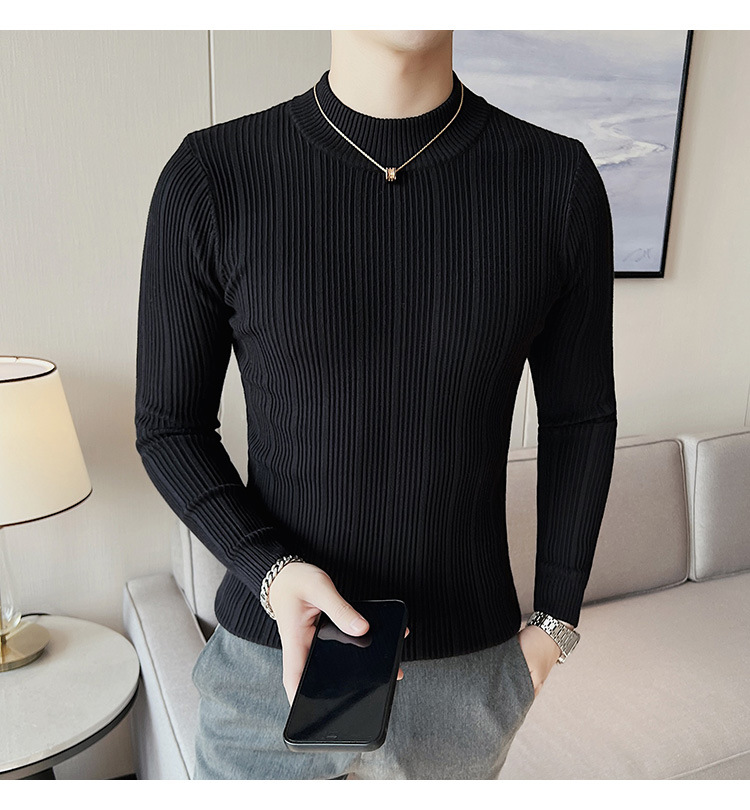 En stock de otoño e invierno de los hombres Nuevo medio cuello alto stretch textura suéter Delgado Coreano a rayas pullover bottoming suéter