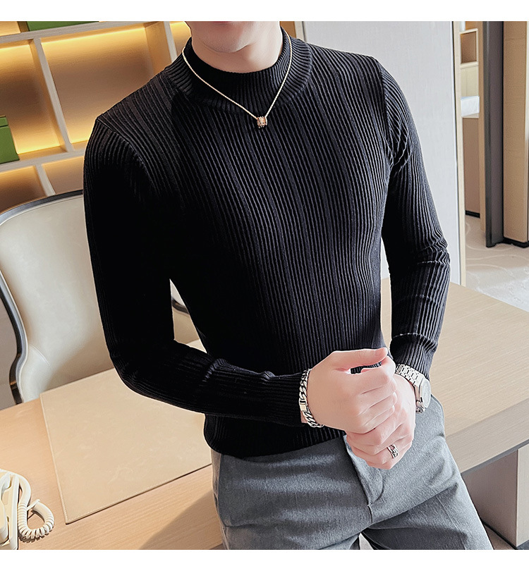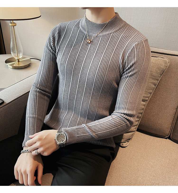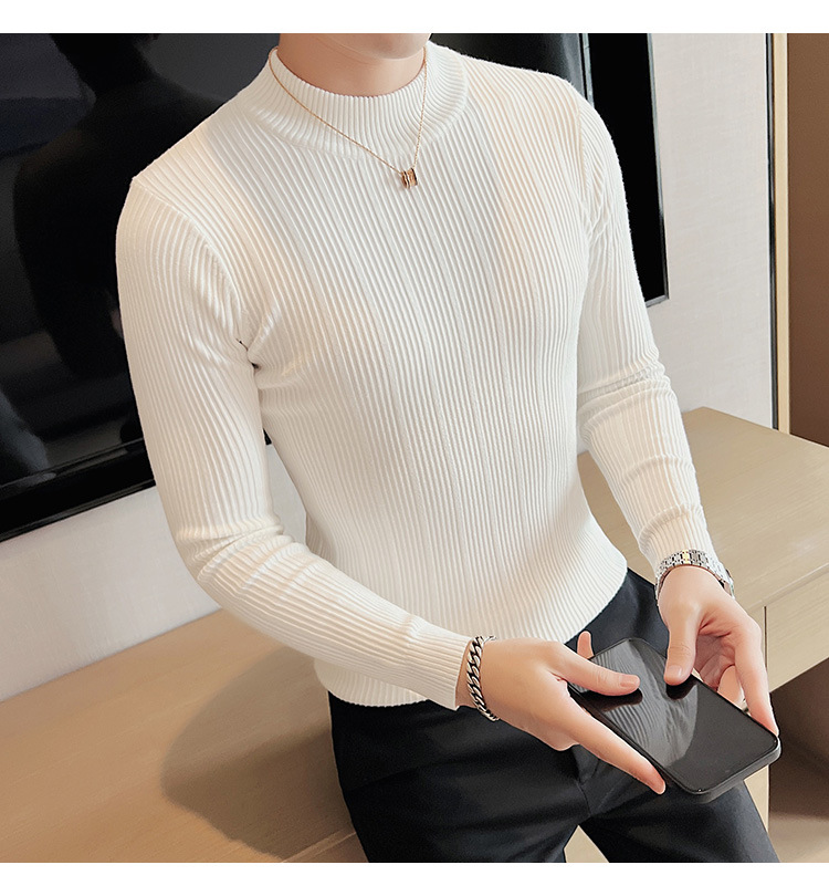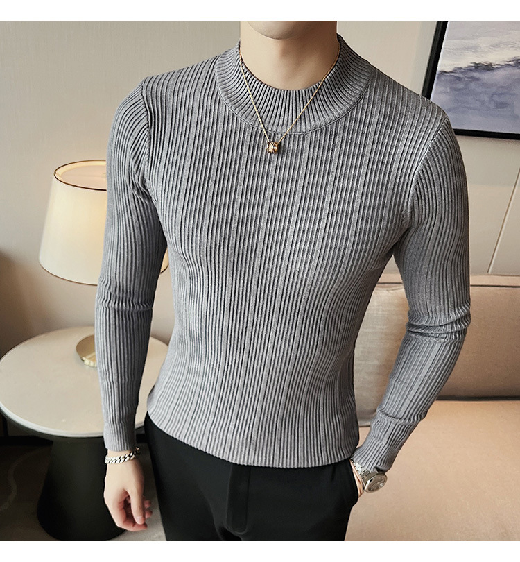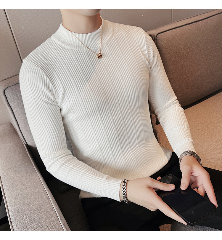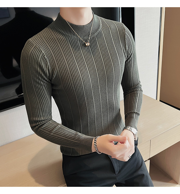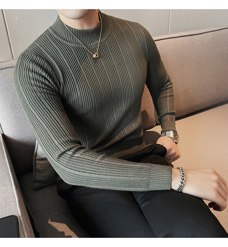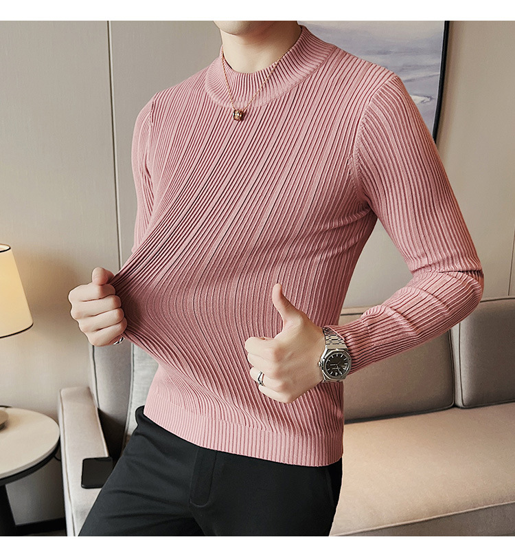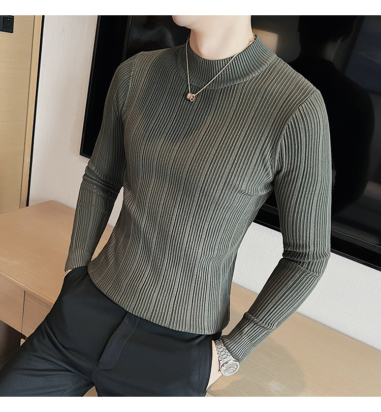 En stock de otoño e invierno de los hombres Nuevo medio cuello alto stretch textura suéter Delgado Coreano a rayas pullover bottoming suéter