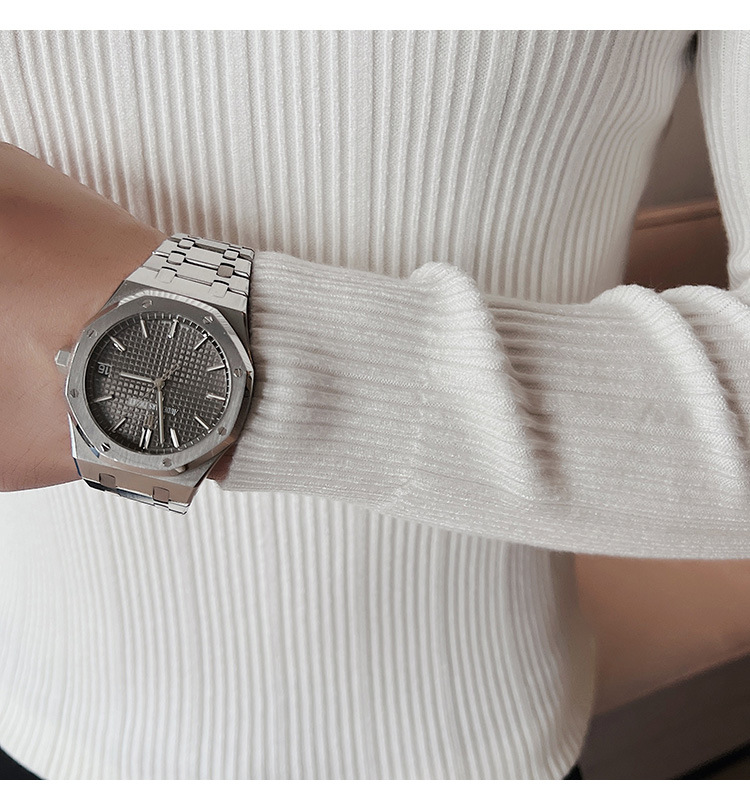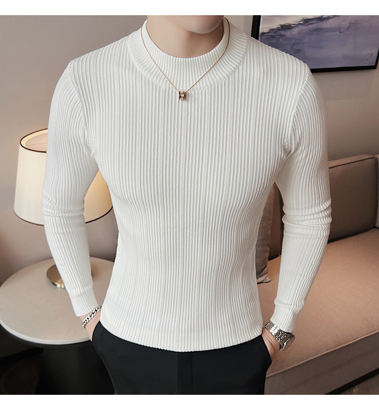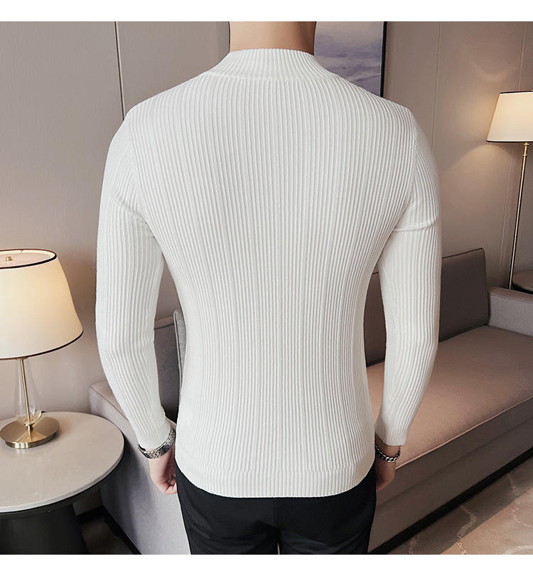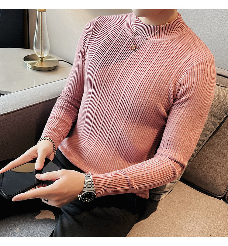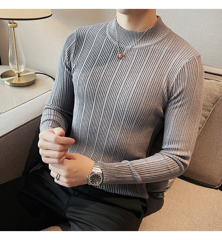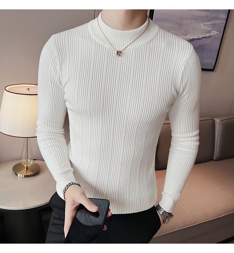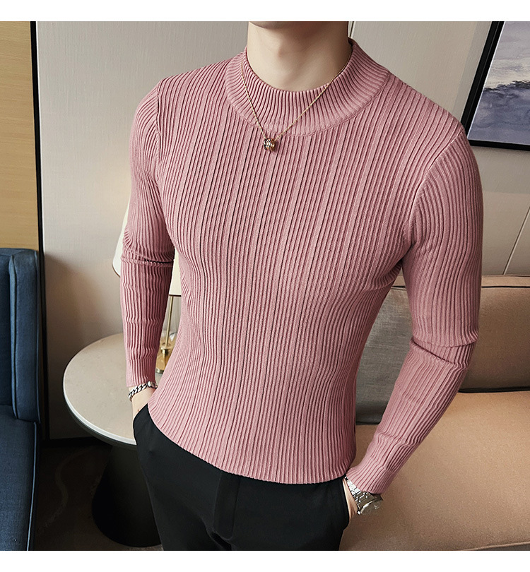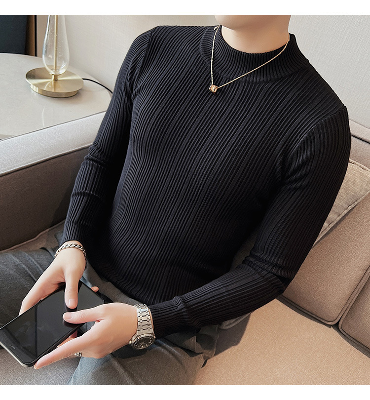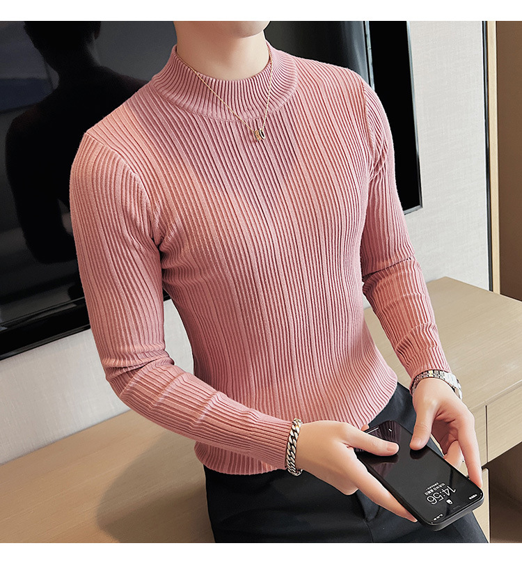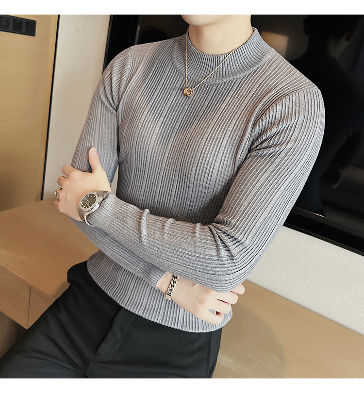 En stock de otoño e invierno de los hombres Nuevo medio cuello alto stretch textura suéter Delgado Coreano a rayas pullover bottoming suéter