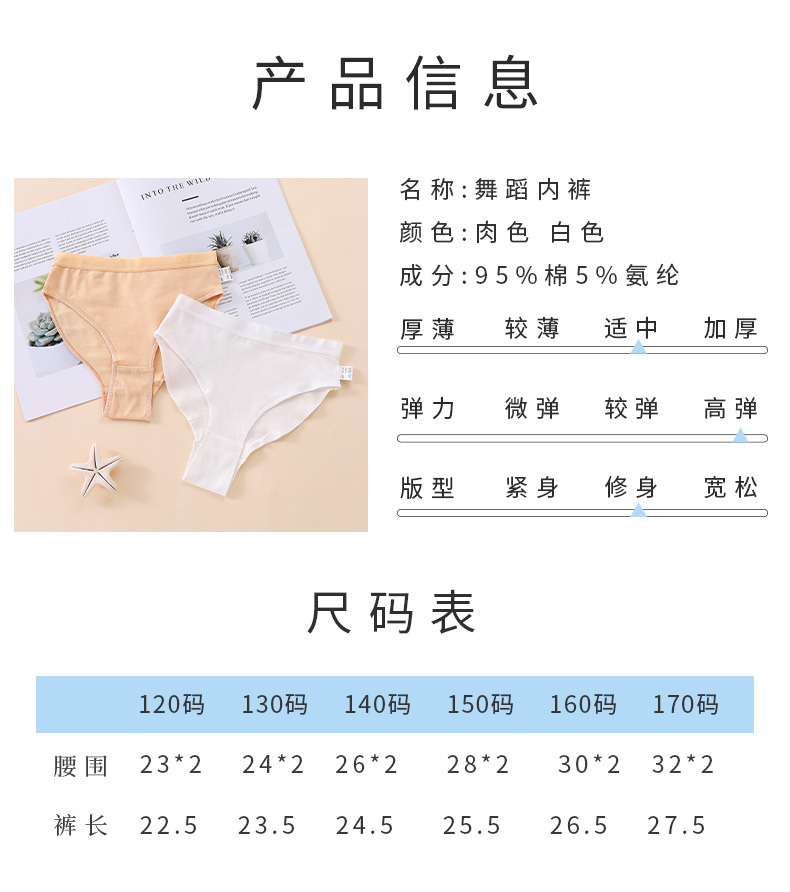 Ropa interior de clasificación de baile para niños alta horquilla triángulo color carne Ballet invisible para niñas pantalones cortos especiales de algodón puro para el examen y la práctica del arte