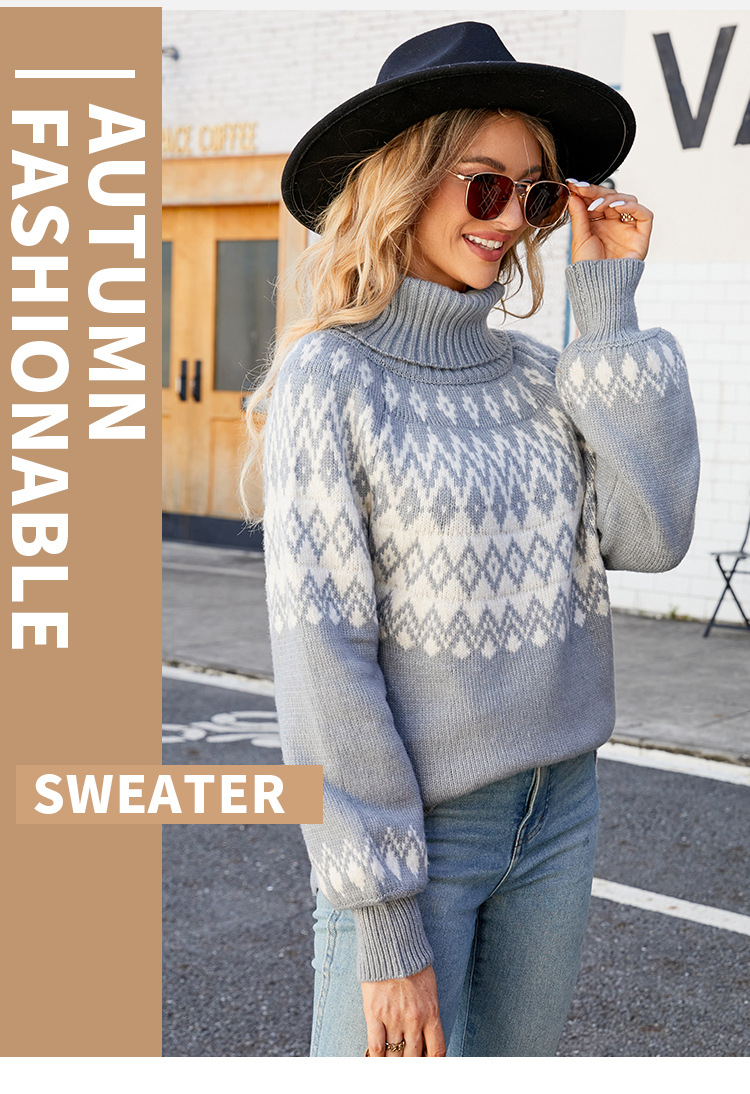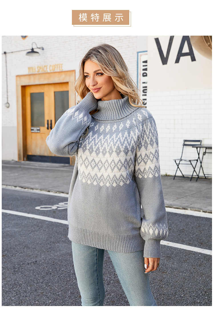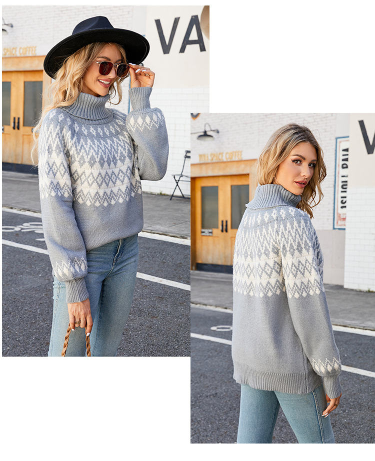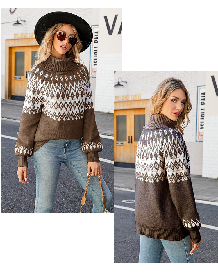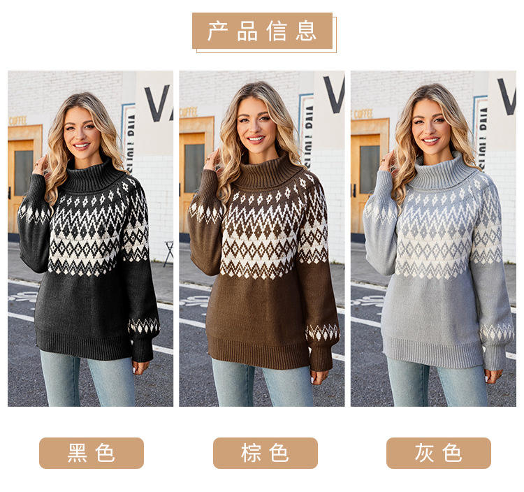 2023 otoño e invierno nuevo suéter de cuello alto transfronterizo europeo y americano suéter de mujer suelto Retro Ropa exterior suéter de mujer de punto