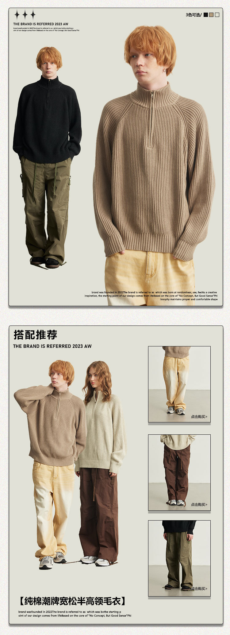 UNF Otoño e Invierno nueva marca de moda de Algodón suéter de cuello alto Medio suéter de color sólido básico flojo suéter cálido para hombres y mujeres