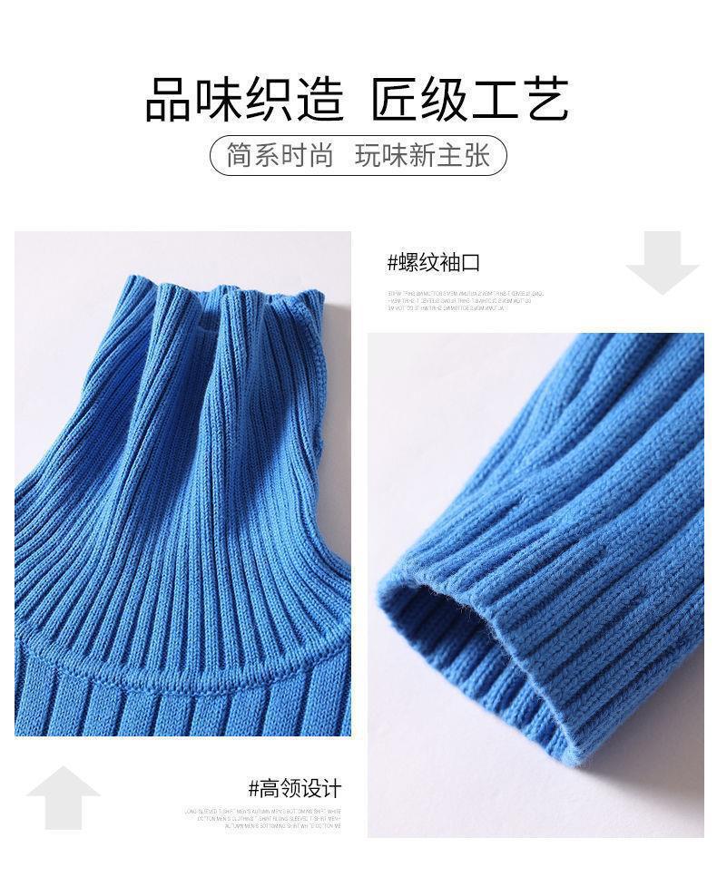 Fábrica al por mayor suéter de los hombres suéter de cuello largo solapa delgada escuela secundaria de una sola pieza suéter de terciopelo estudiante masculino Medio cuello alto