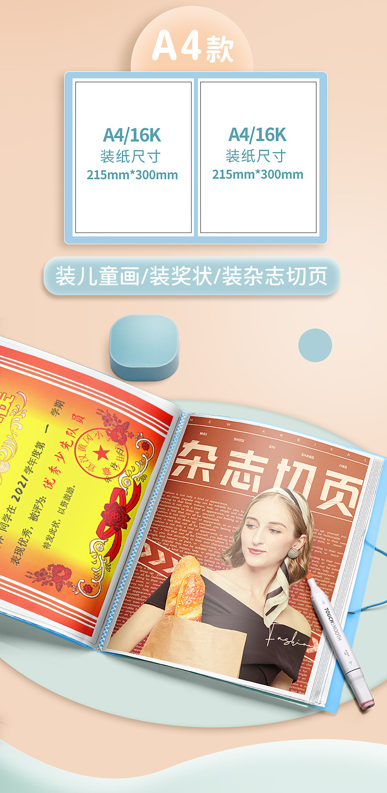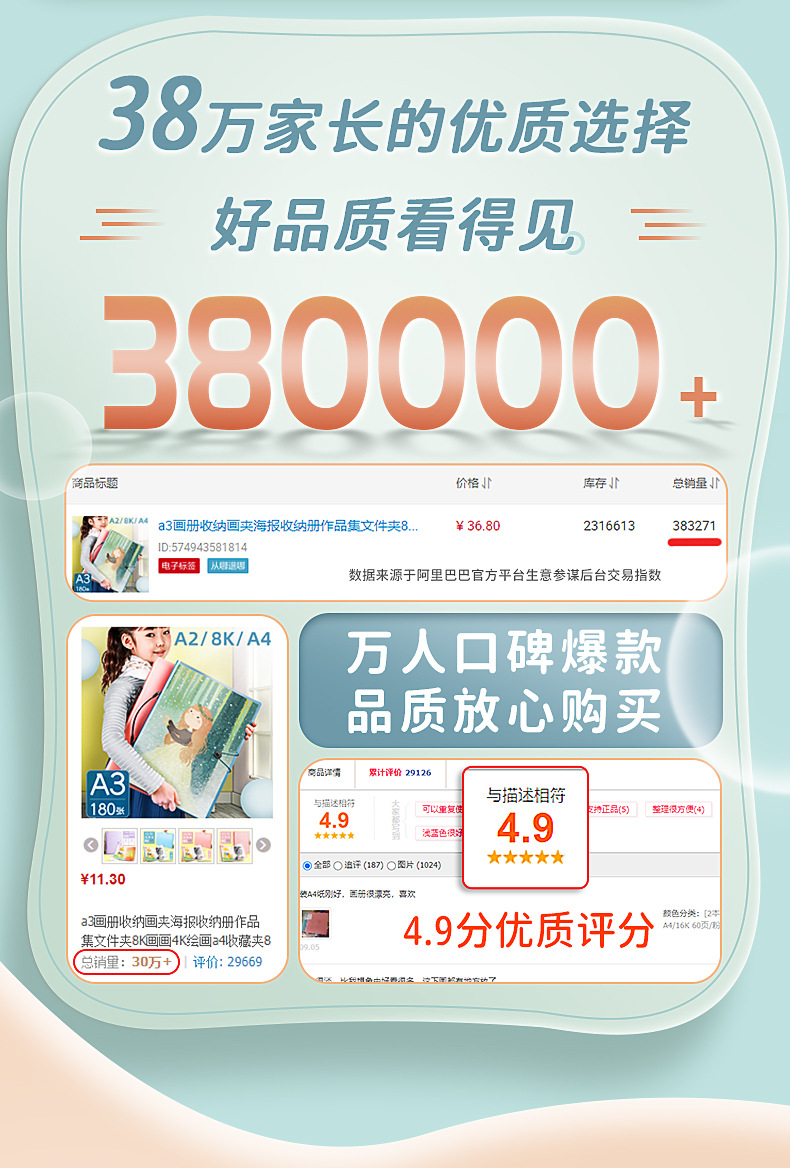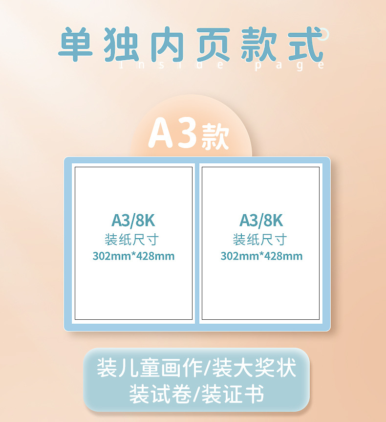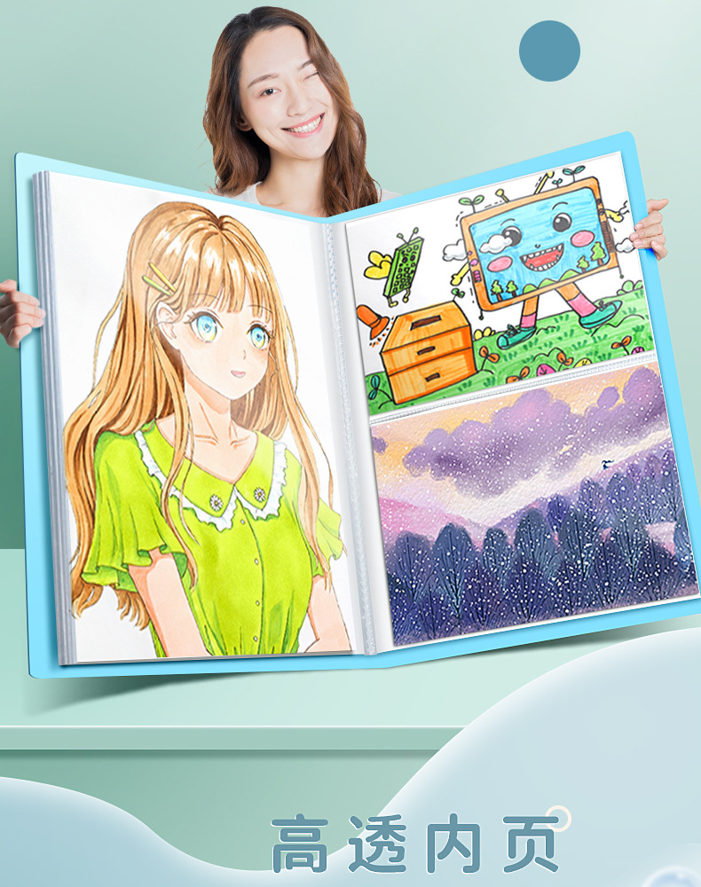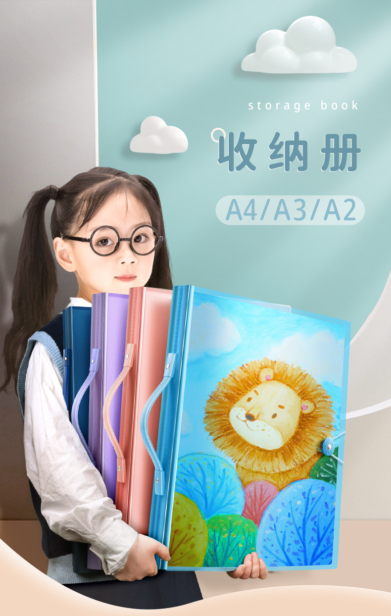 A3 álbum de imágenes portátil colección de arte infantil almacenamiento clip de imagen cartel libro de almacenamiento de papel de imagen portátil carpeta de almacenamiento