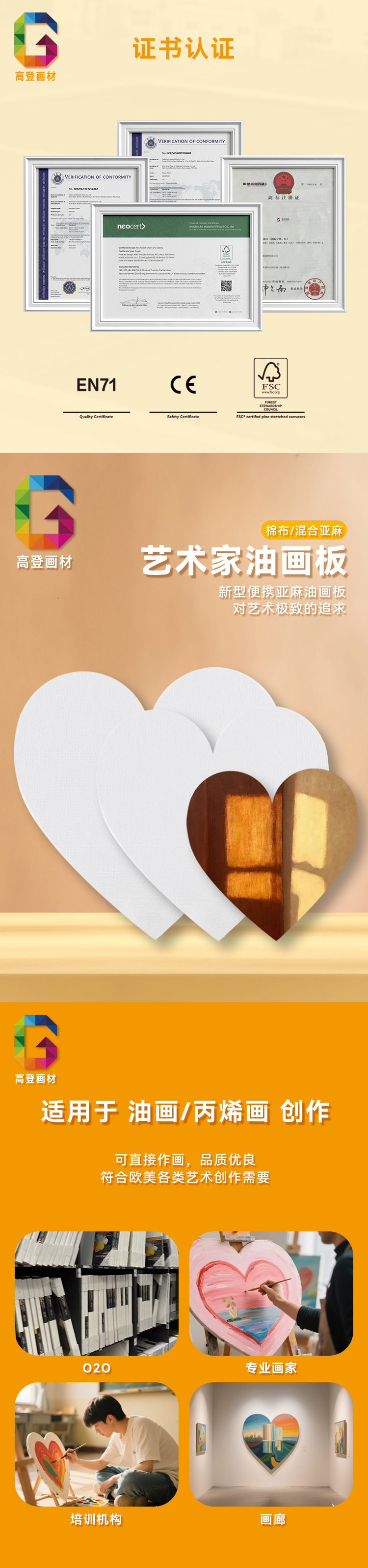 Caliente-venta de nuevo patrón, en forma de corazón puro algodón lienzo recorte pintura al óleo tablero