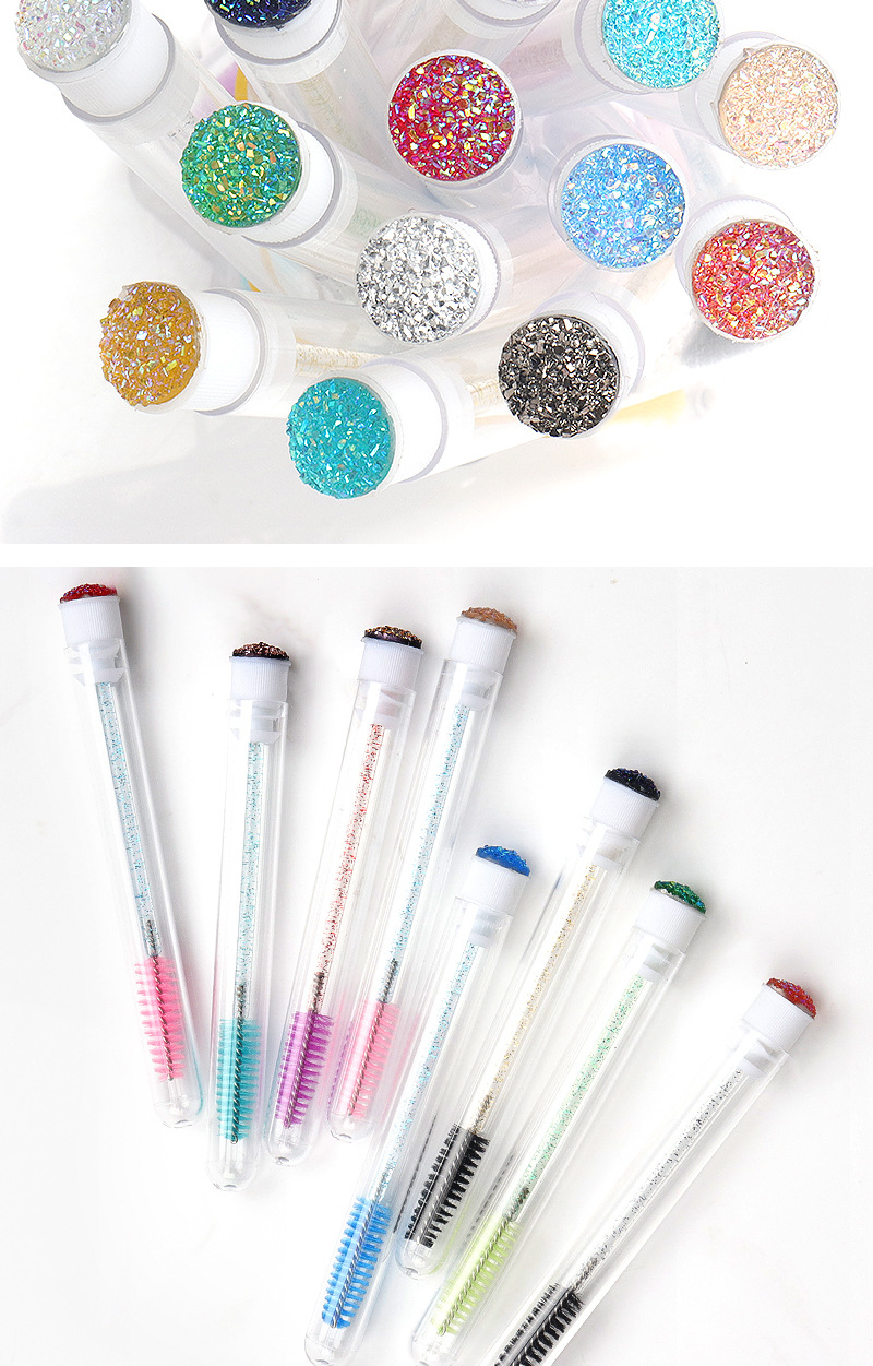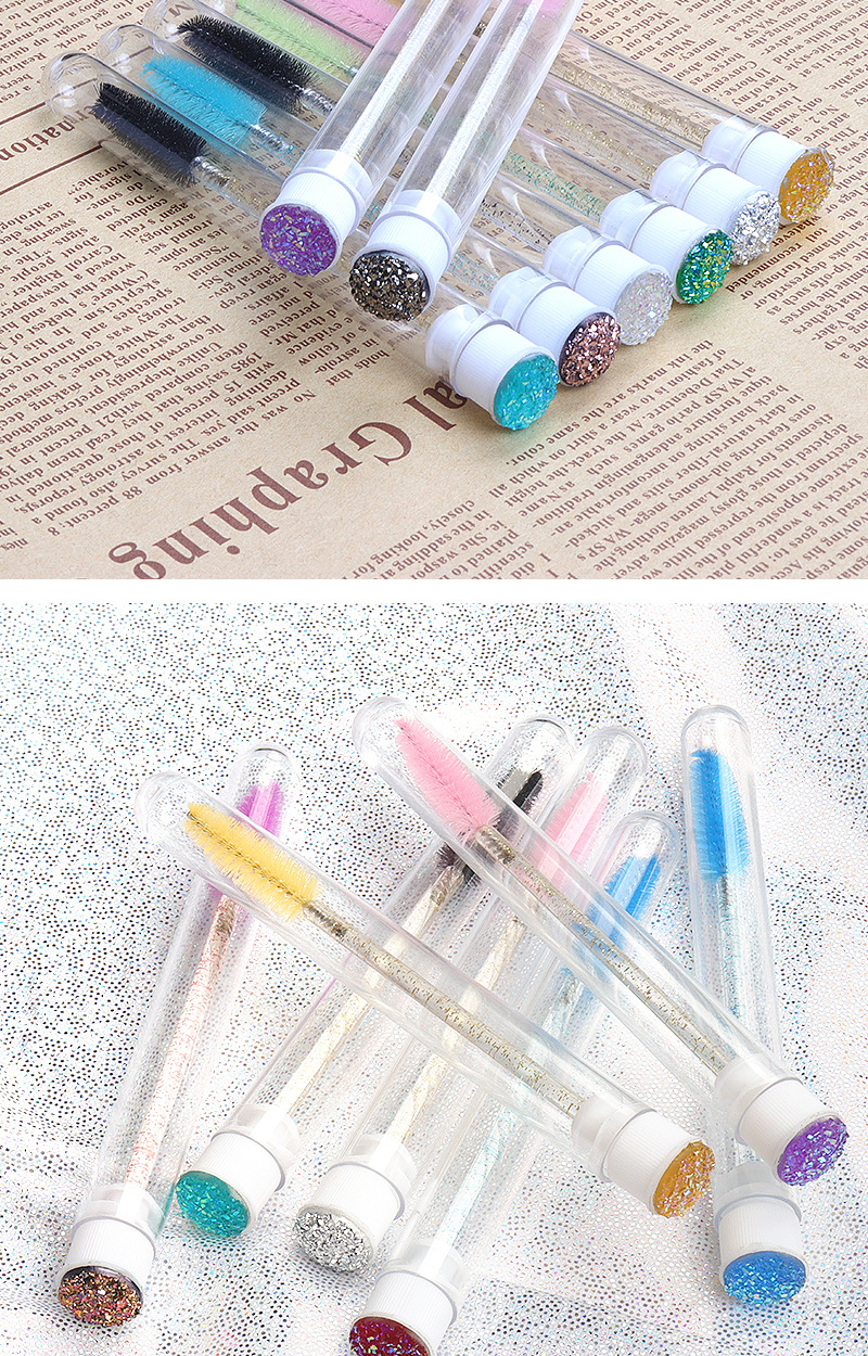 Cepillo para pestañas con tubo perforado, cepillo para pestañas desechable con varilla de cristal, peine para cejas, cepillo para pestañas portátil para maquillaje
