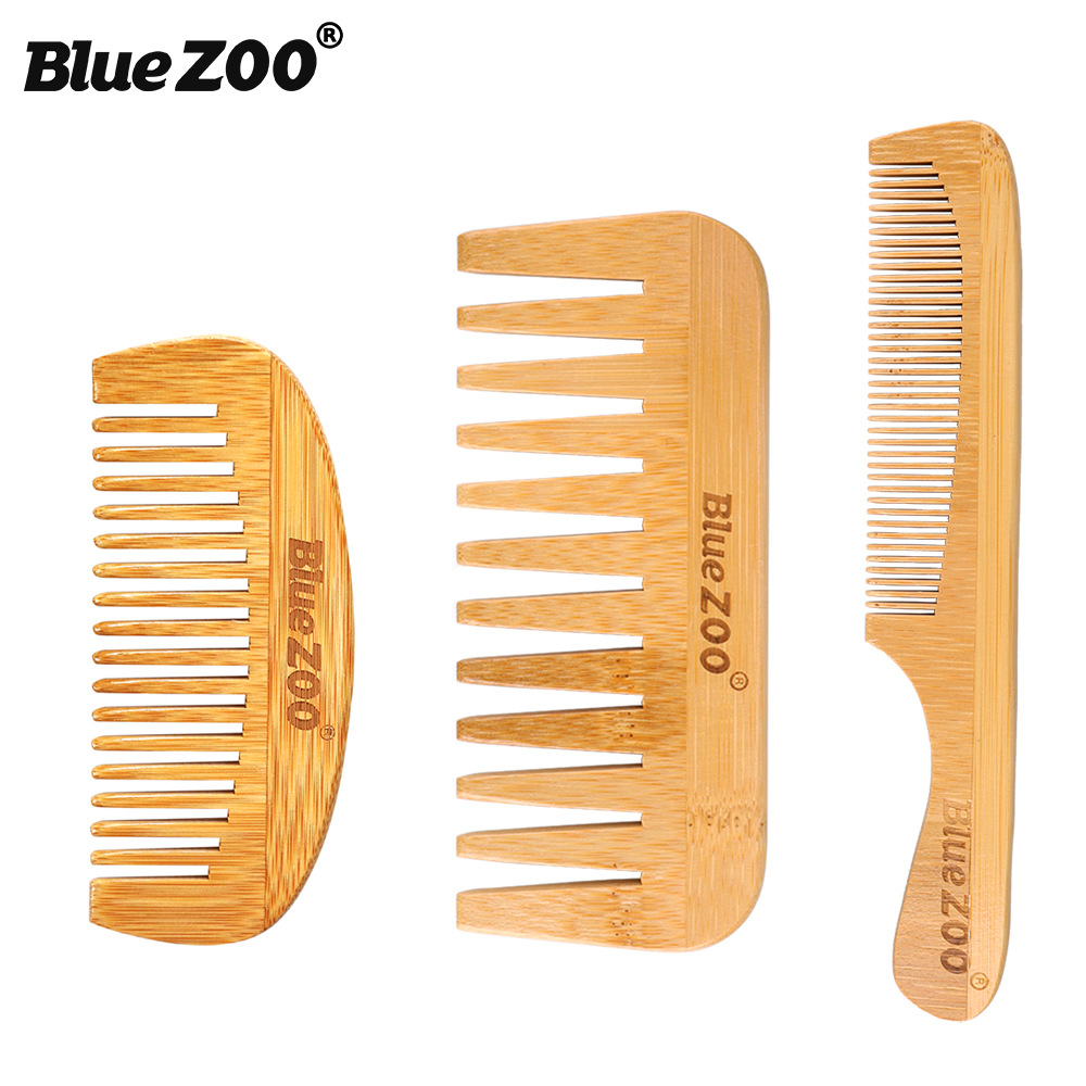 4 piezas de ancho peine de dientes finos BlueZOO transfronterizo Venta caliente pelo de bambú portátil masaje del cabello del cuero cabelludo peine de madera