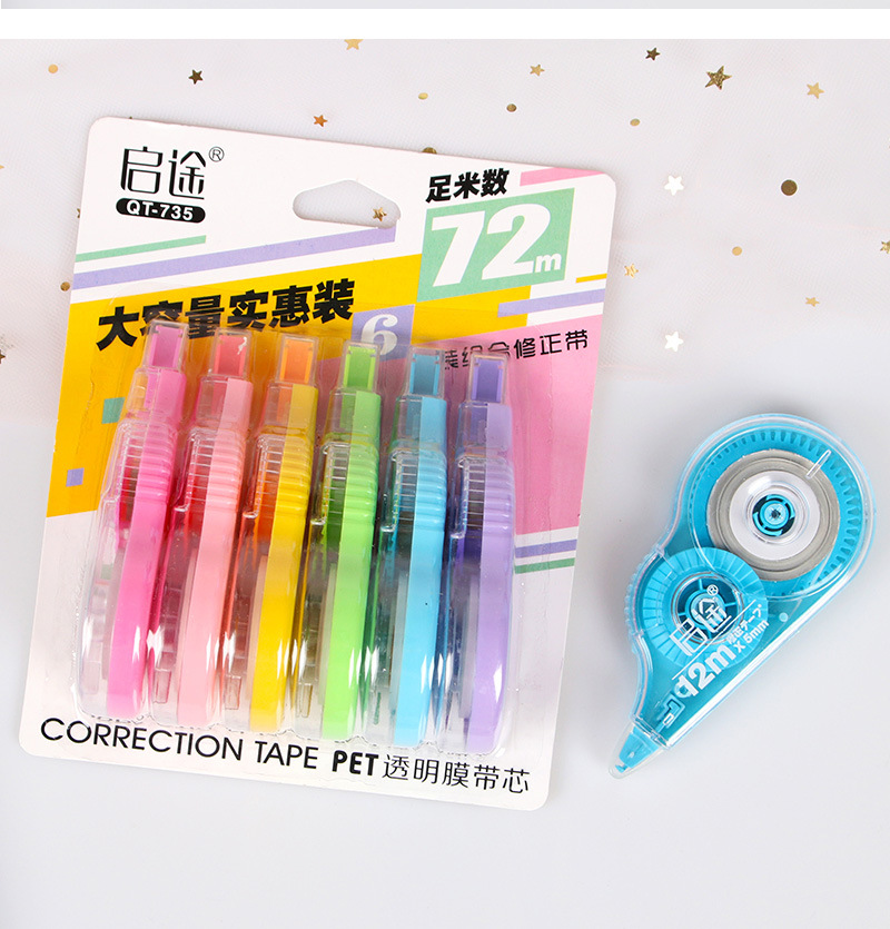Qitu traje de cinta de corrección estudiante suministros 6-pack cinta de corrección papelería al por mayor de gran capacidad de alto aspecto cinta de corrección
