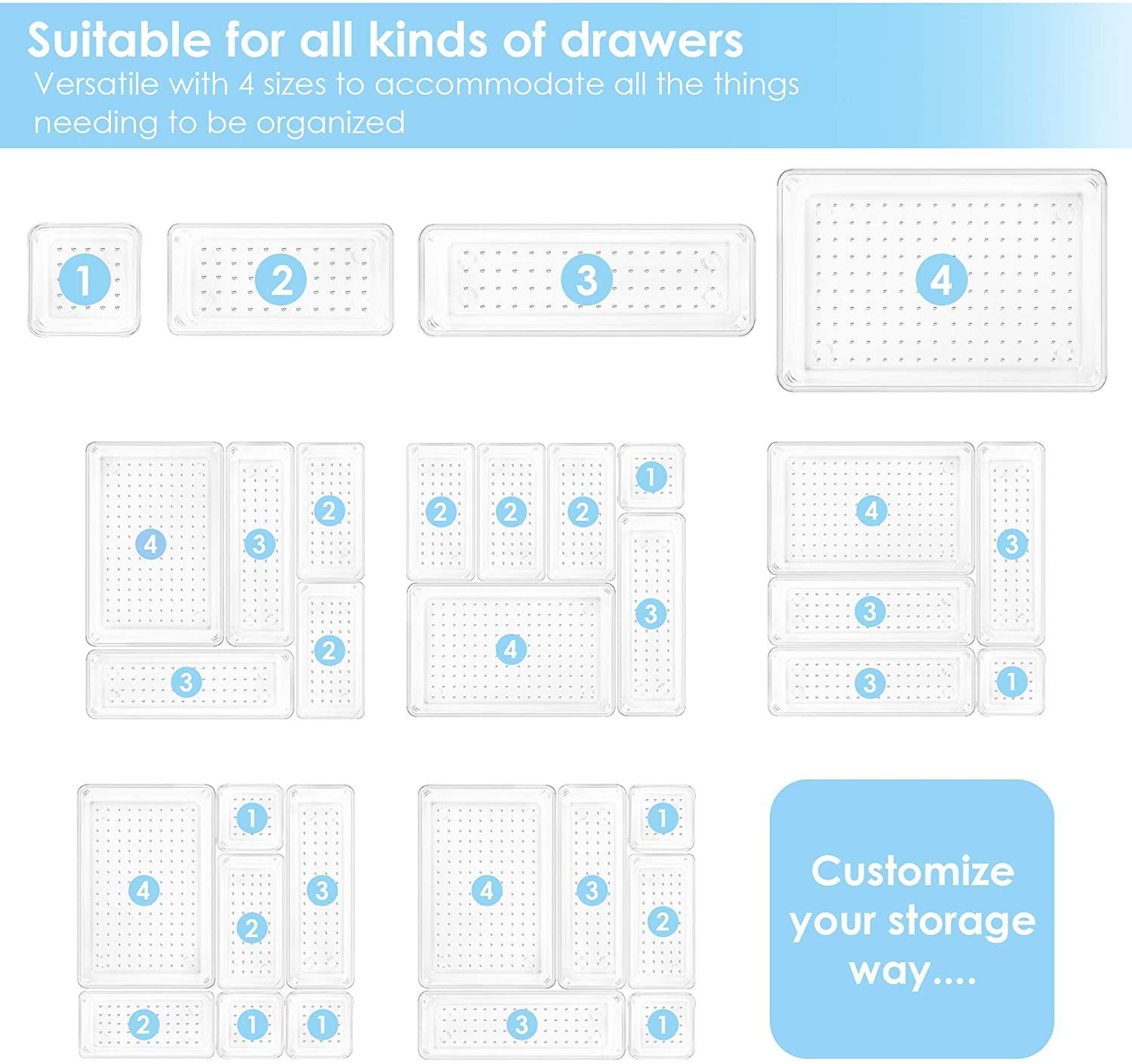 La combinación de cajas de almacenamiento más vendida de Amazon, juego de lunares transparentes, cajón para cosméticos, caja divisoria organizadora incorporada
