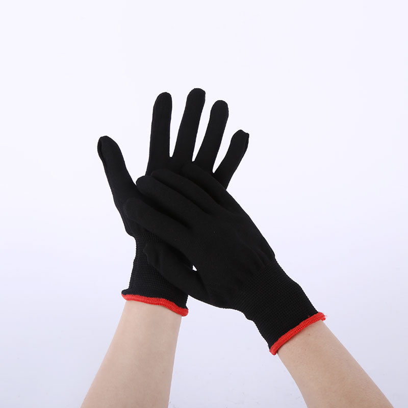 Guantes de seguro laboral transfronterizos, negro de gran tamaño, guantes de nailon de trece agujas, núcleo, sección delgada, manos adhesivas cómodas, fábrica de comercio exterior al por mayor