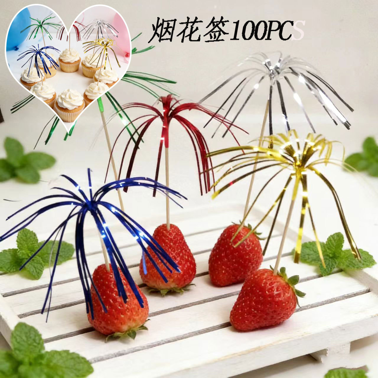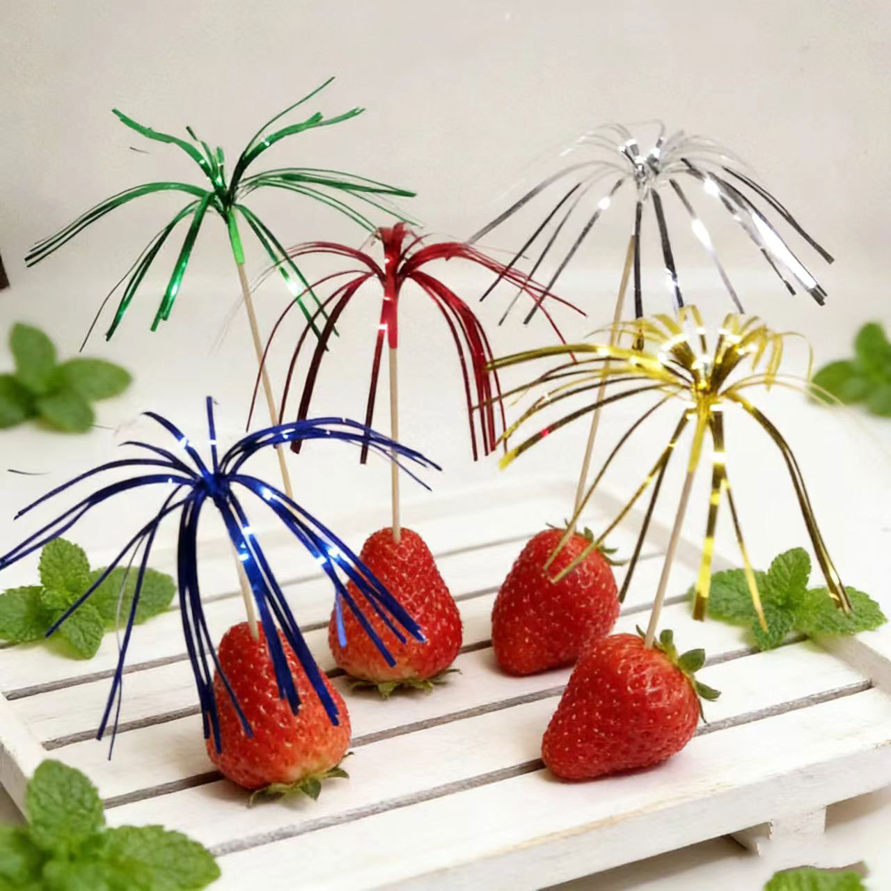 Cash fruta palo creativo colorido cigarrillo de madera 100 unids cóctel aguja 15cm en stock al por mayor