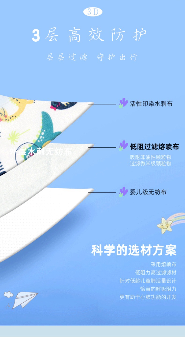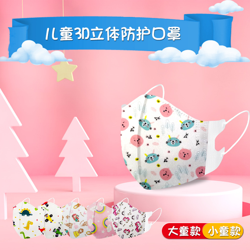 Fábrica en stock al por mayor estudiante de tres capas bebé patrón de dibujos animados lindo transpirable desechables niños 3D tridimensional máscara