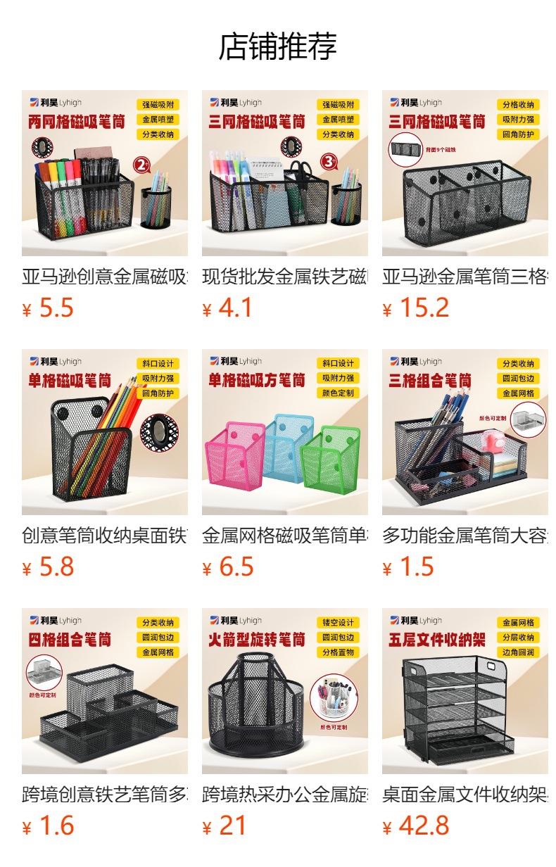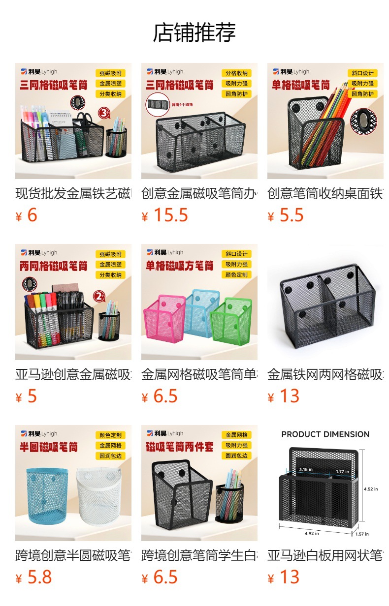 Portalápices de succión magnética semicircular de Amazon Portalápices de almacenamiento de malla de metal de papelería de escritorio de oficina al por mayor