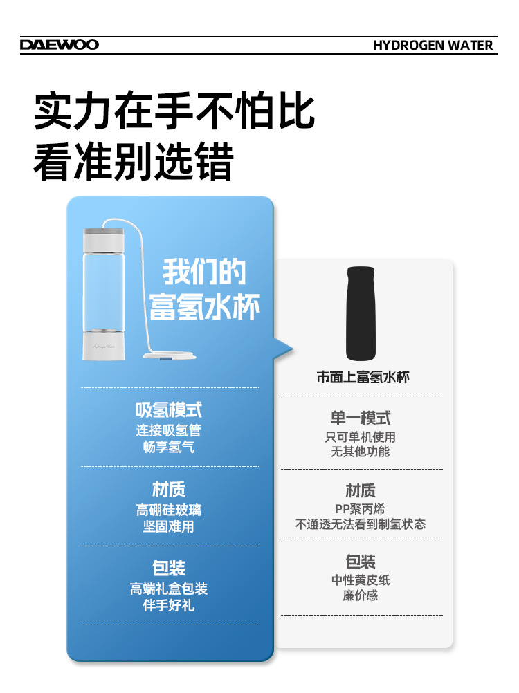 Taza de agua rica en hidrógeno, impresión de alta calidad de lujo ligero, LOGO, taza de agua de hidrato de separación de hidrógeno y oxígeno, alta concentración 5000ppb