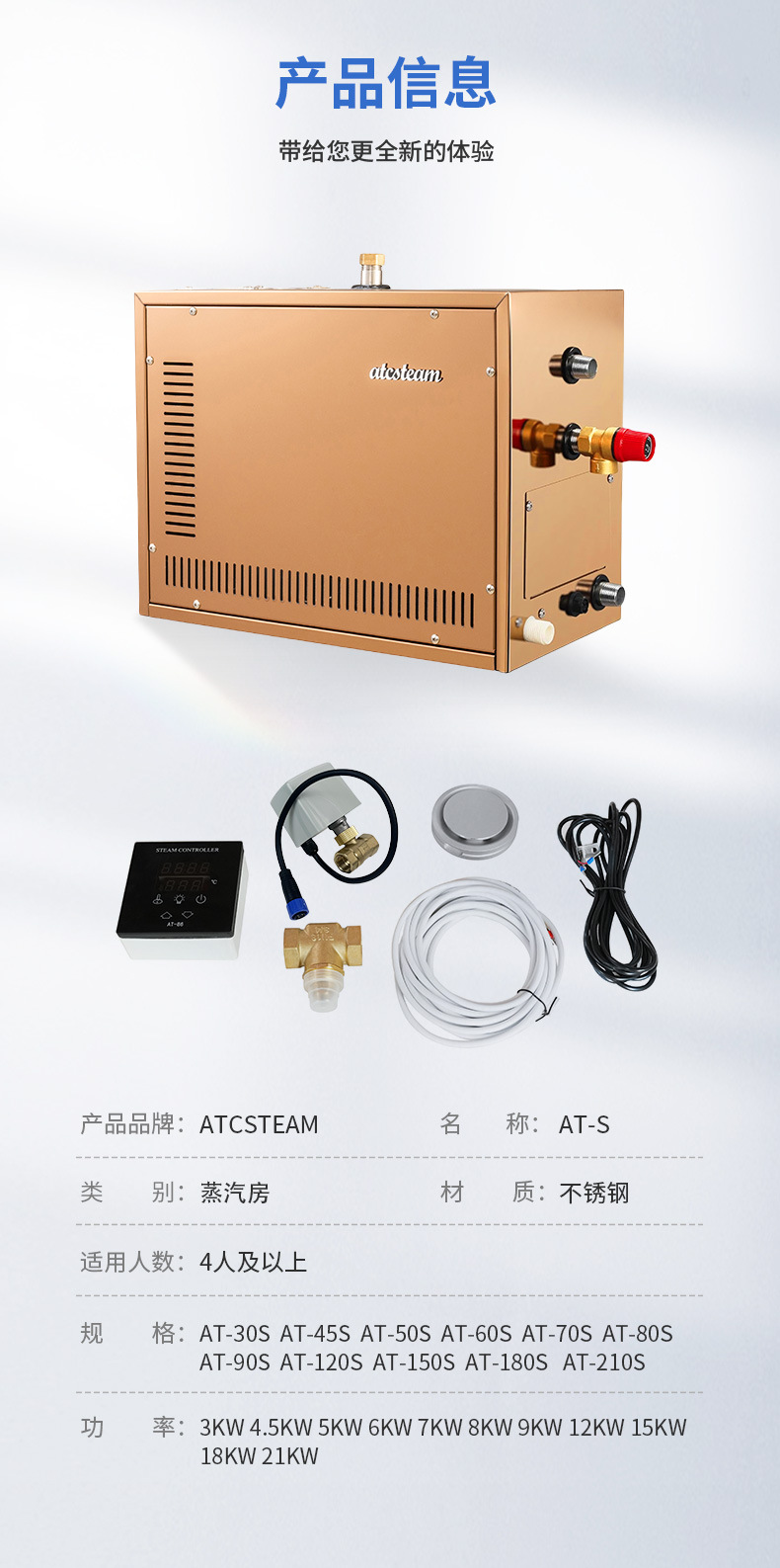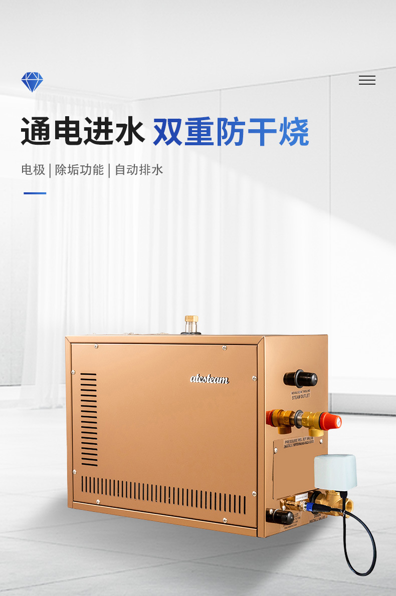 Atcsteam fábrica instrumento sauna generador de vapor húmedo máquina sauna automático drenaje vapor baño equipo