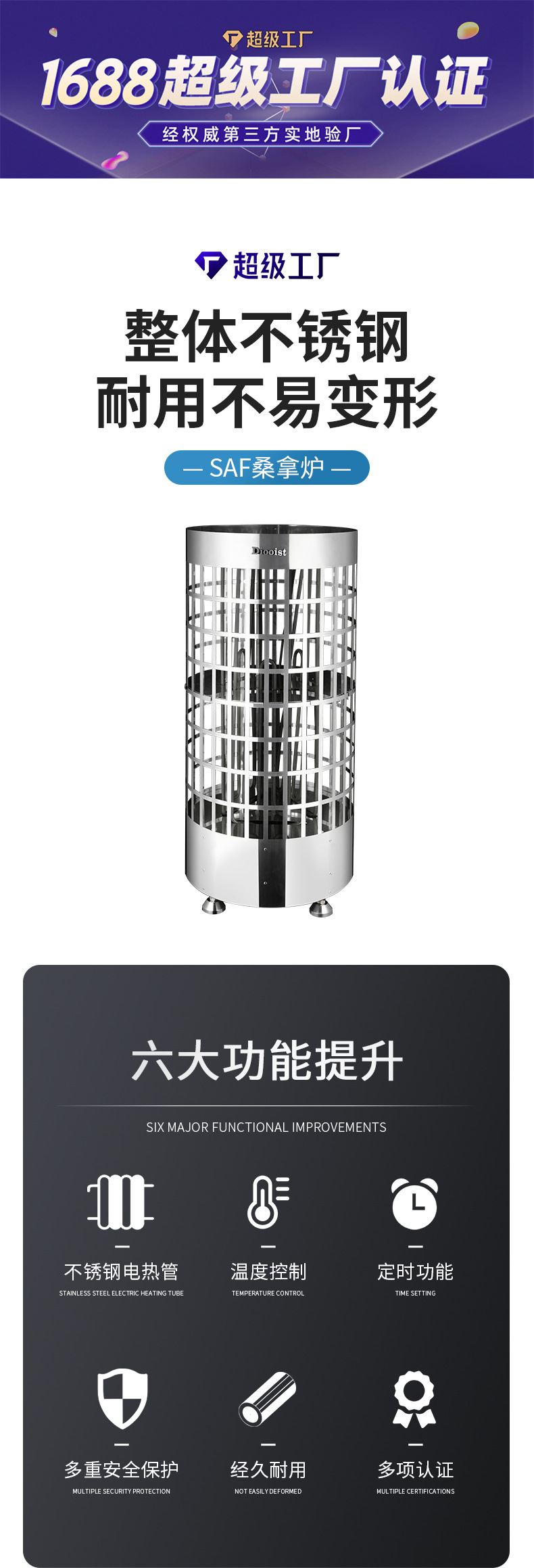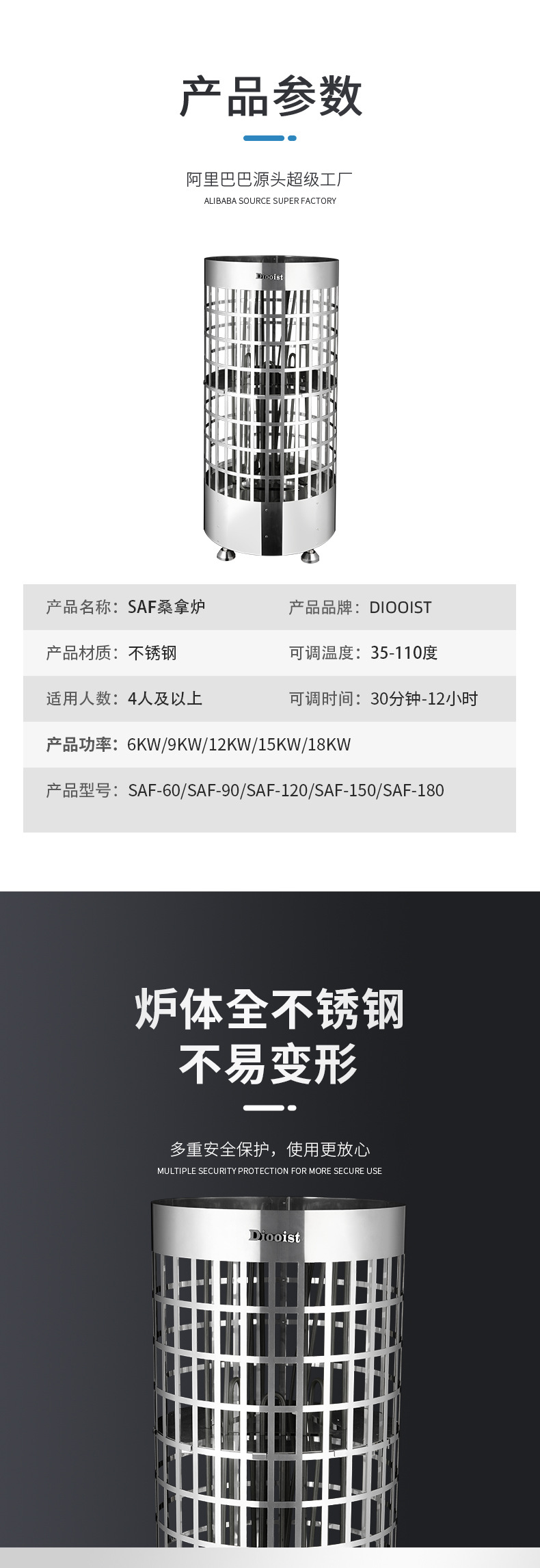 Fábrica nueva sala de sauna equipo redondo sauna estufa de acero inoxidable calefacción eléctrica sauna de vapor seco sudor equipo de vapor