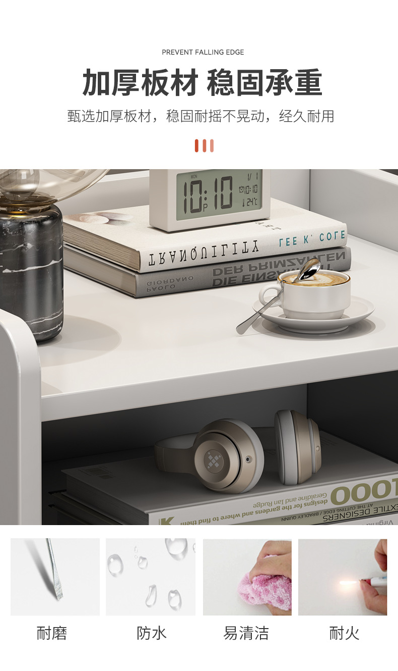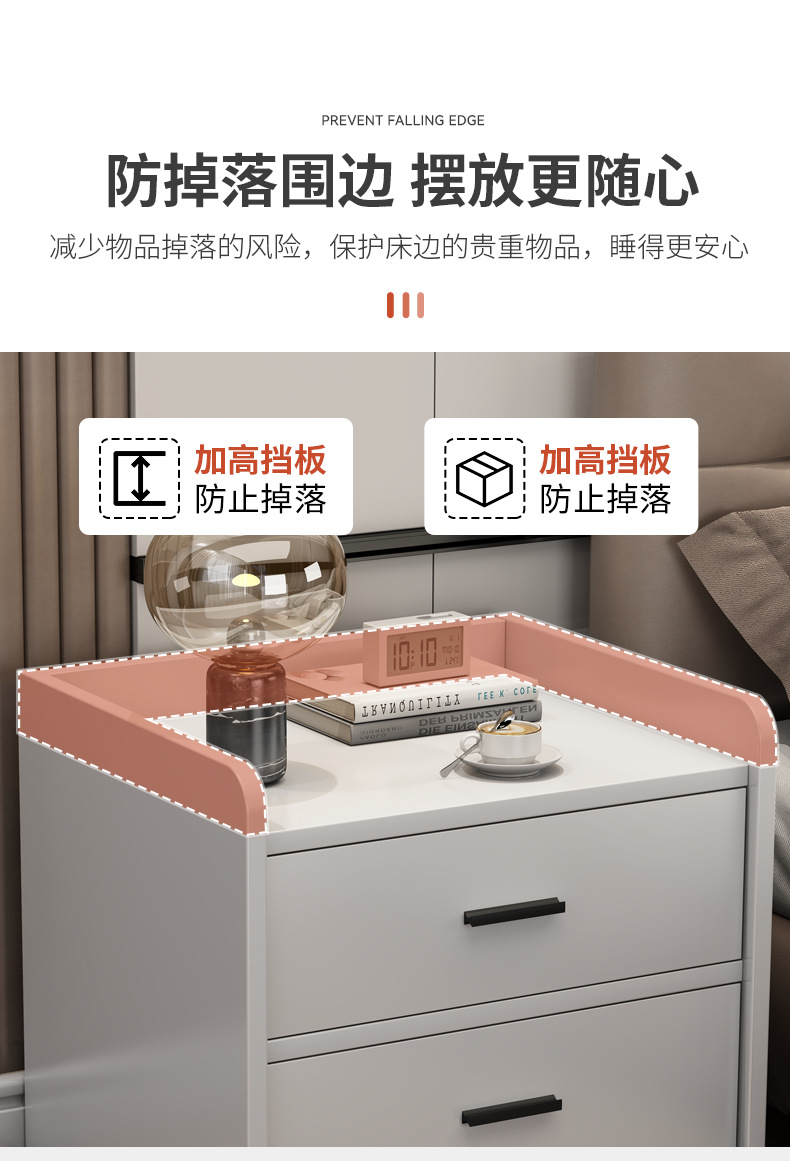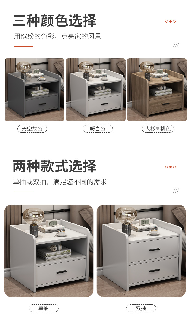 Mesa de noche de lujo ligero simple moderno pequeño estante de almacenamiento de noche simple gabinete de almacenamiento de dormitorio gabinete de noche para sala de alquiler