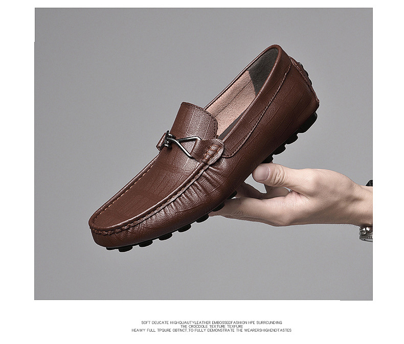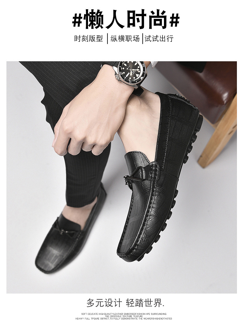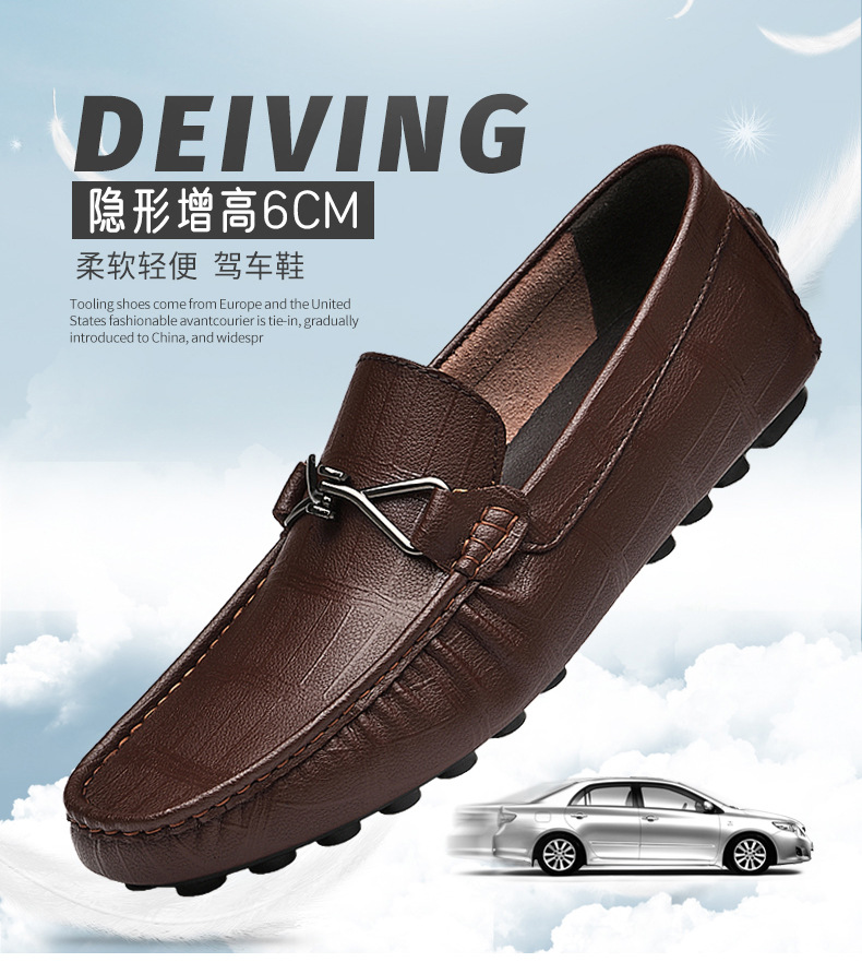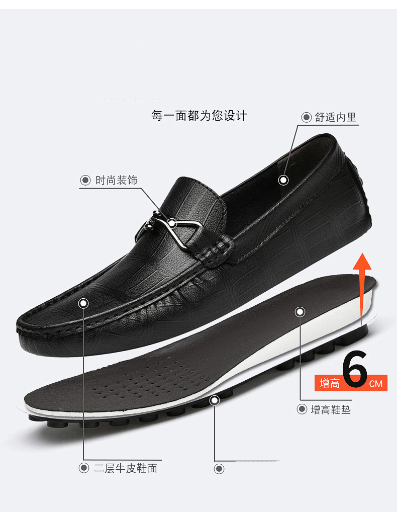 Verano nuevos zapatos de cuero de vaca guisantes zapatos aumentaron 6cm casual suave inferior slip-on moda estilo coreano zapatos de los hombres