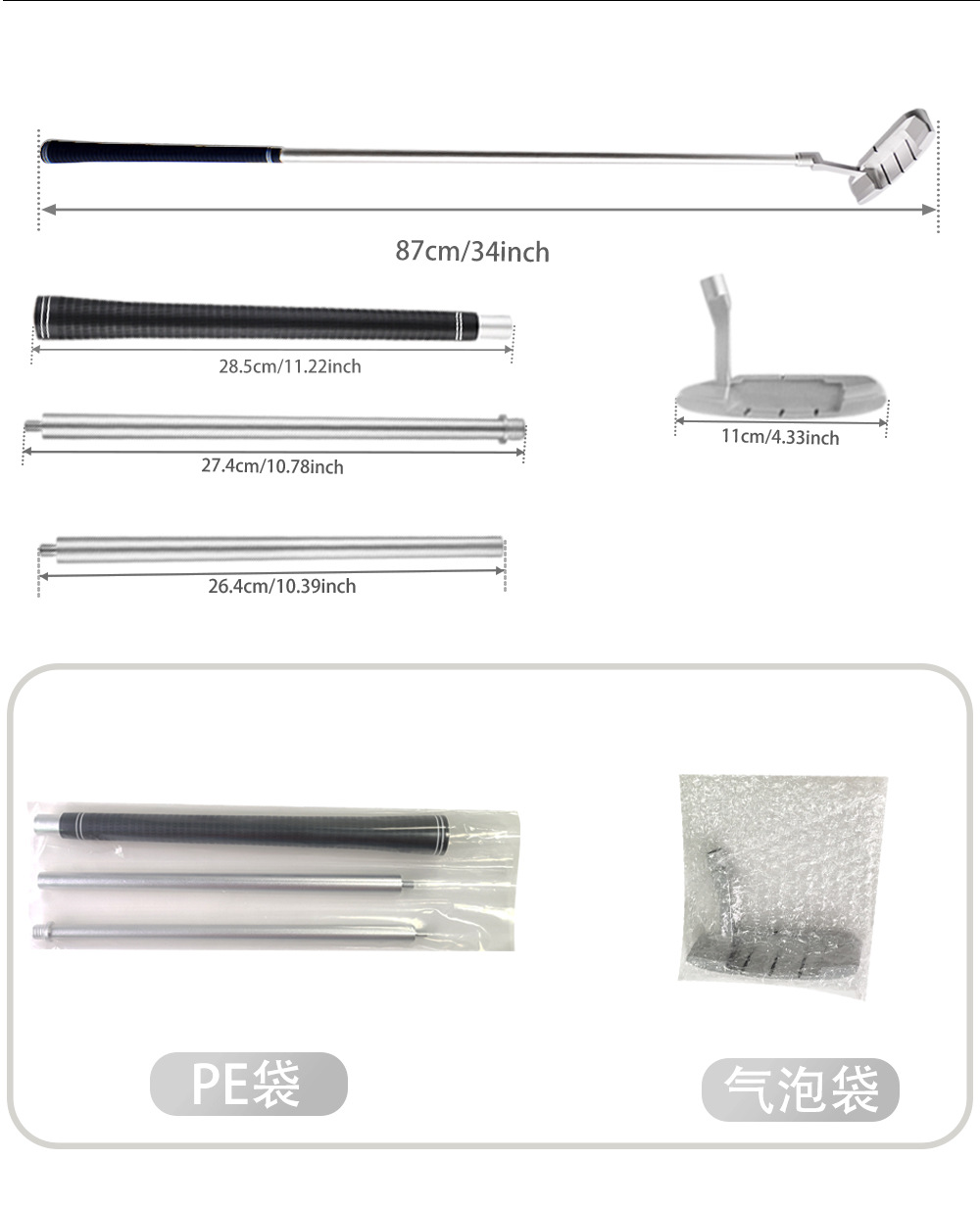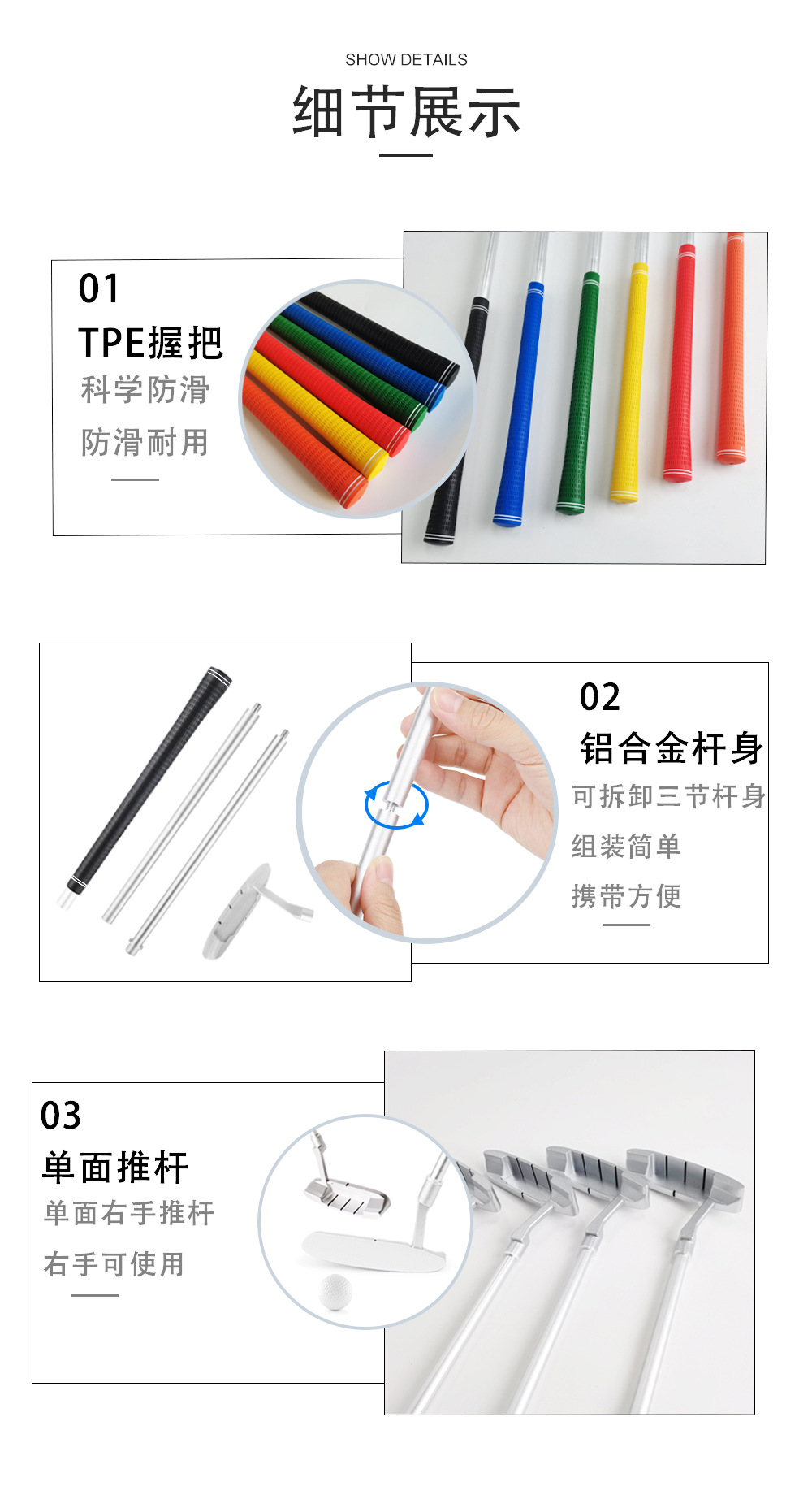Desmontable de tres secciones putter Golf práctica putter aleación de aluminio portátil izquierda y derecha de doble cara putter