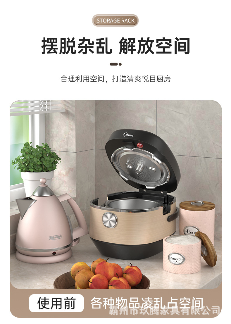 Estante de almacenamiento multifuncional para cocina, olla arrocera, estante de almacenamiento de doble capa para especias, estante de almacenamiento para horno microondas, encimera