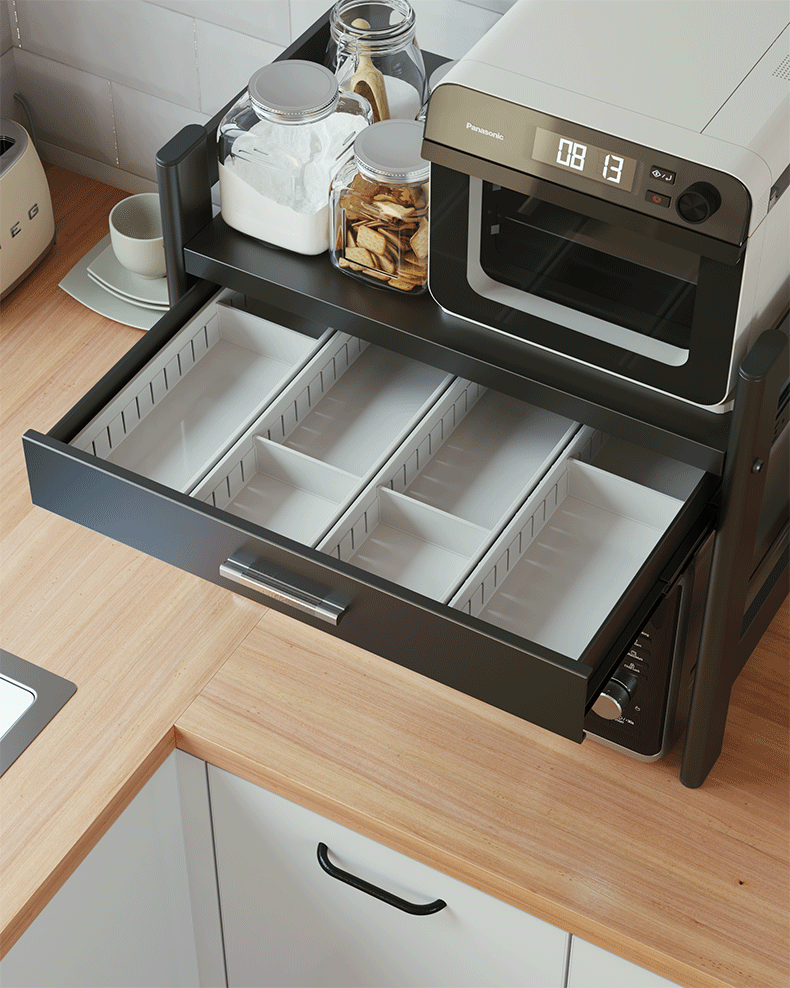 Cocina encimera horno microondas rack de almacenamiento con cajón vajilla caja de almacenamiento horno cocina de arroz estante de almacenamiento multifuncional