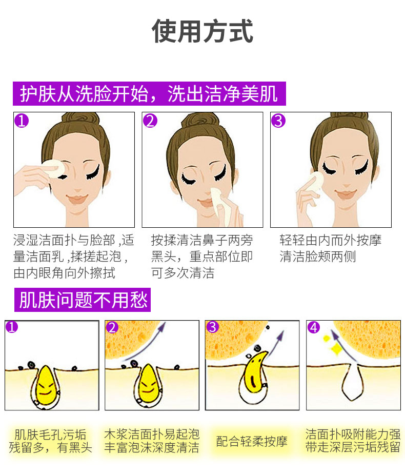 Comercio exterior transfronterizo venta caliente ronda multi-estilo opcional 10 paquete de esponja de celulosa de limpieza de algodón de pulpa de madera de algodón de lavado de cara soplo