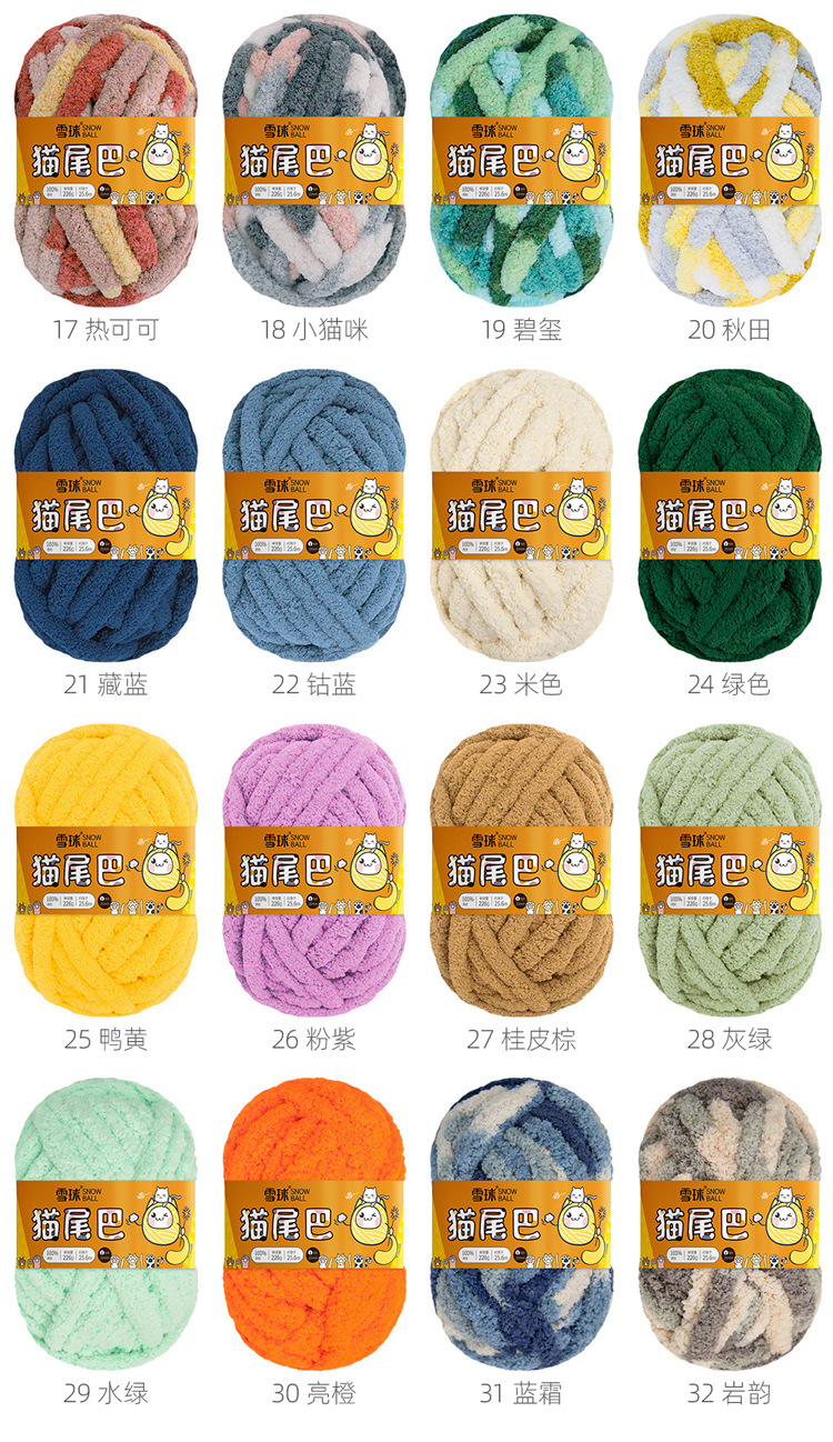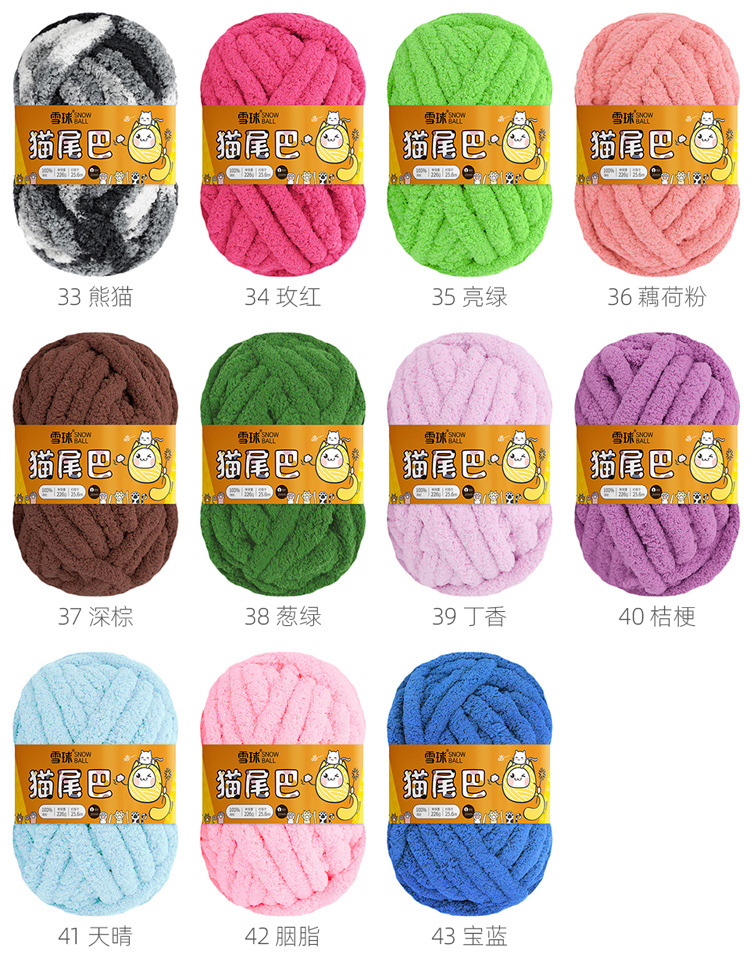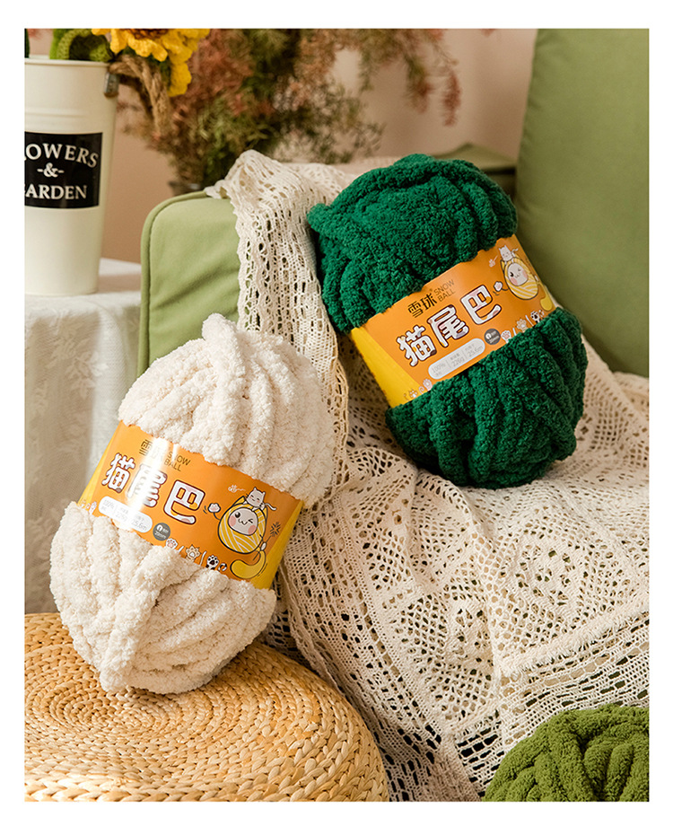 Bola de nieve gato cola 2cm grueso dedo bufanda lana DIY hecho a mano Super gruesa tira de hielo hilo tejido manta nido mascota