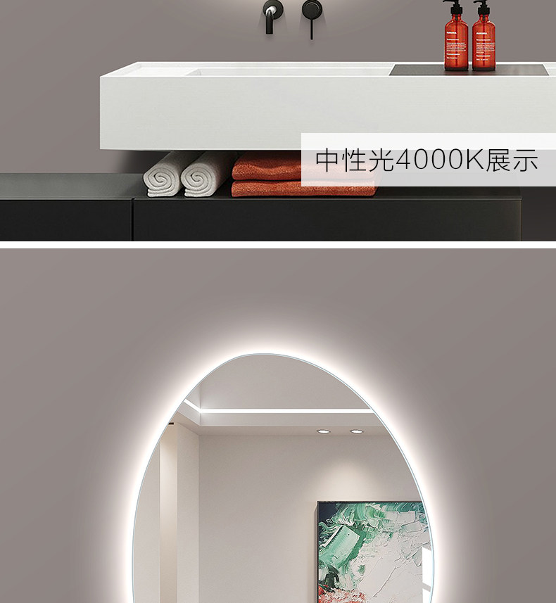 BOLEN Berron de forma especial oval Hotel baño tocador hogar pared colgante LED inteligente espejo de baño con luz
