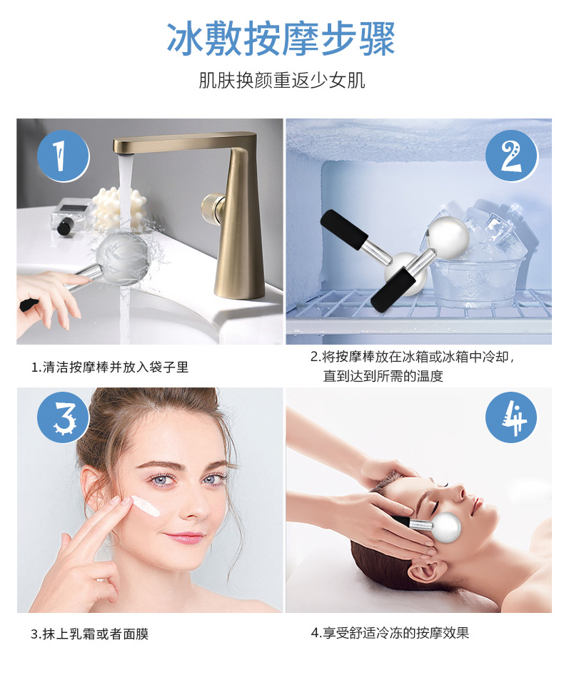 Palillo del masaje del acero inoxidable, massager facial, hockey sobre hielo del masaje, Bola del masaje, instrumento del masaje